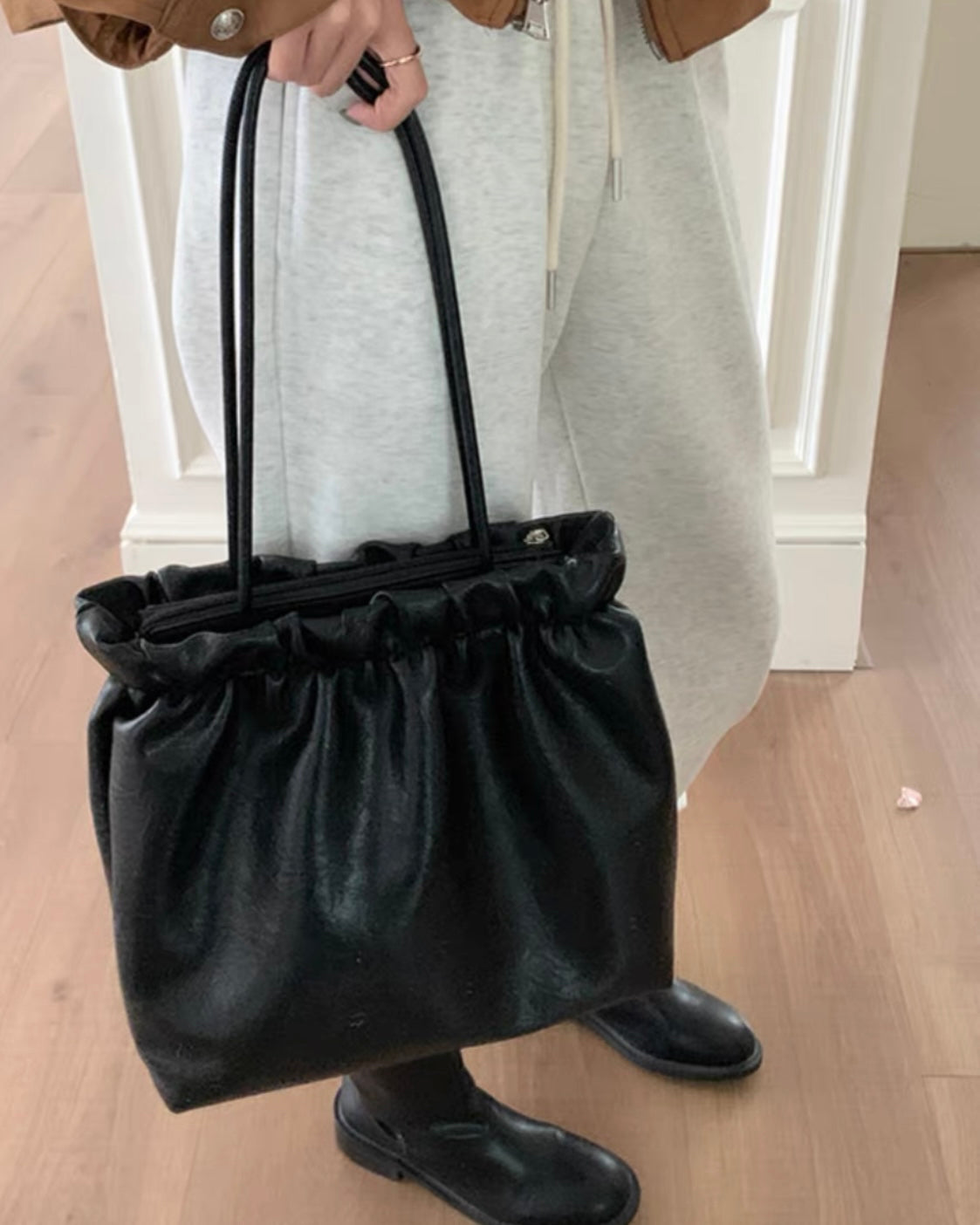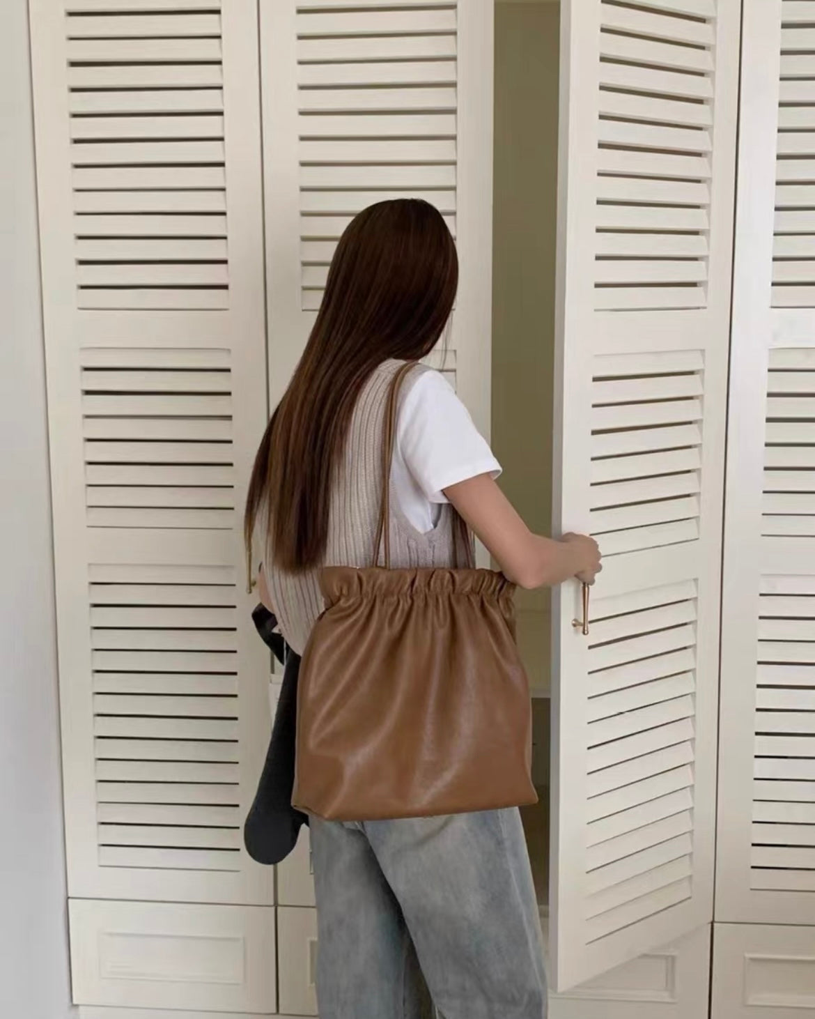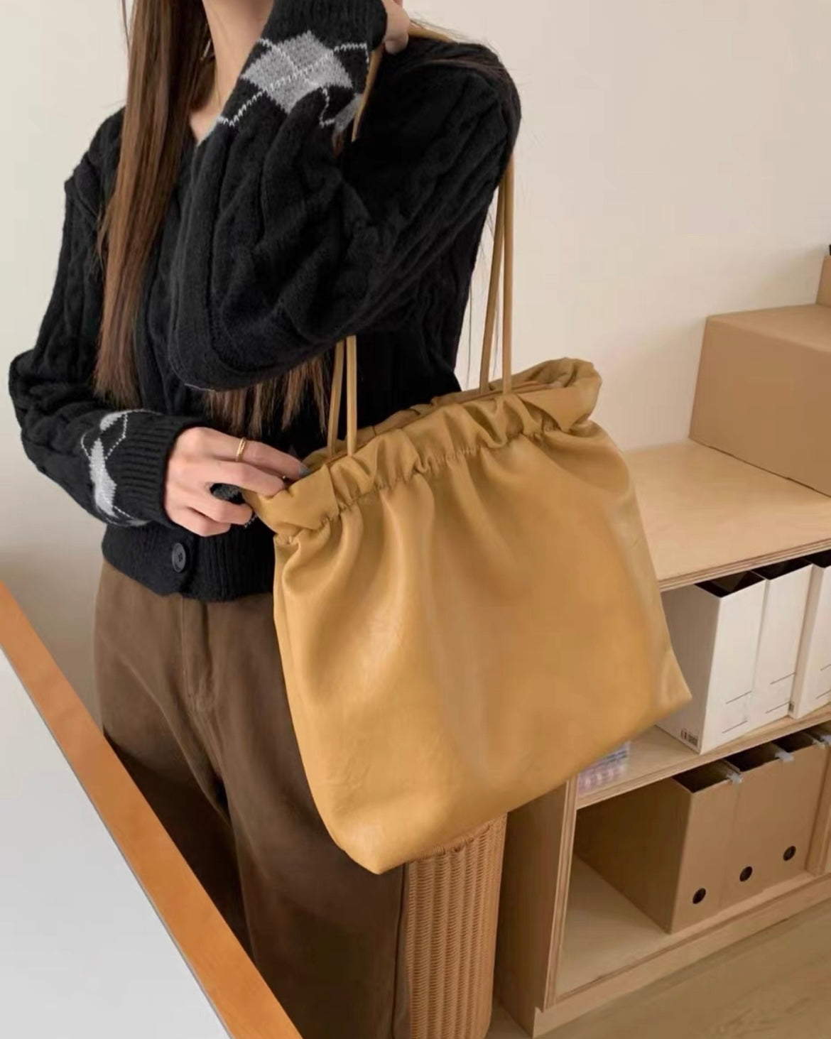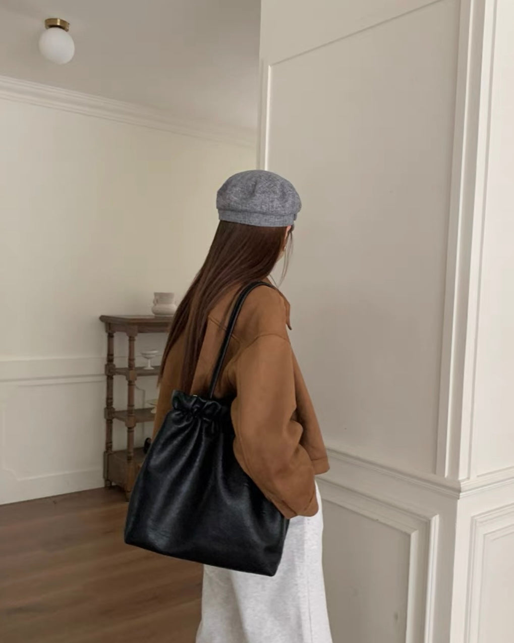間口がくしゃっとギャザーがよったデザインのニュアンス感たっぷりなトートバッグ。