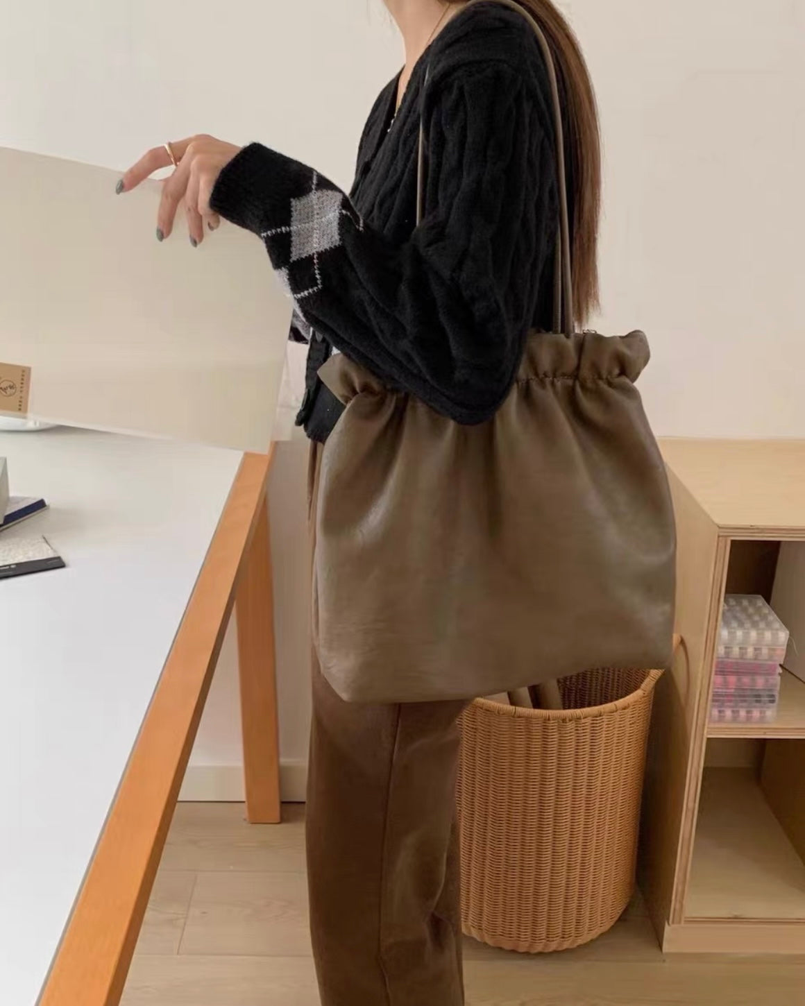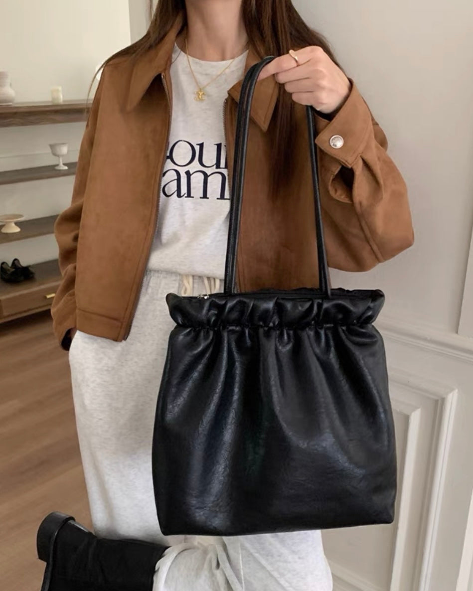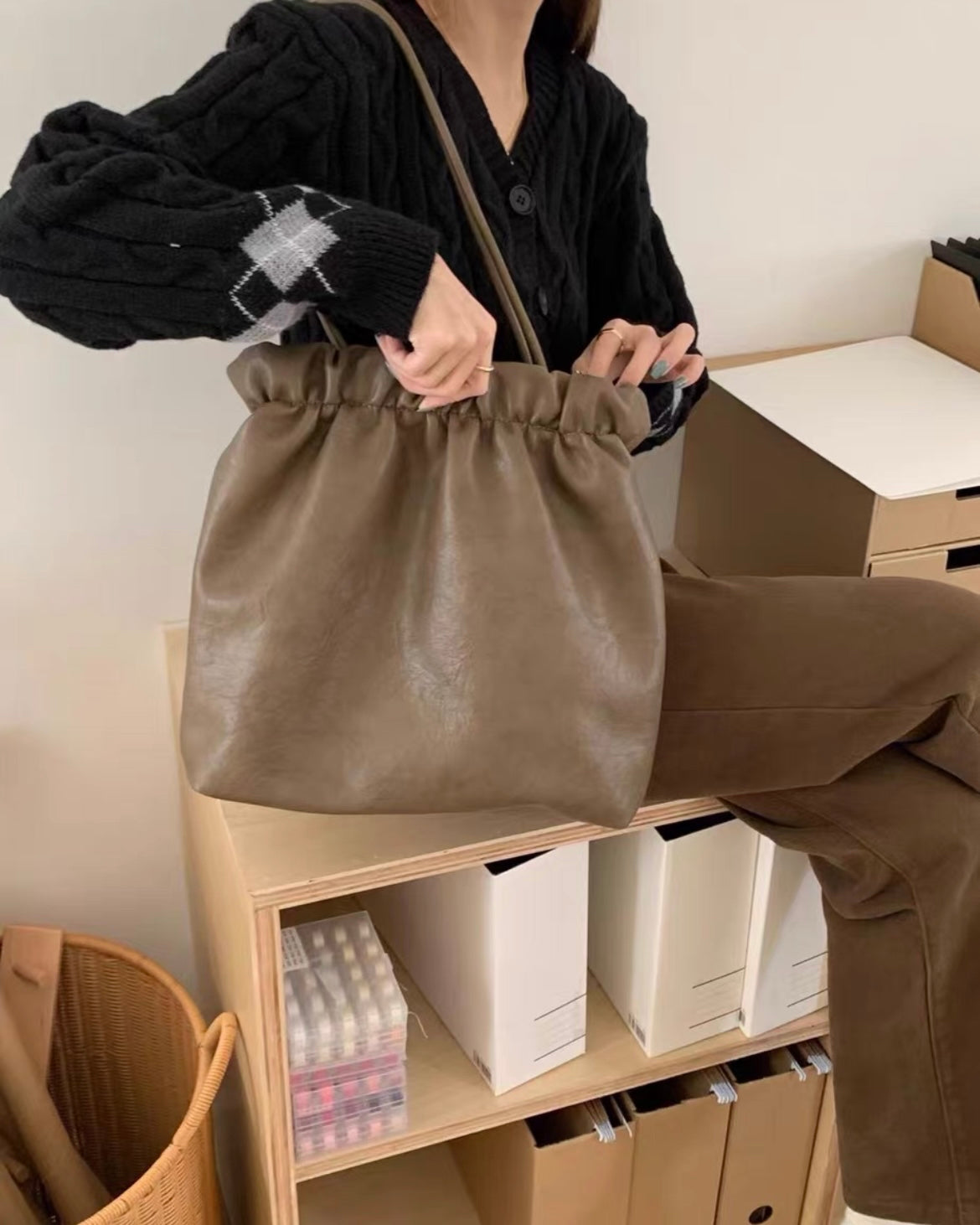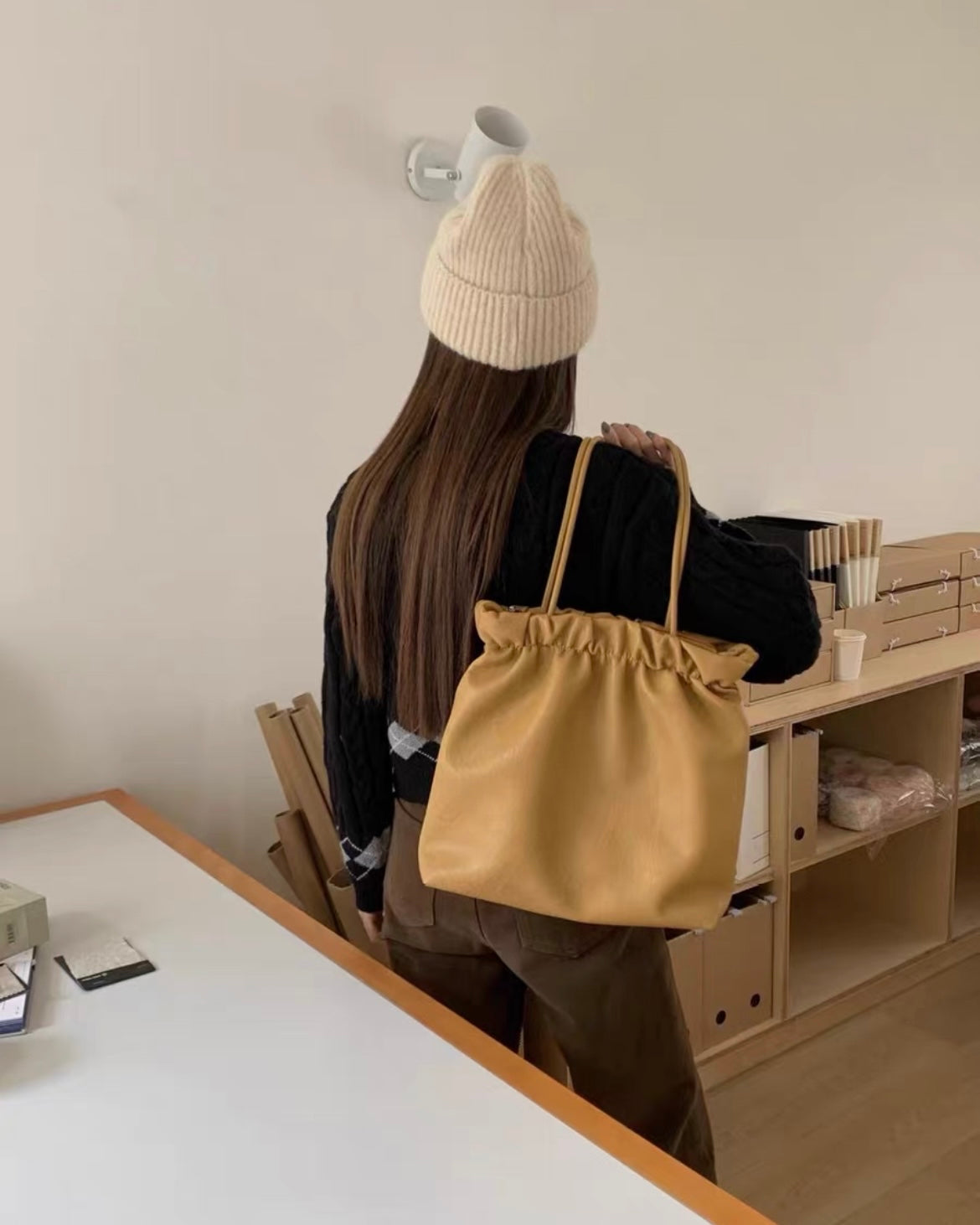 間口がくしゃっとギャザーがよったデザインのニュアンス感たっぷりなトートバッグ。