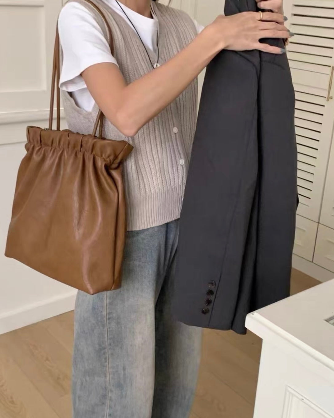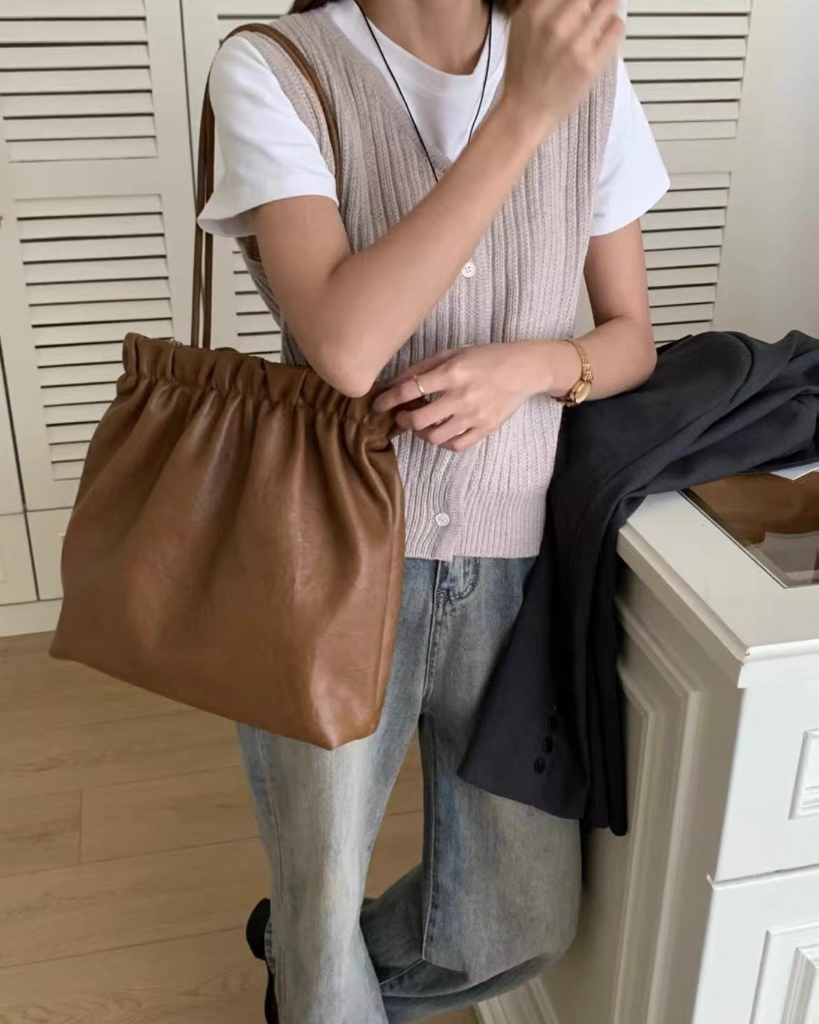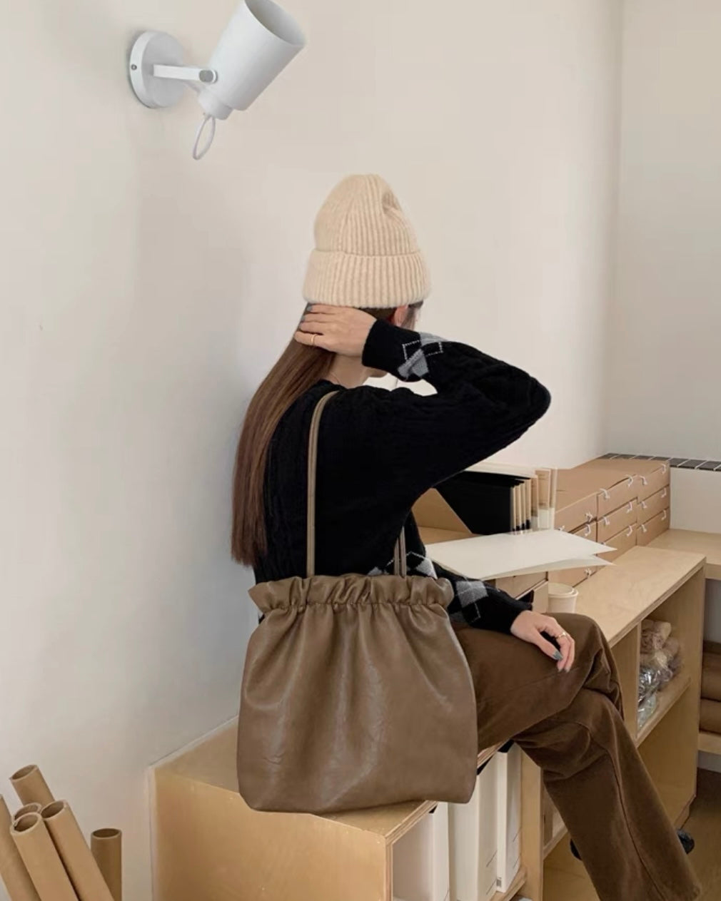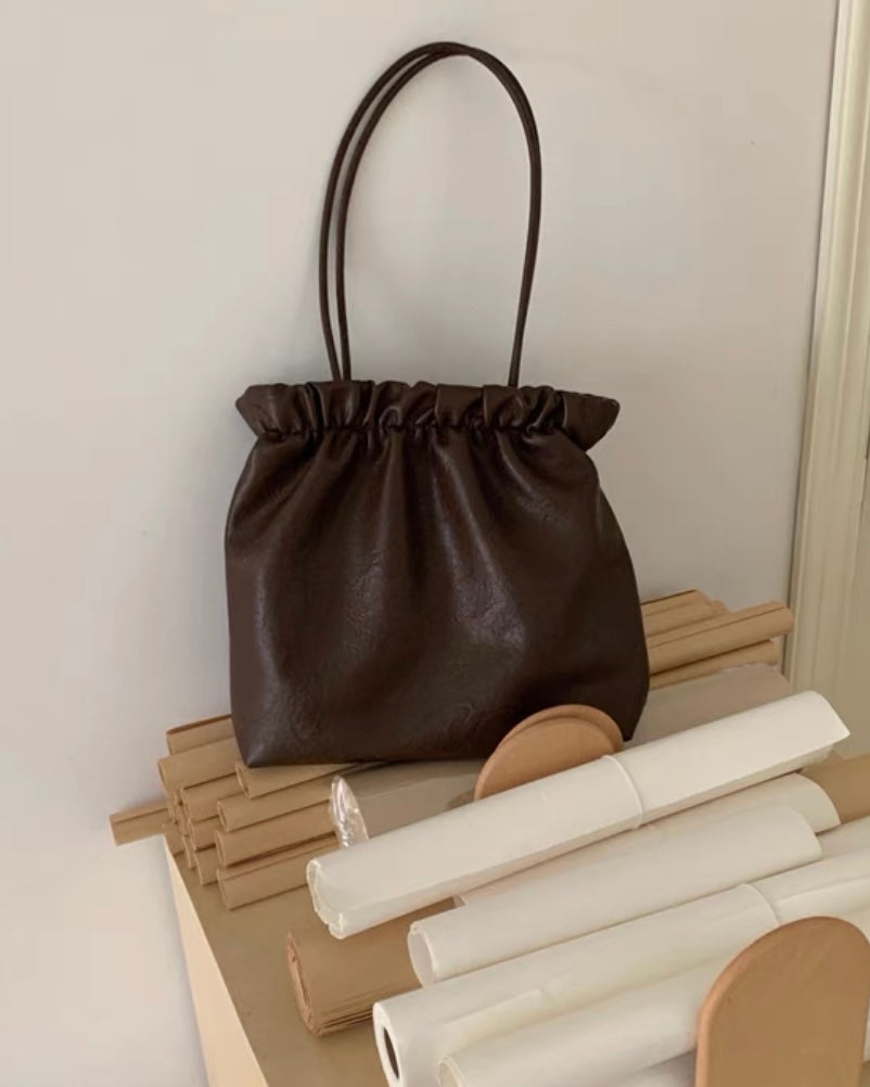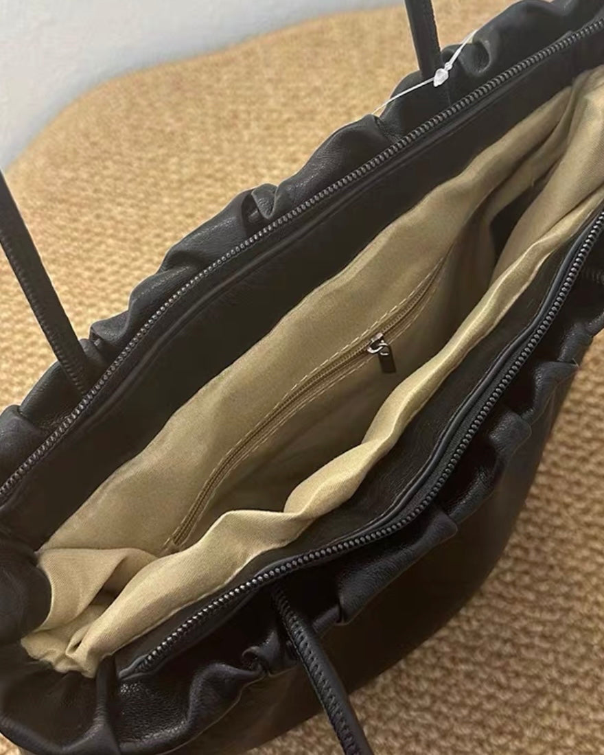 間口がくしゃっとギャザーがよったデザインのニュアンス感たっぷりなトートバッグ。