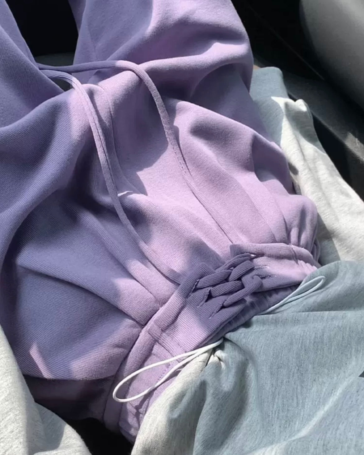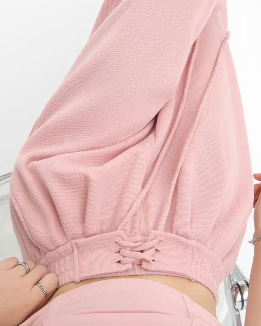 ウエスト部分はレースアップデザインとなっており、シンプルながらも可愛さを取り入れたアイテム。