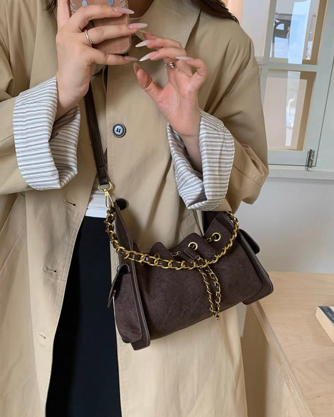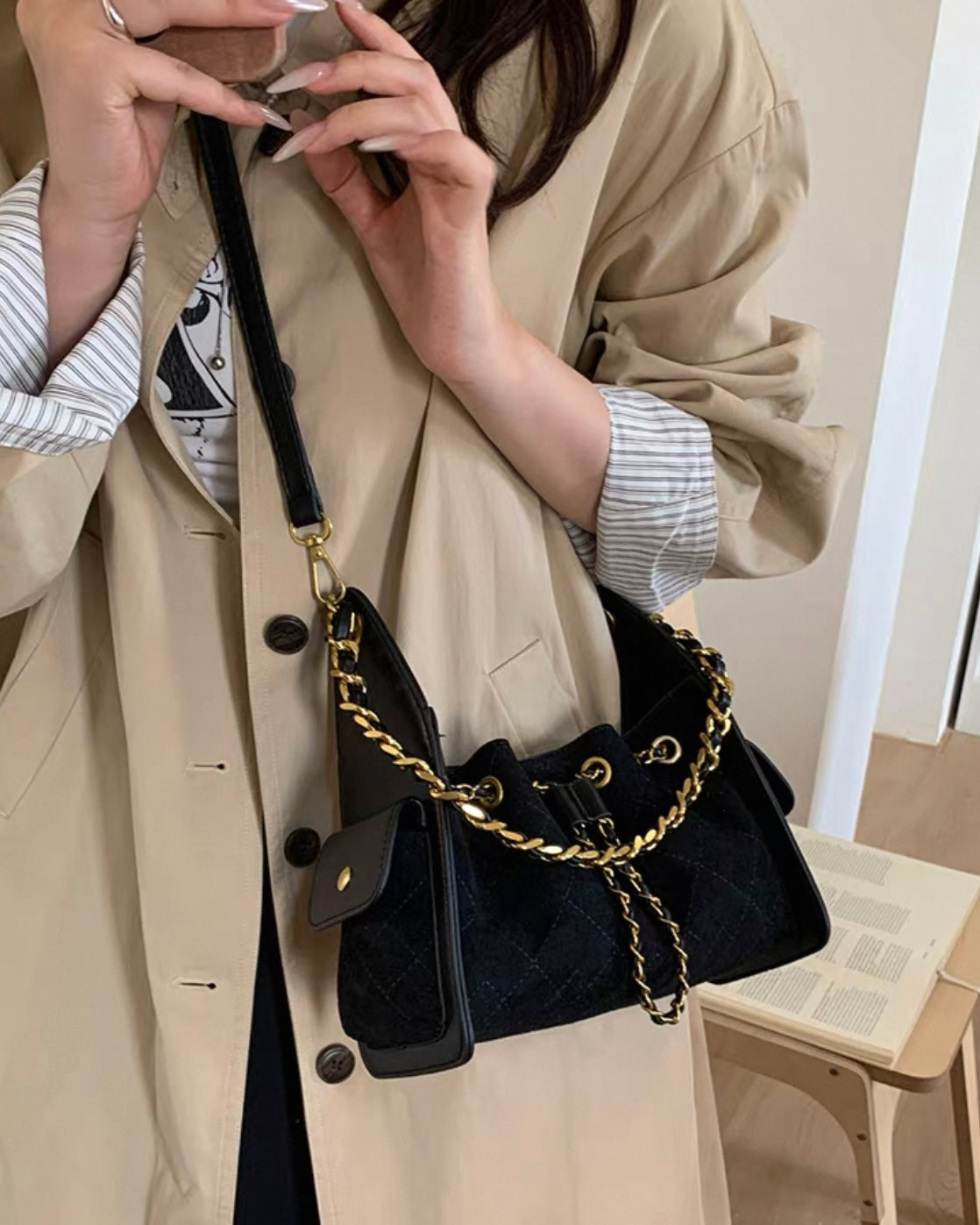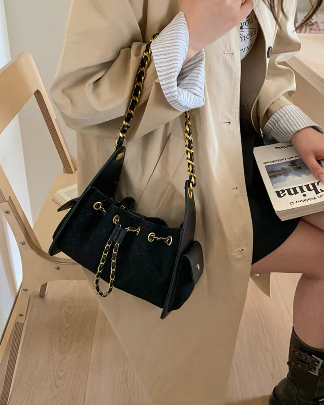 《11/14新作》2wayチェーンハンドルステッチバッグ