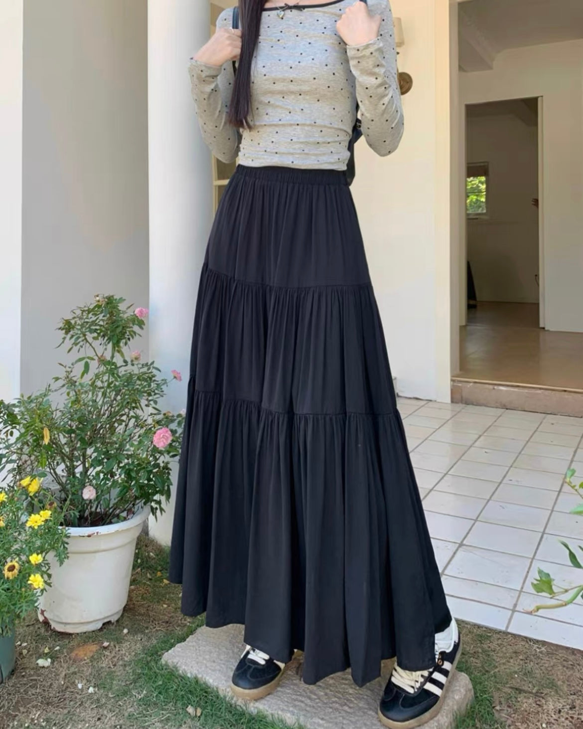 ティアードギャザーロングスカート