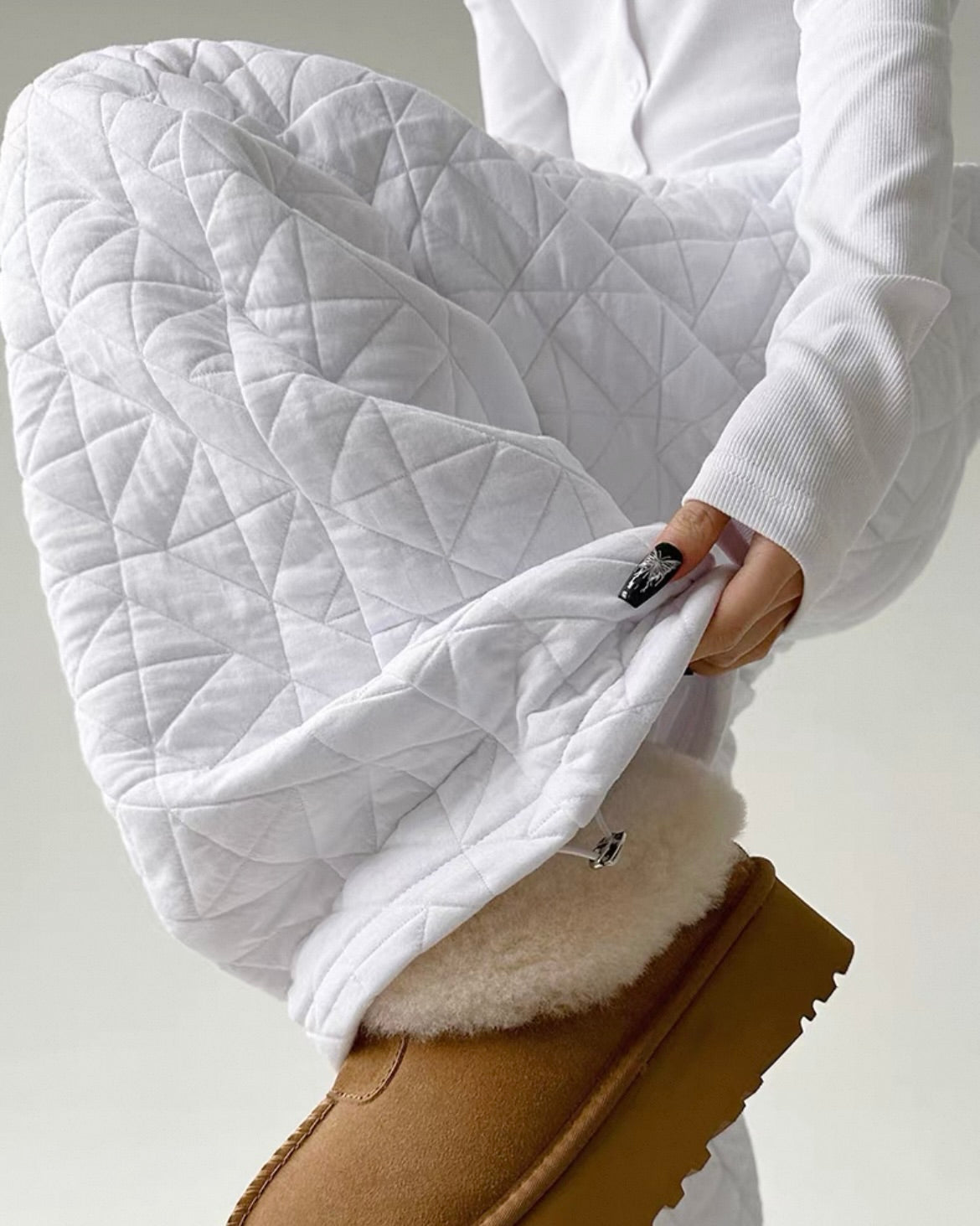 キルティングデザインの見た目もかわいく、ウォーム感あるアイテム。