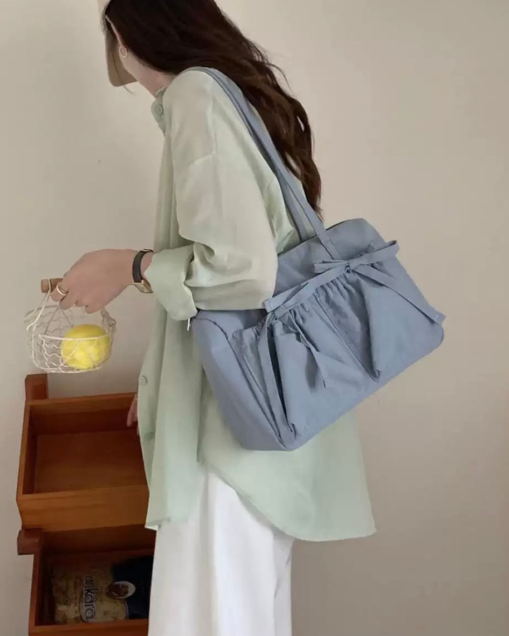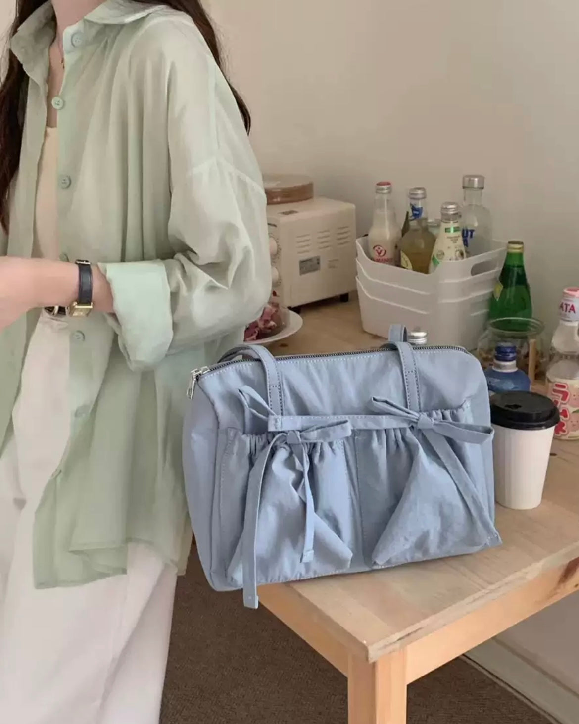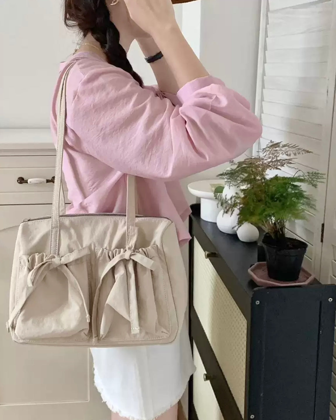 トレンド感のあるリボンが可愛いらしく、大きめのリボンが華やかなアクセントに。