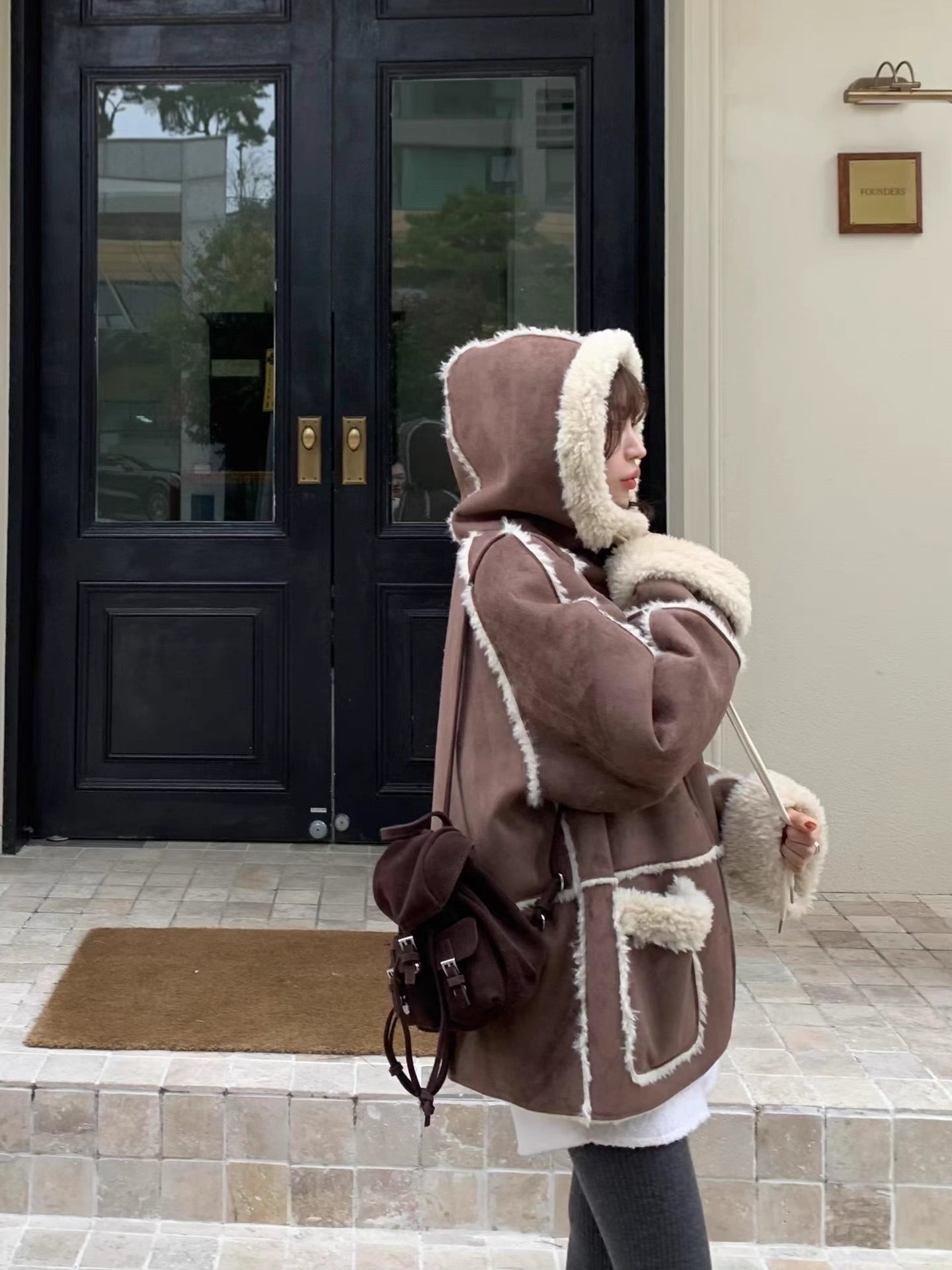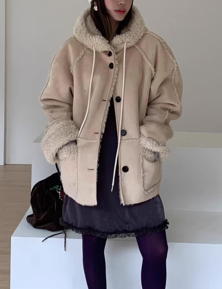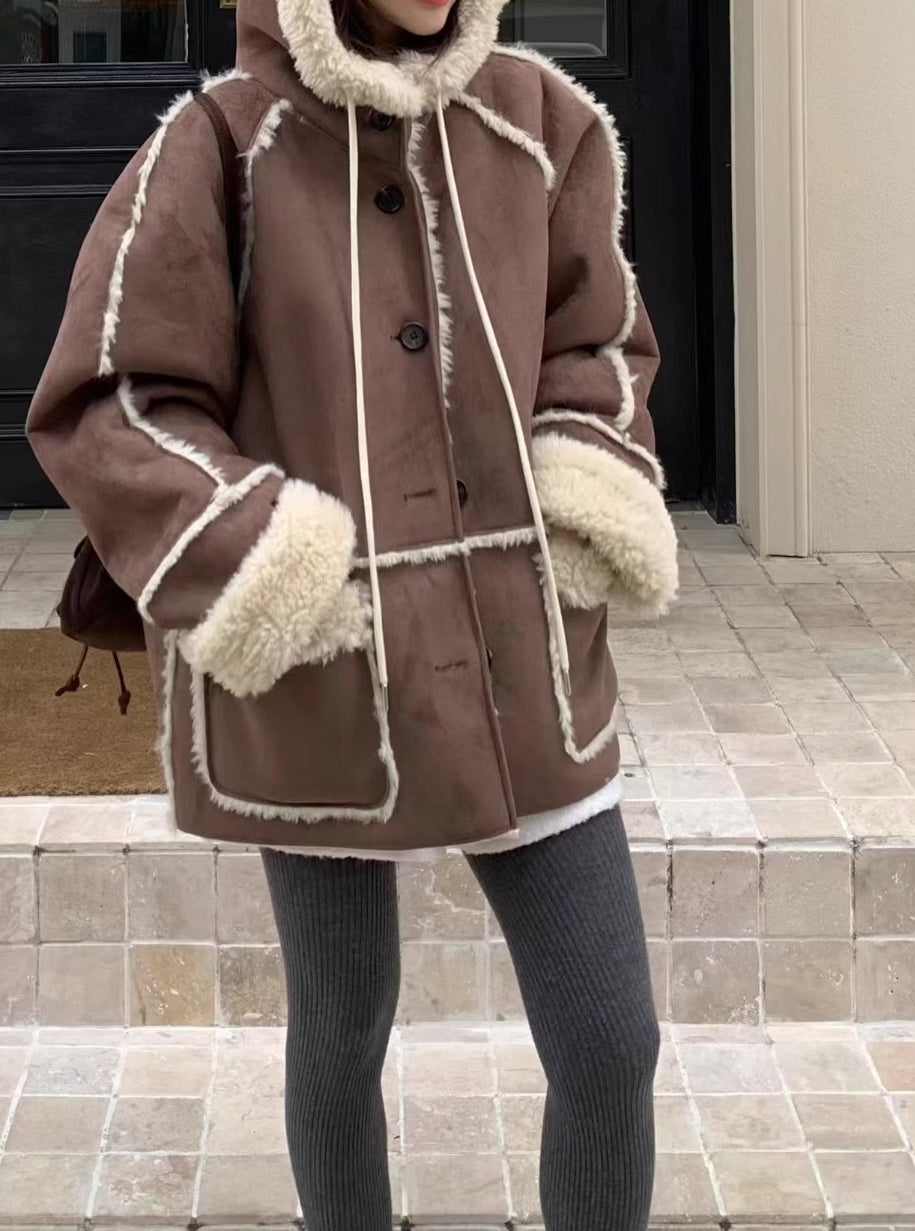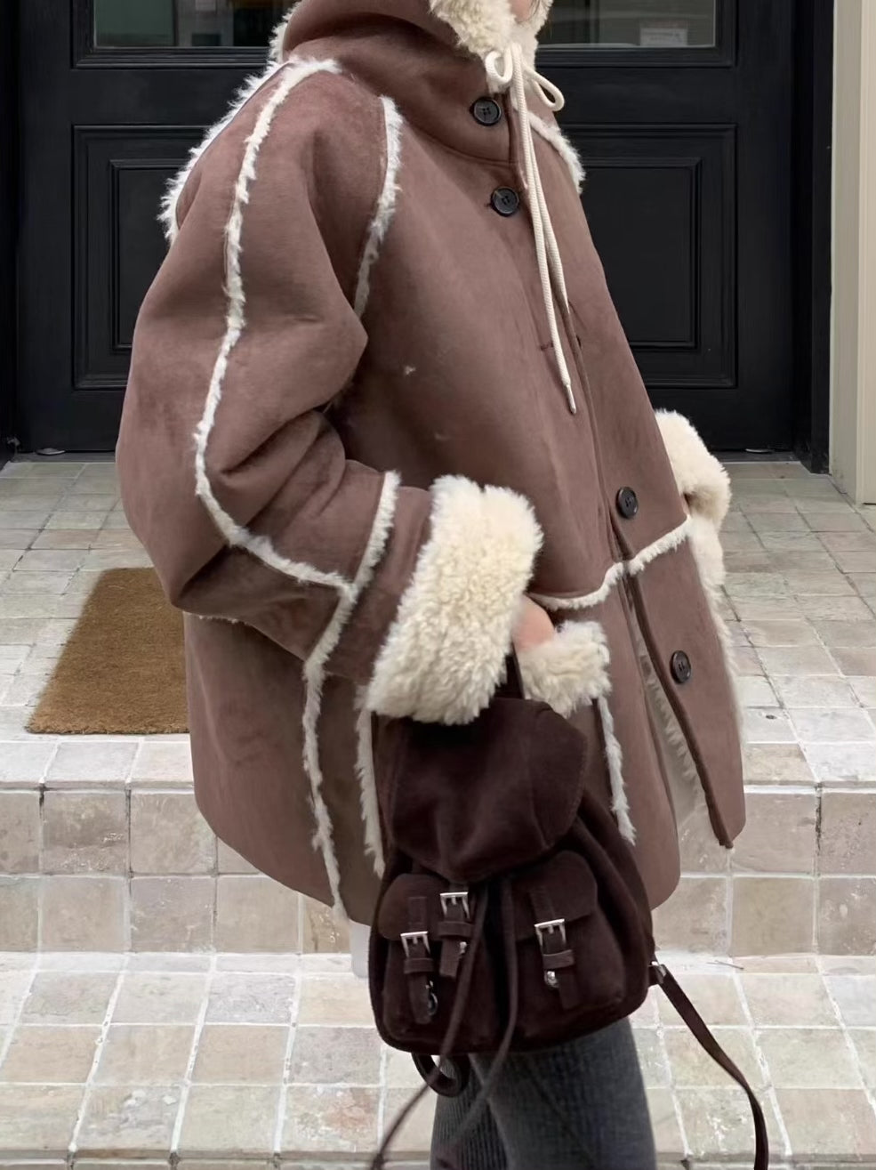 フードデザインが裏ボアの存在感を引き立たせてくれ、顔周りを華やかに見せてくれます。