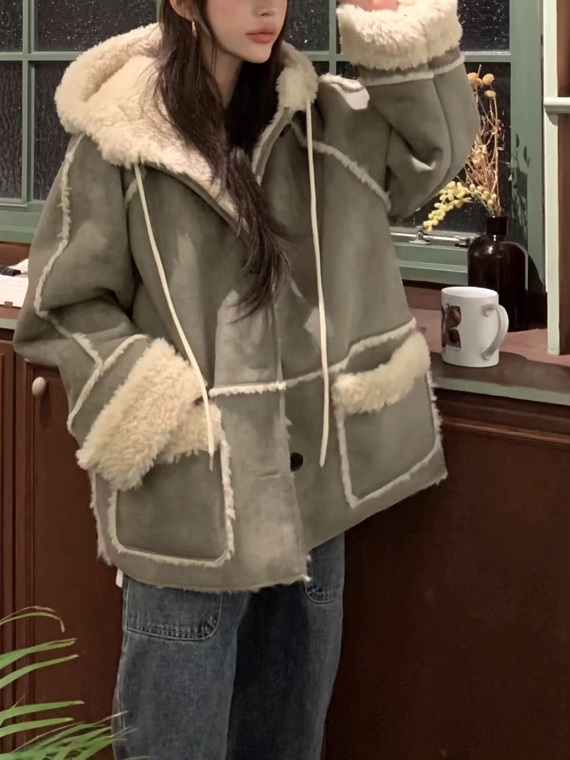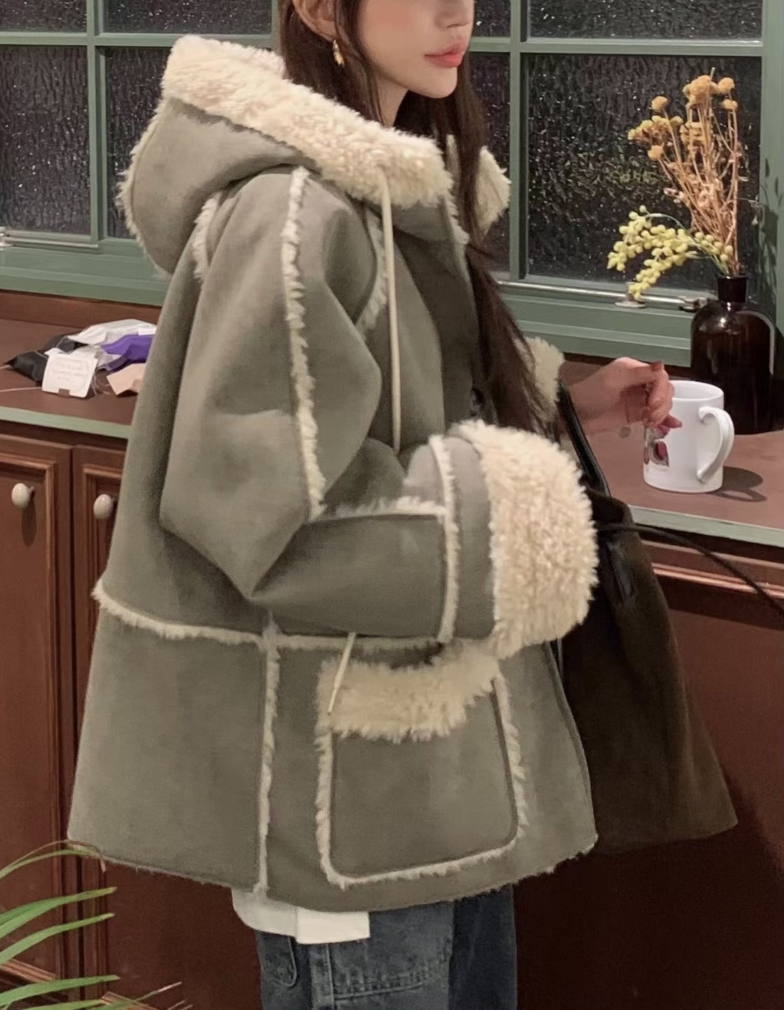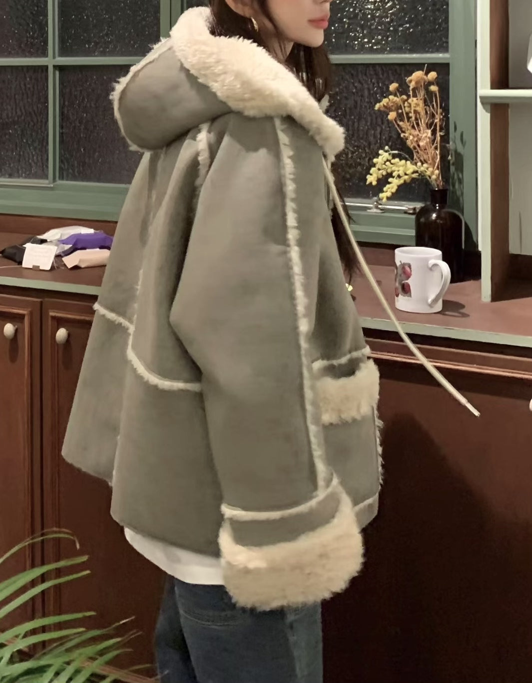 フードデザインが裏ボアの存在感を引き立たせてくれ、顔周りを華やかに見せてくれます。