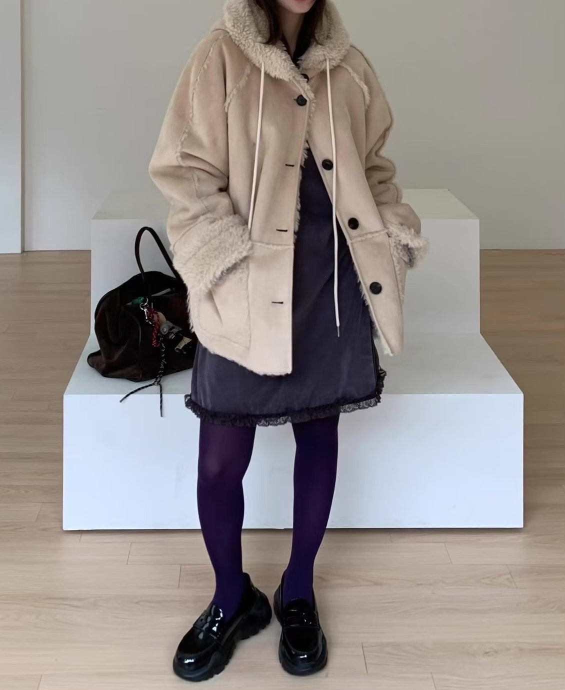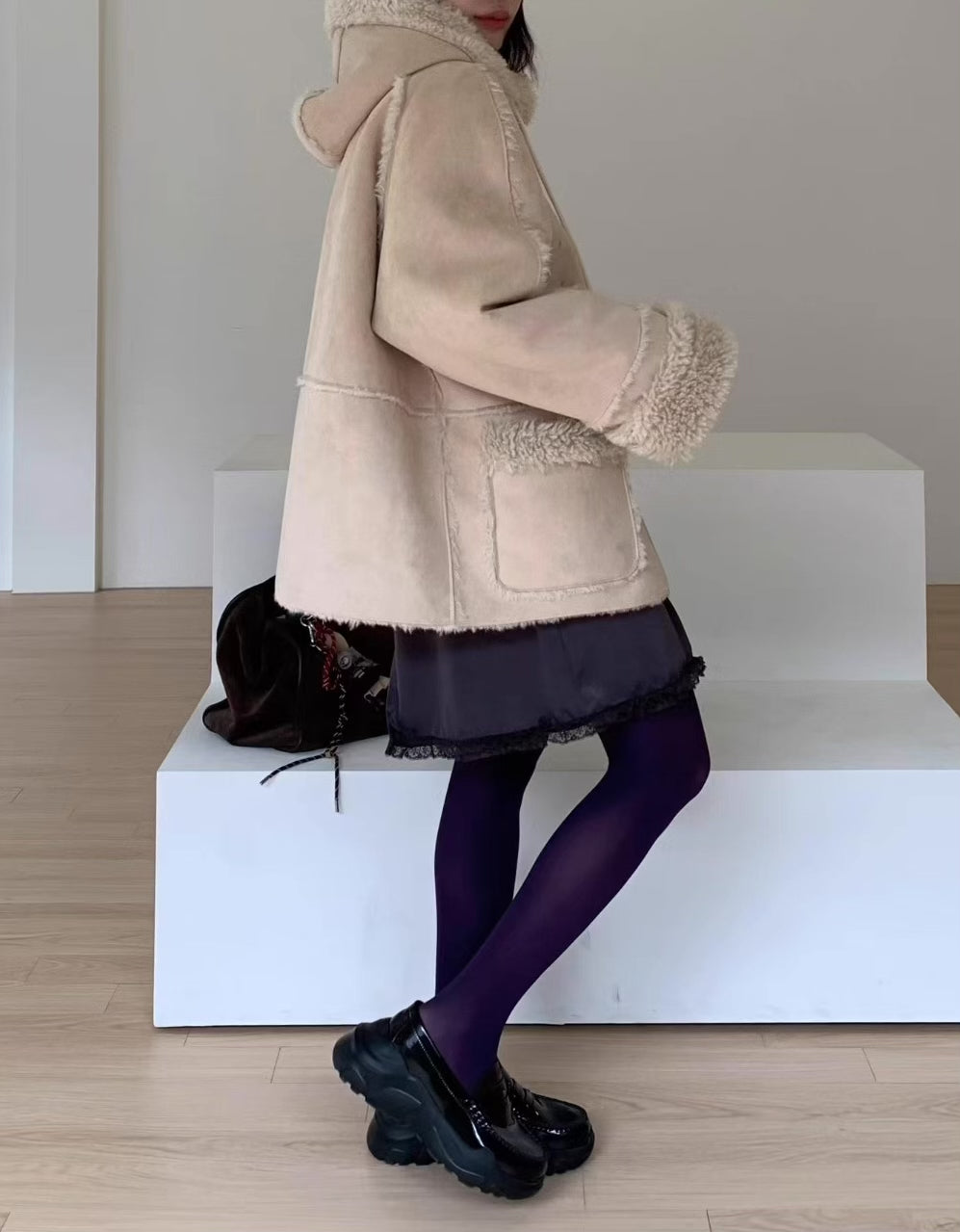裏側はボアになっていて毛足がありふんわりと暖かい素材感。