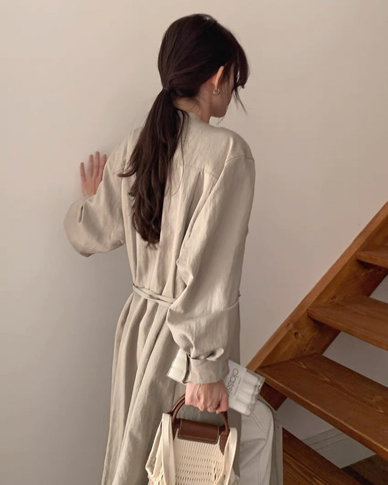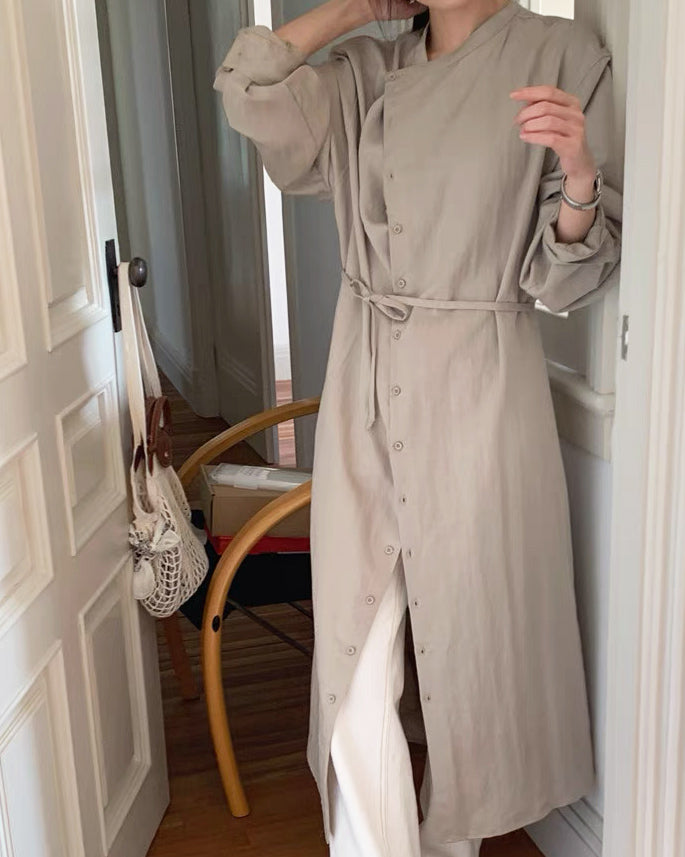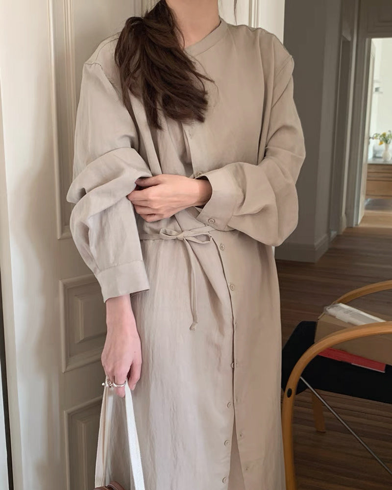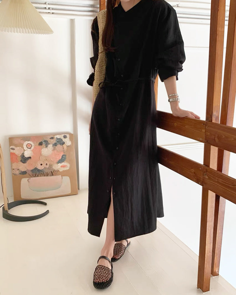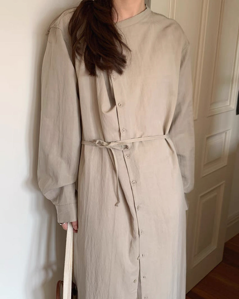共紐のリボンでウエストマークするとメリハリのあるシルエットに。