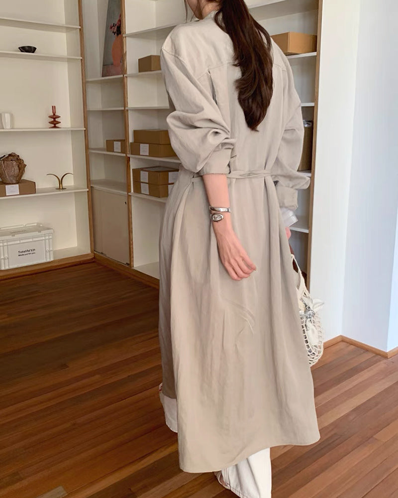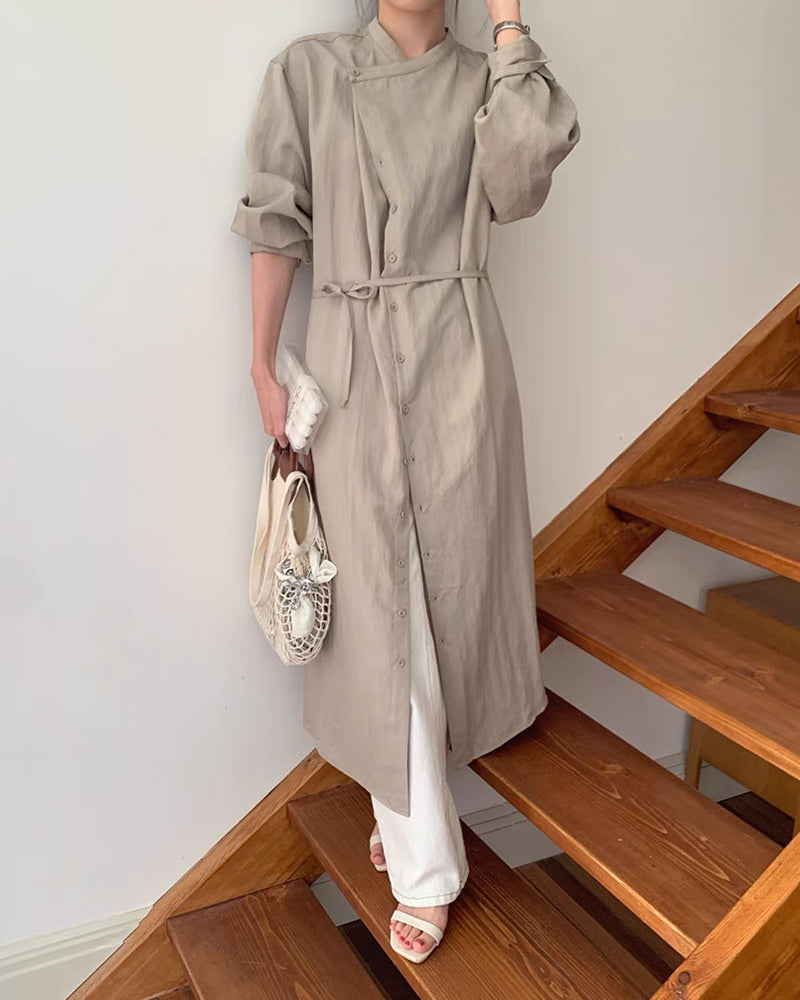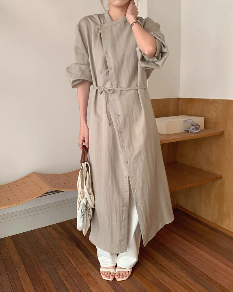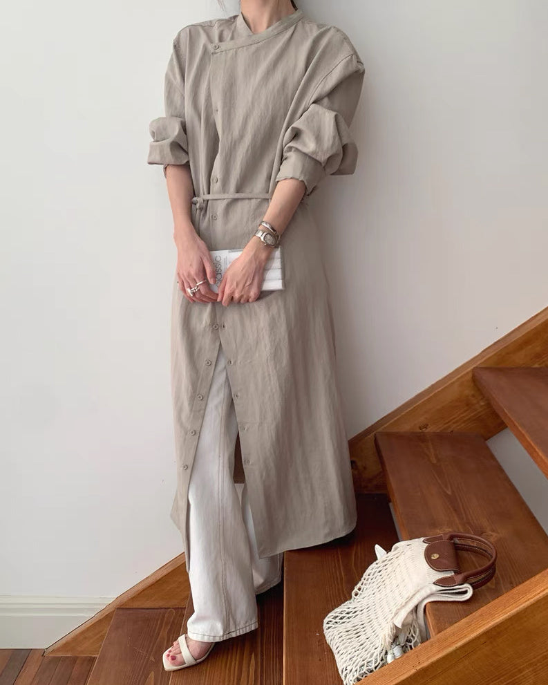 パンツとレイヤードして、裾側のボタンをいくつか開けてスリットのようにして抜け感を出した着こなしがおすすめです◎
