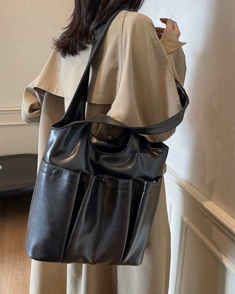 大きめサイズなので荷物が多い時でも安心の収納力。マチもしっかりとあるので幅のある荷物も収納できます。