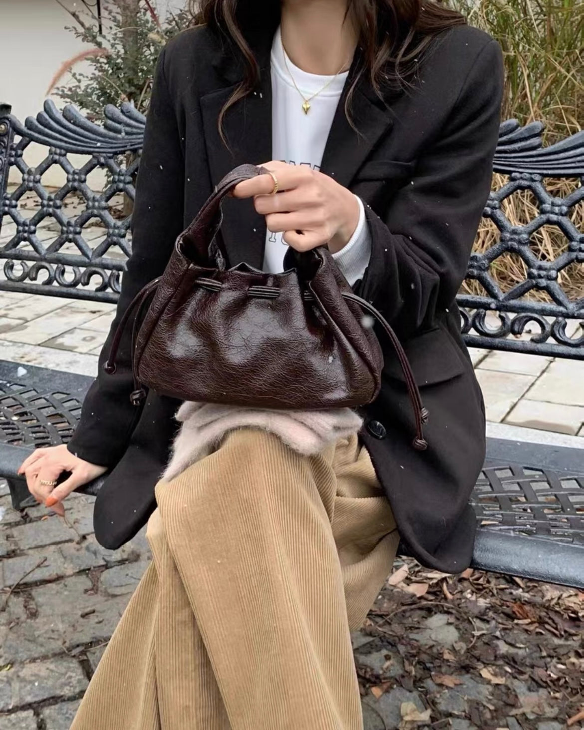 表面のシワ感やツヤがヴィンテージな雰囲気も感じられる深みのあるアイテム。
