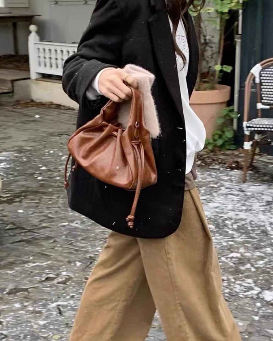 付属のベルトを付け足すとショルダーベルトにもなるので、その日の気分やコーデによってハンドバッグやショルダーバッグとしてお使いいただけます。