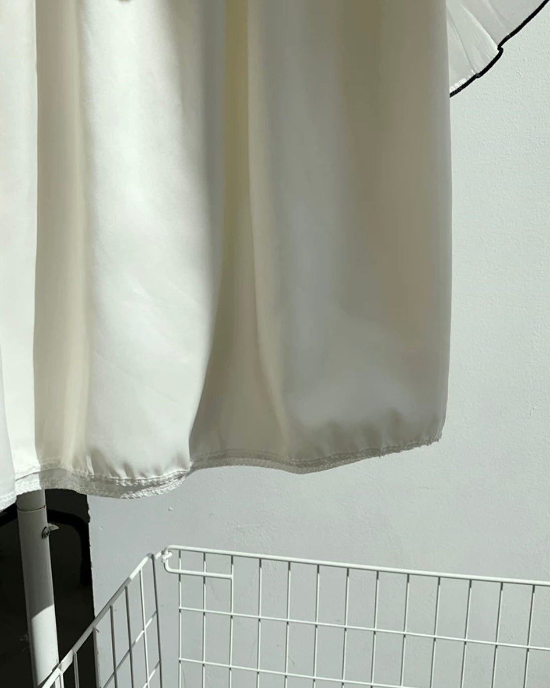 広がりすぎない程よいボリューム感が華やかさを生み、Tシャツやシンプルなトップスとの相性も◎