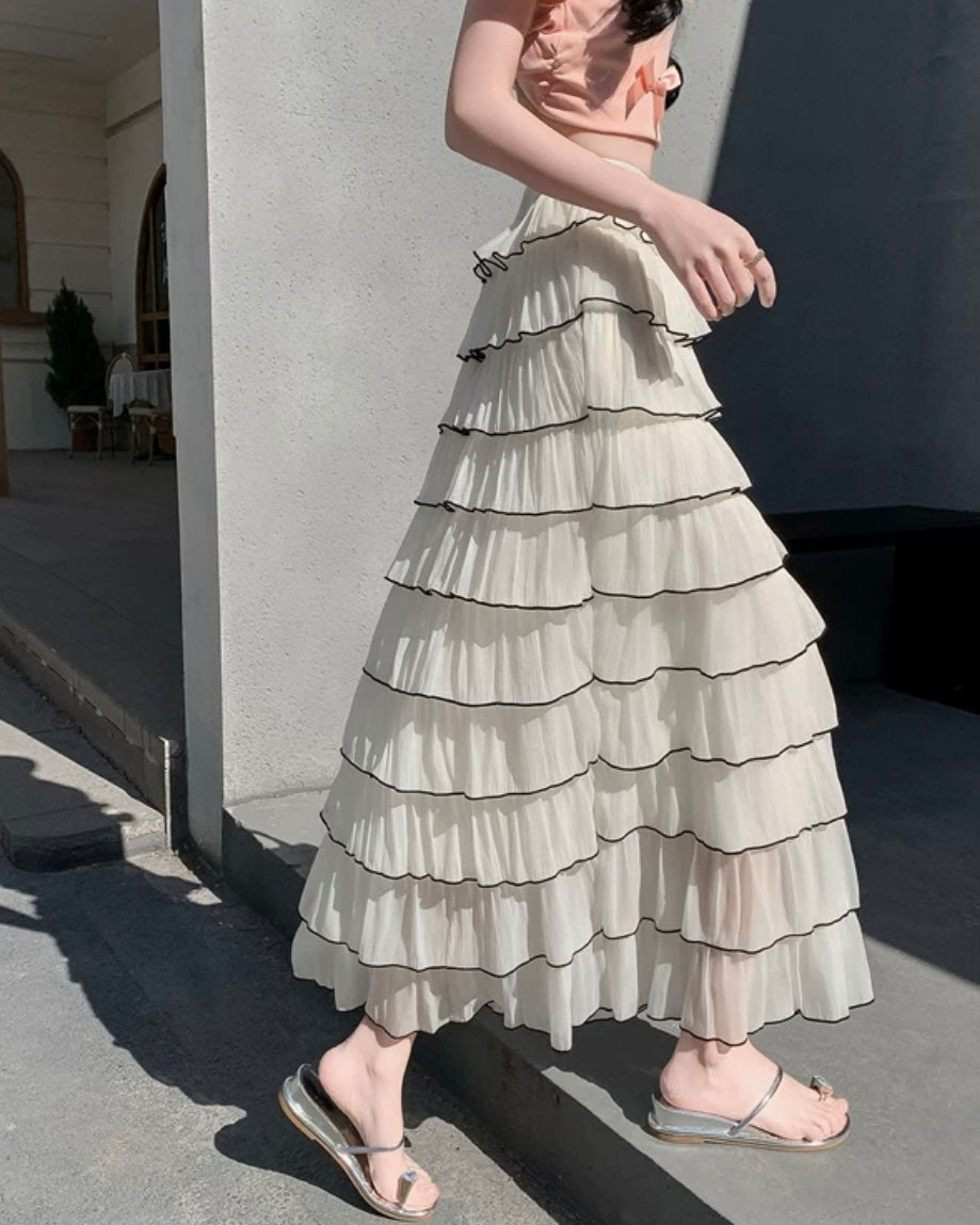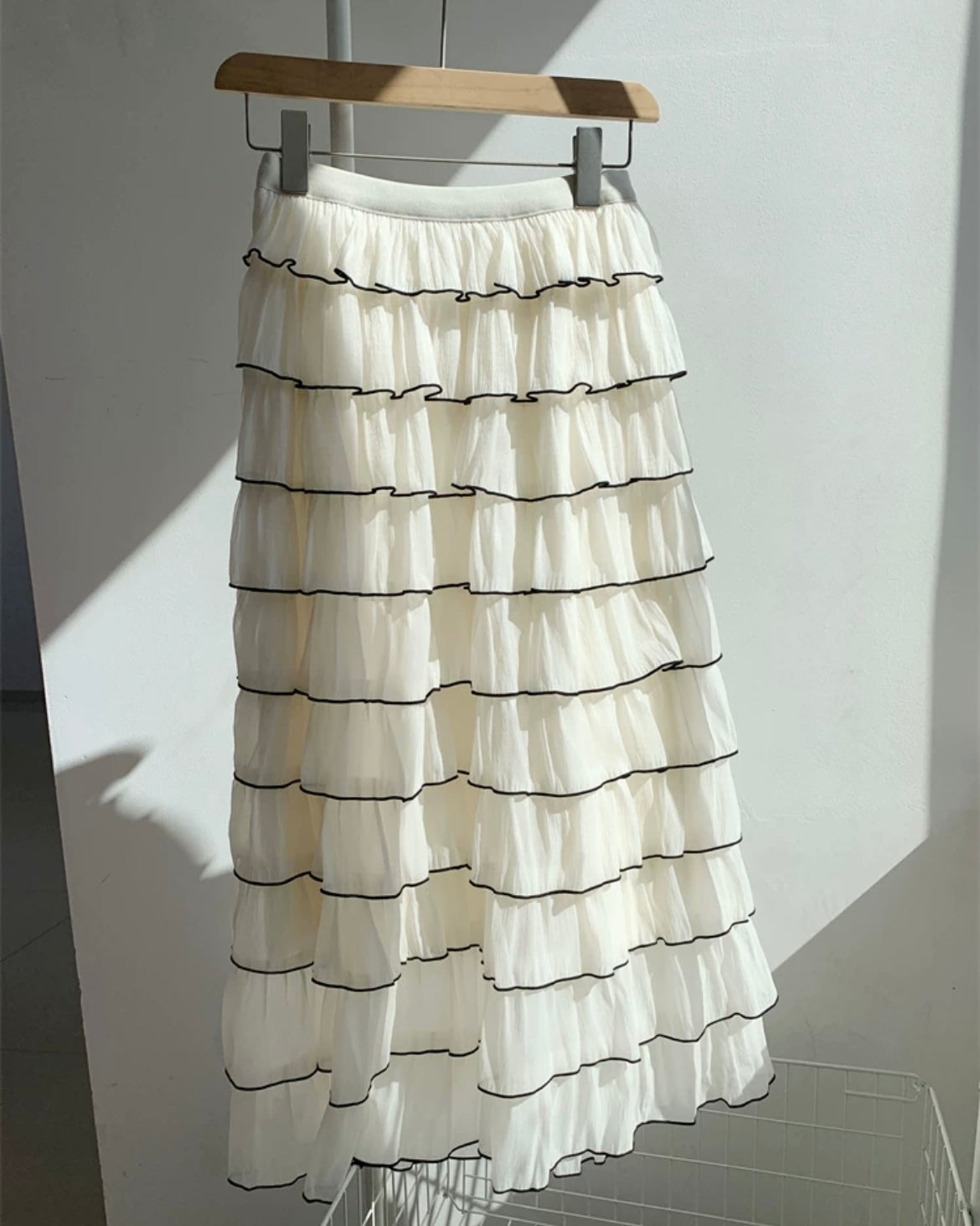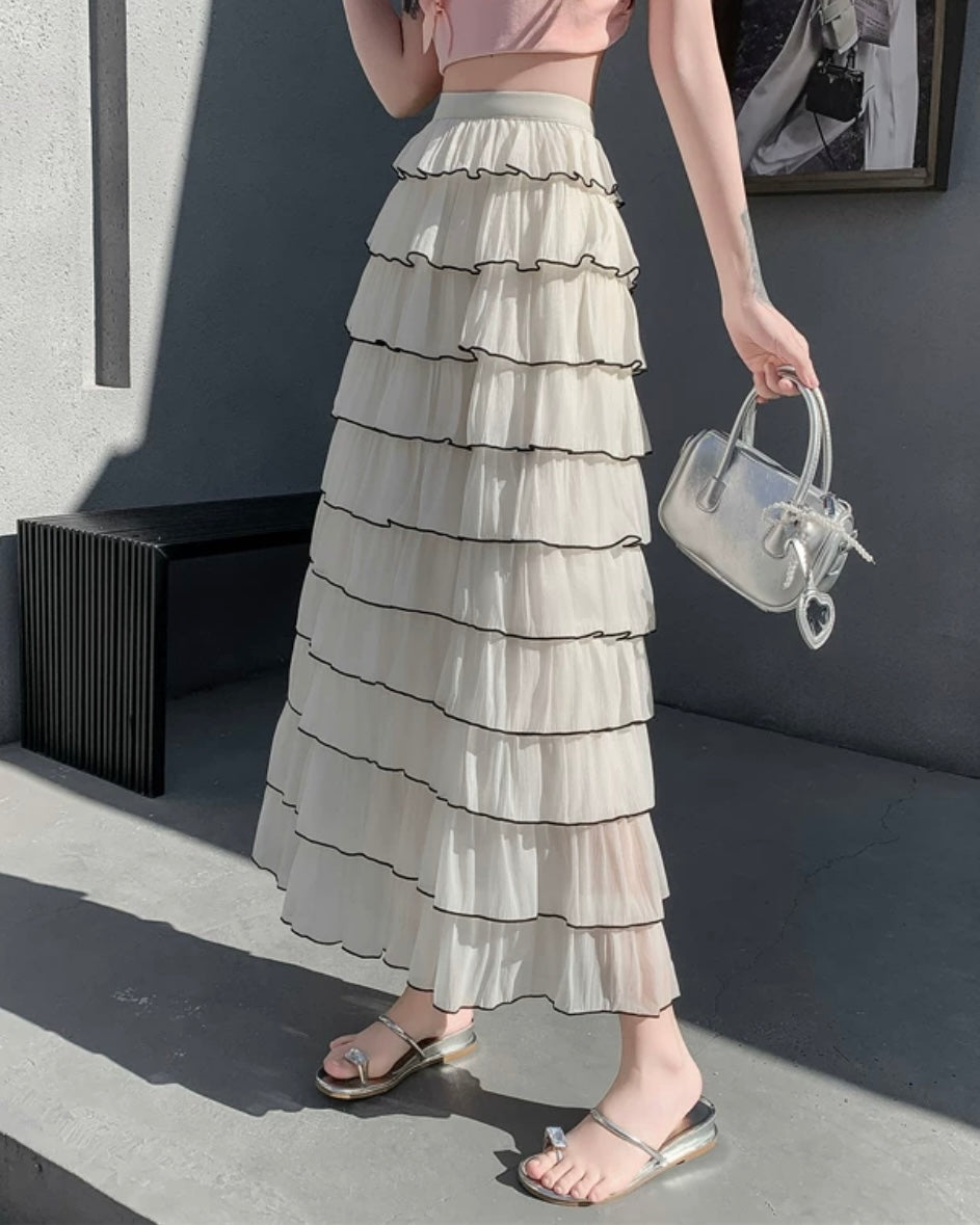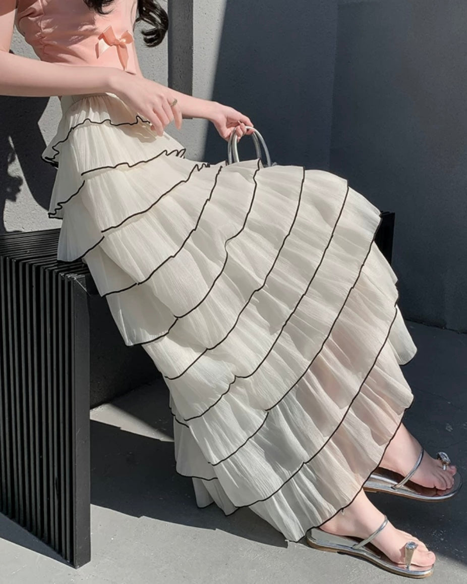 たっぷりのティアードデザインで、歩くたびにフワッと動きが出てスタイリングを華やかに演出します。