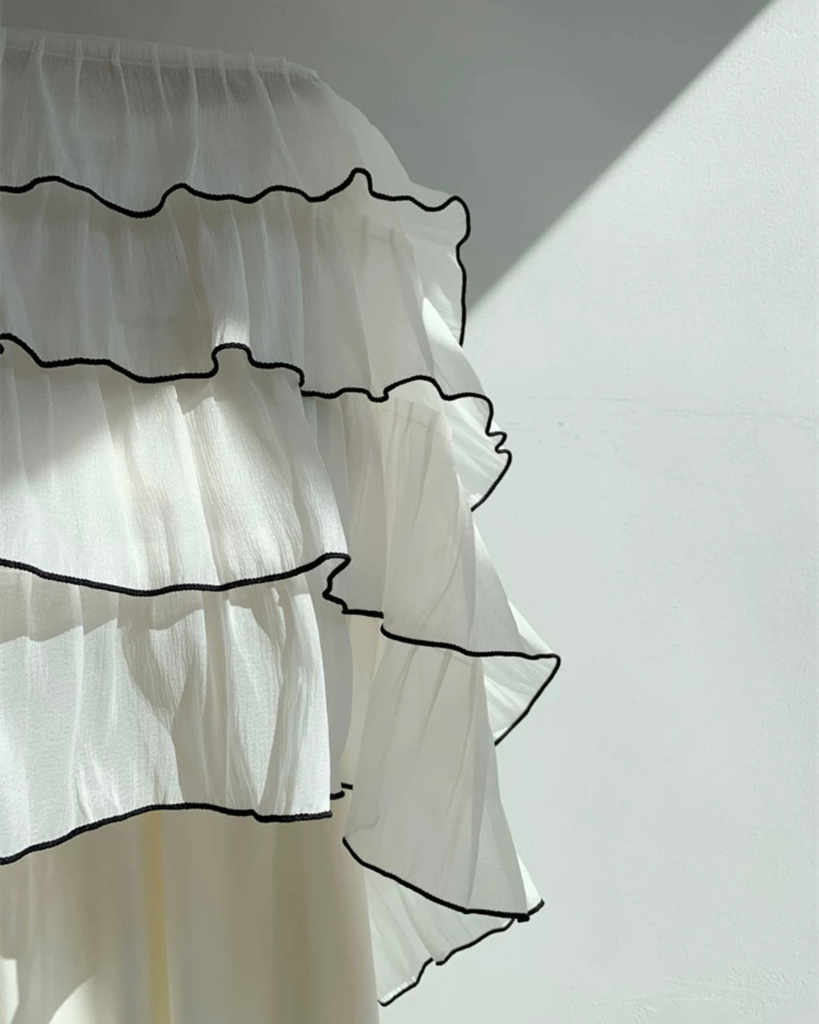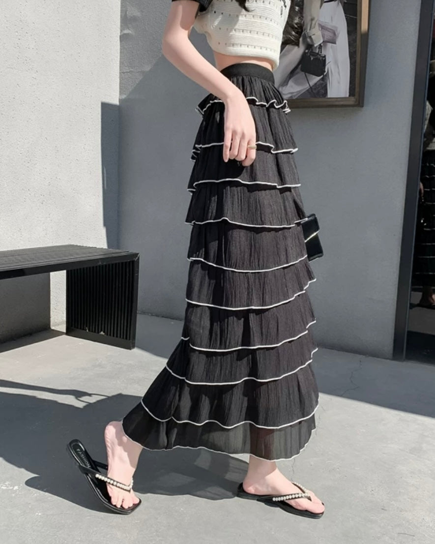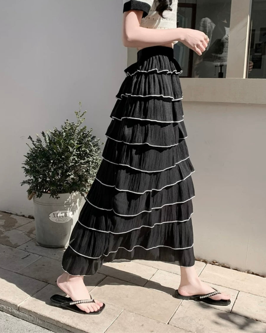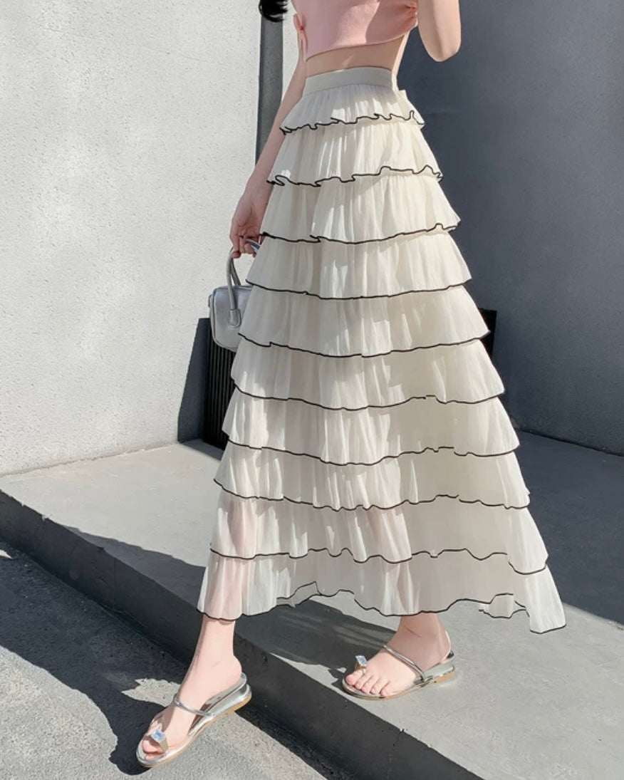 たっぷりのティアードデザインで、歩くたびにフワッと動きが出てスタイリングを華やかに演出します。