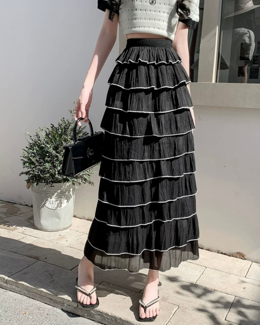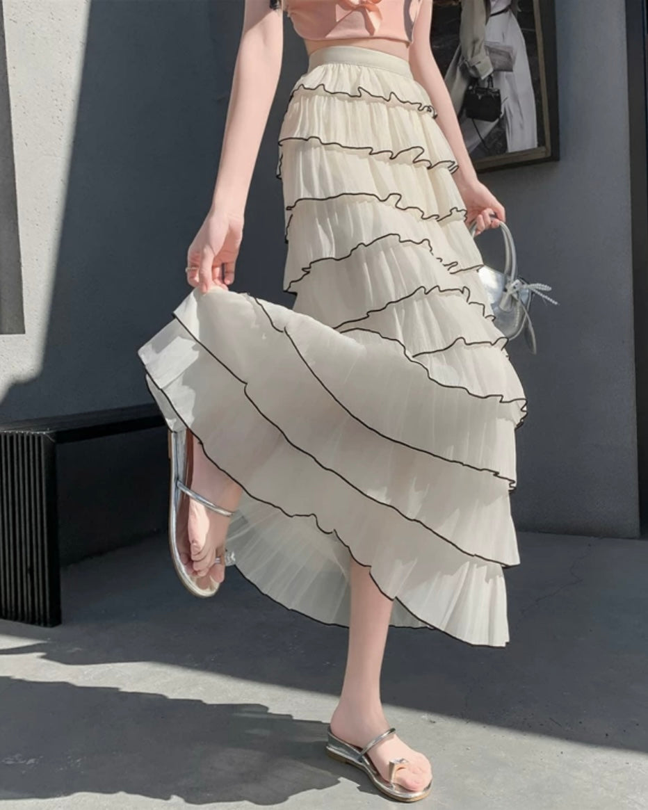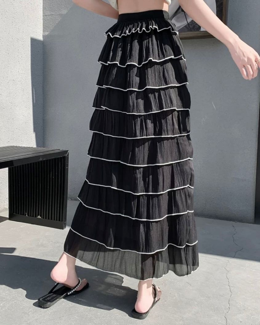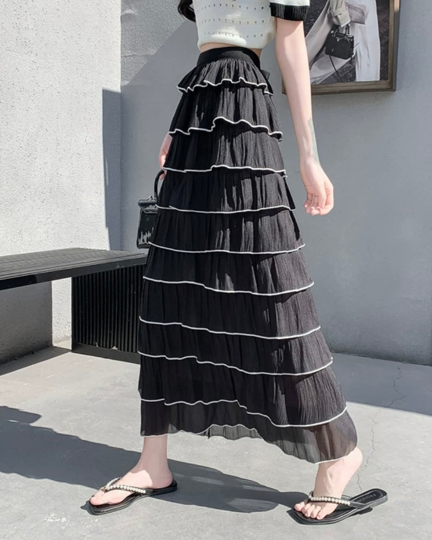 たっぷりのティアードデザインで、歩くたびにフワッと動きが出てスタイリングを華やかに演出します。