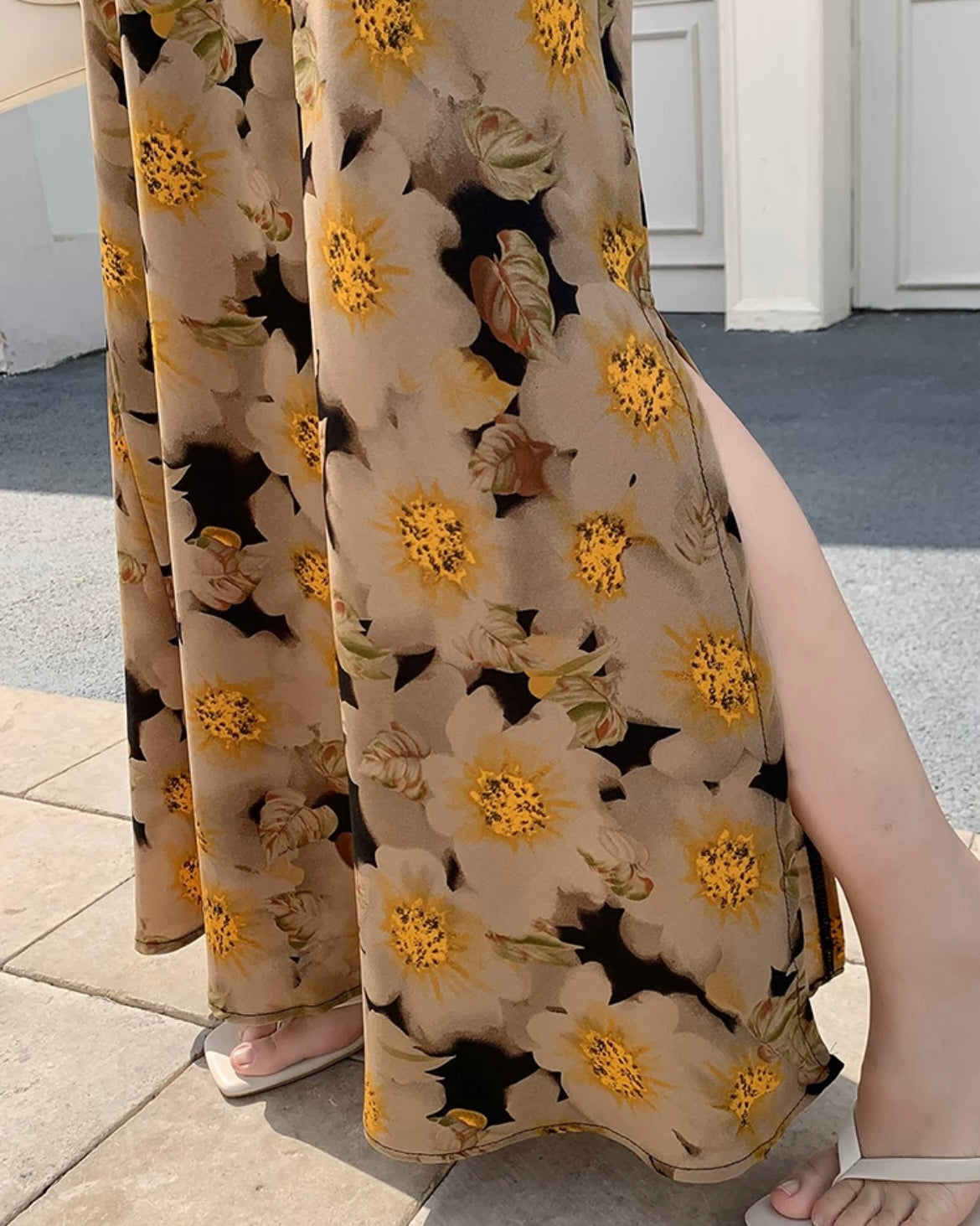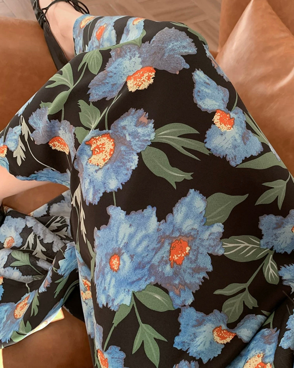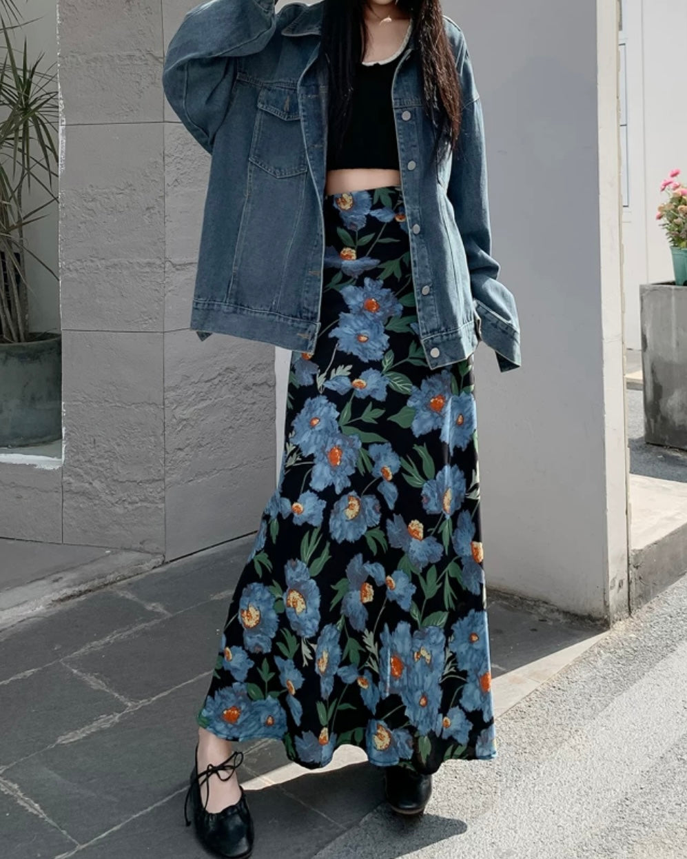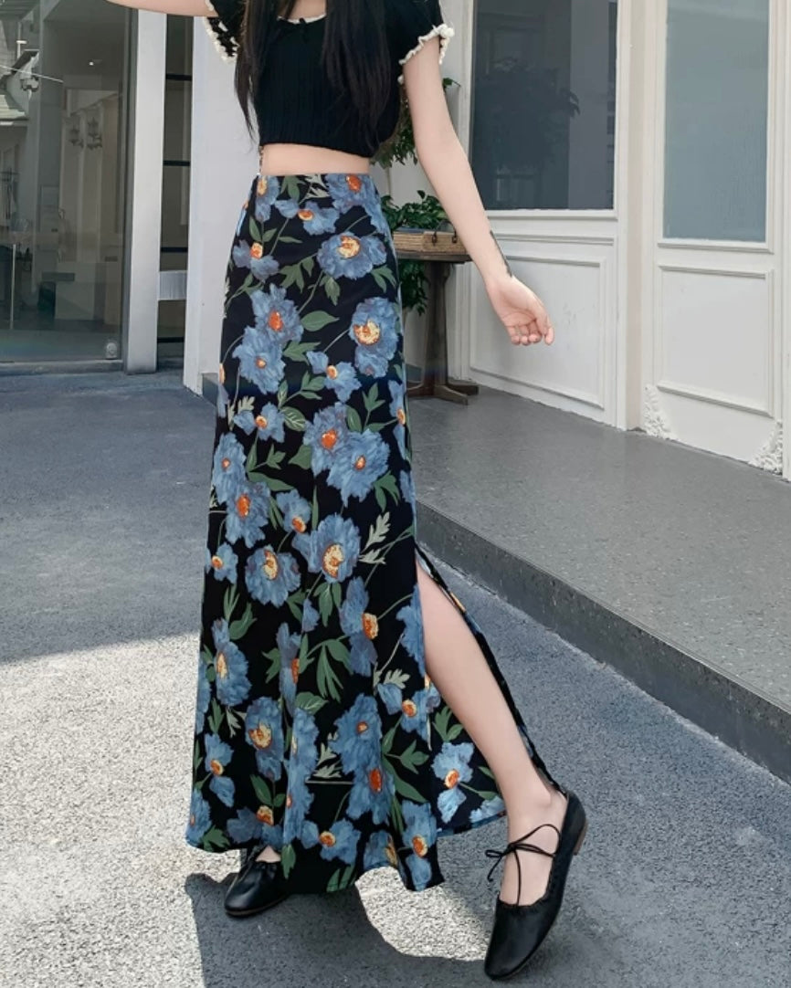 ハイウエストデザインでスタイルアップも叶えつつ、大柄が華やかで目を惹くデザイン。