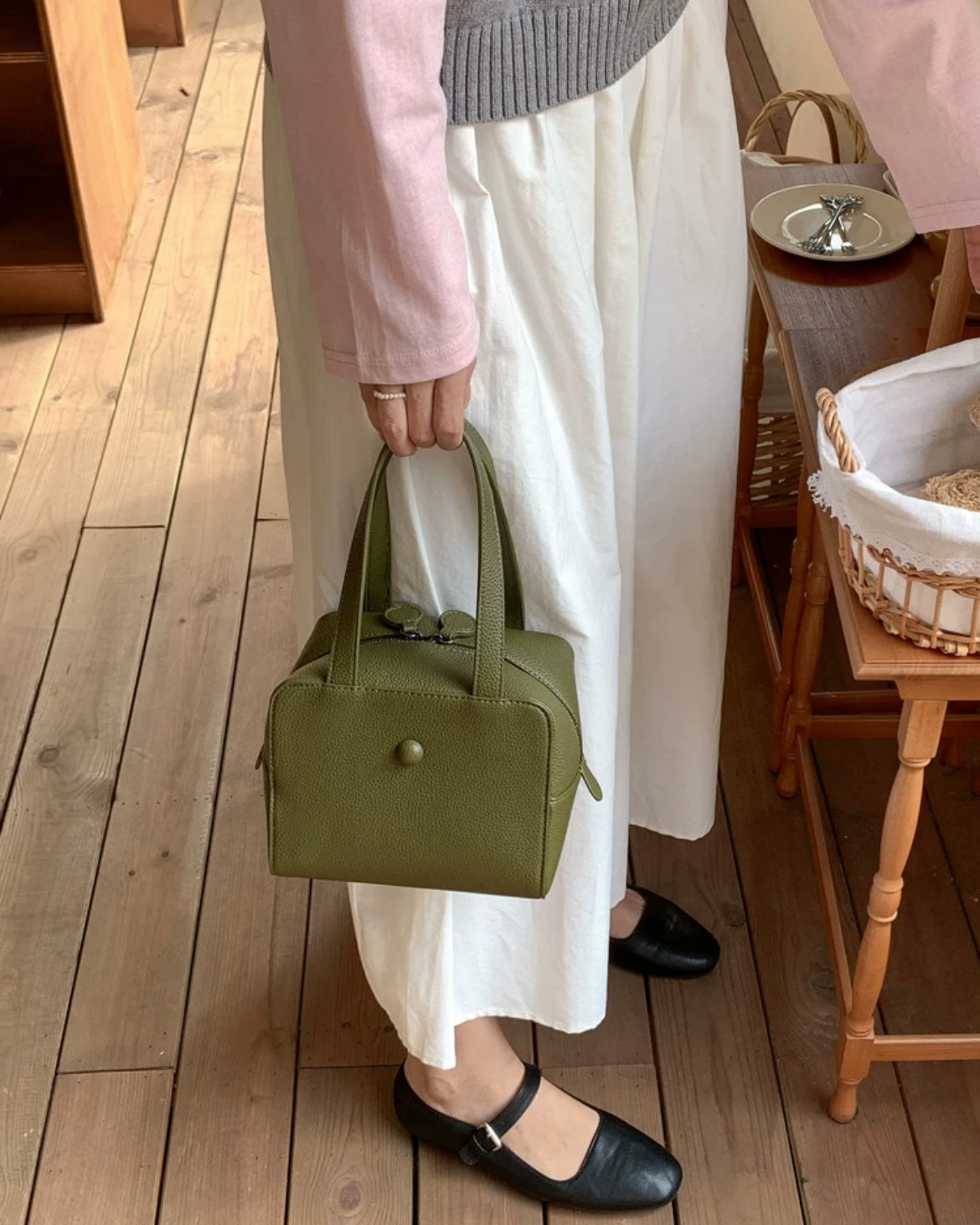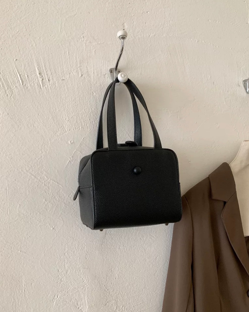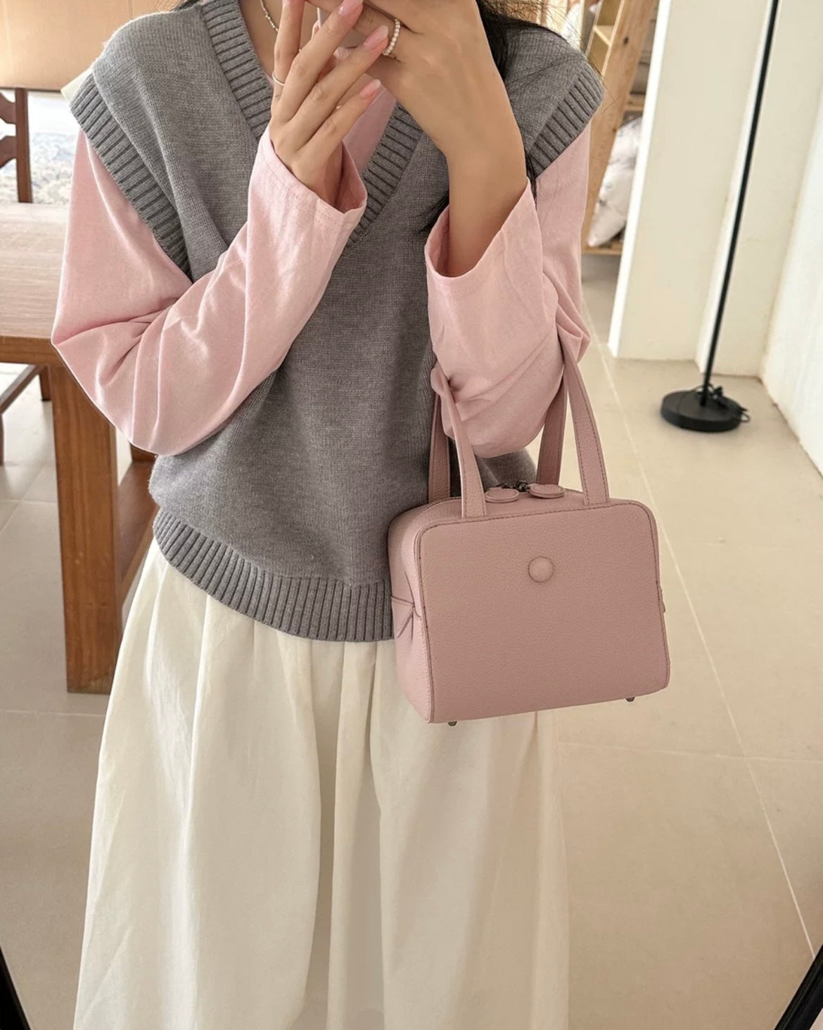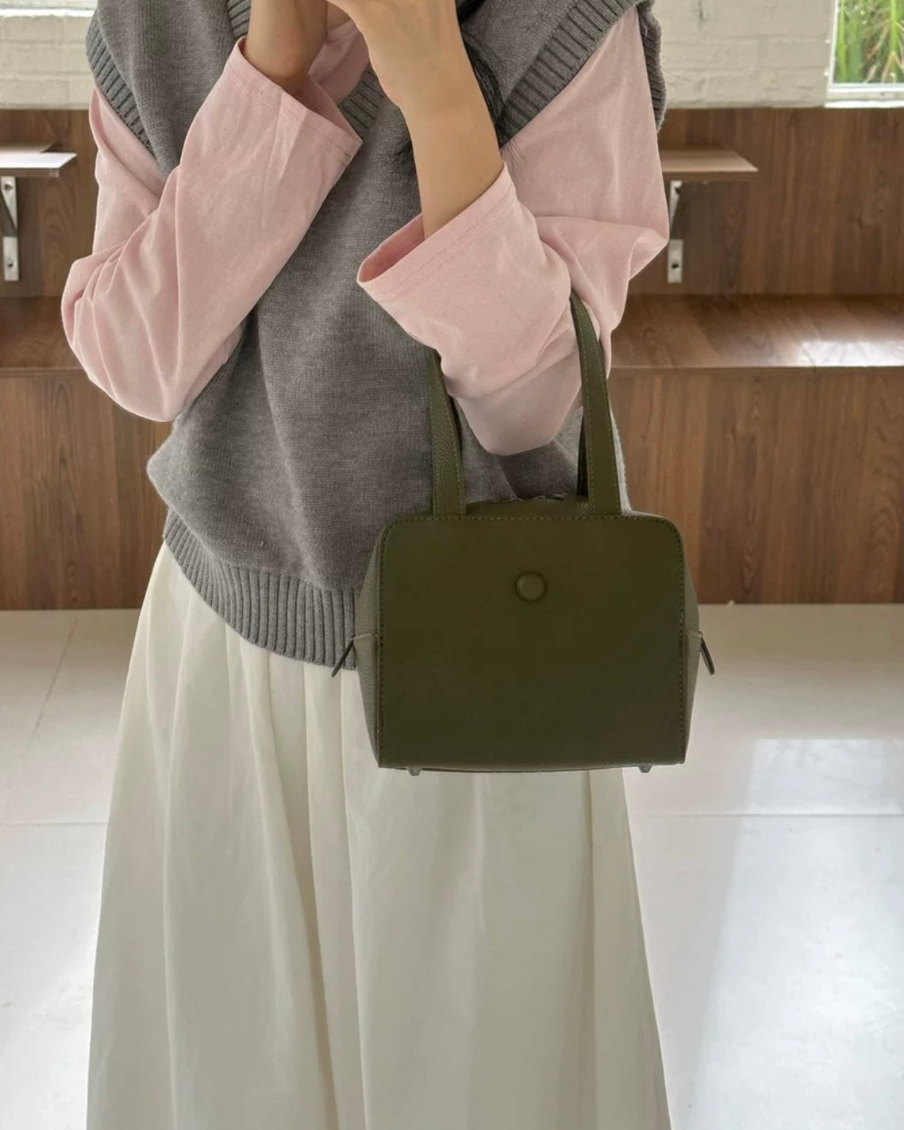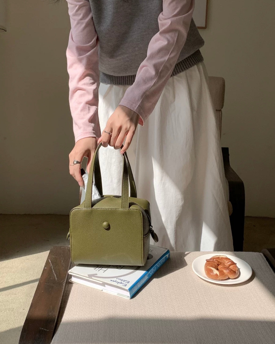 ワンカラーの上品かつ可愛らしいボックス型バッグ。