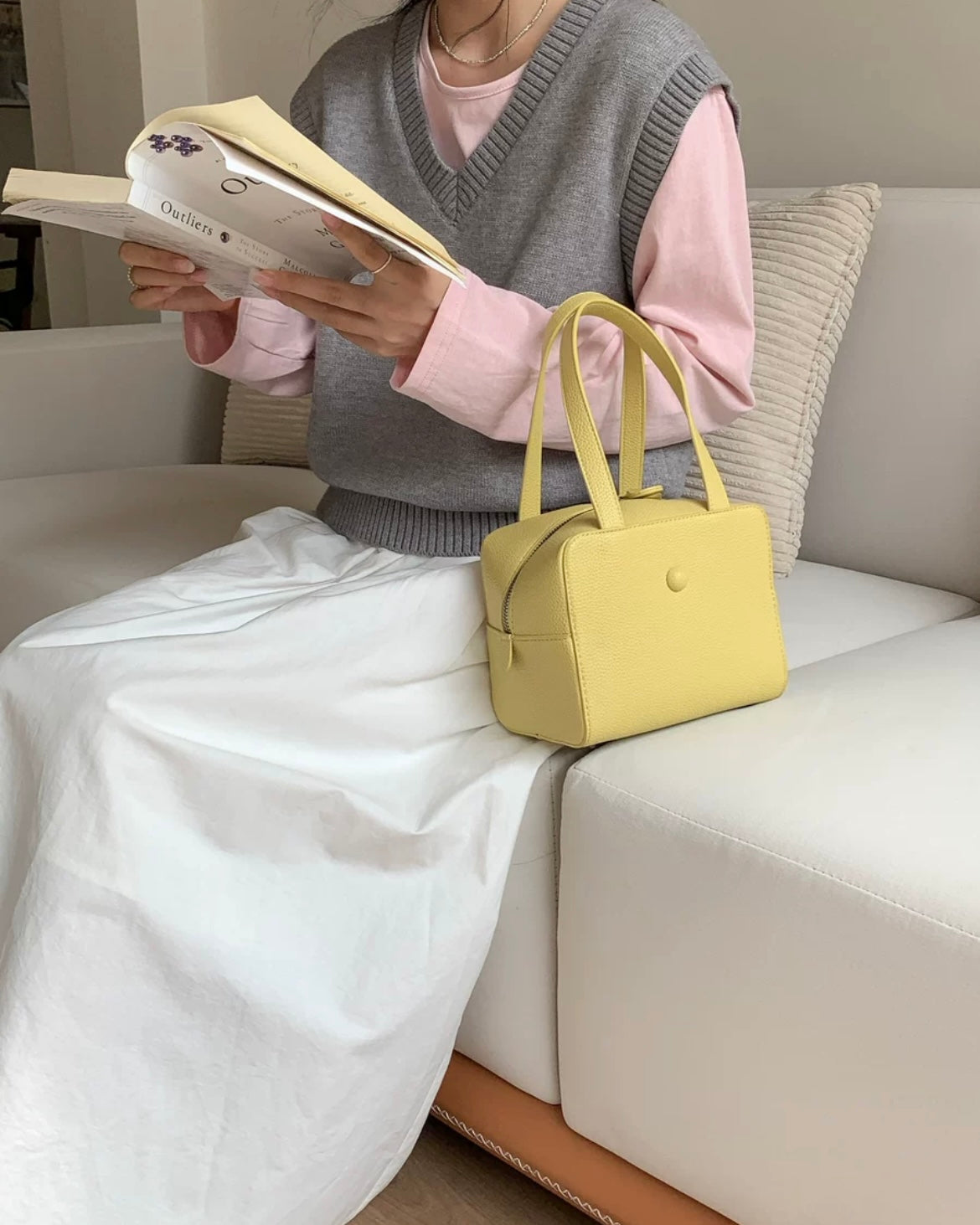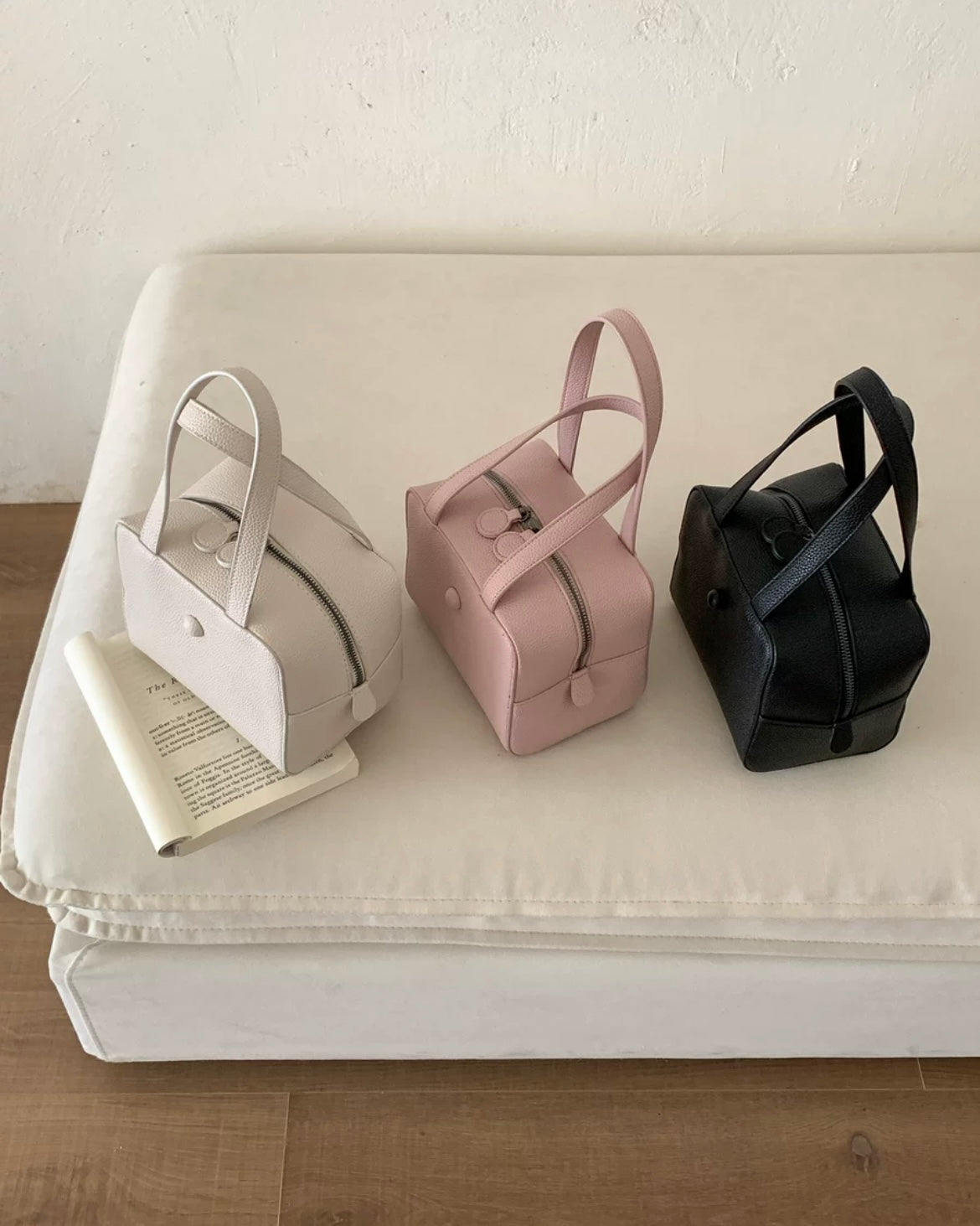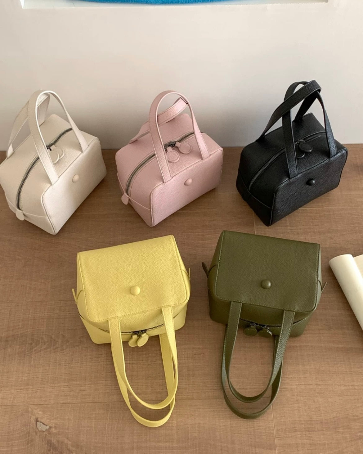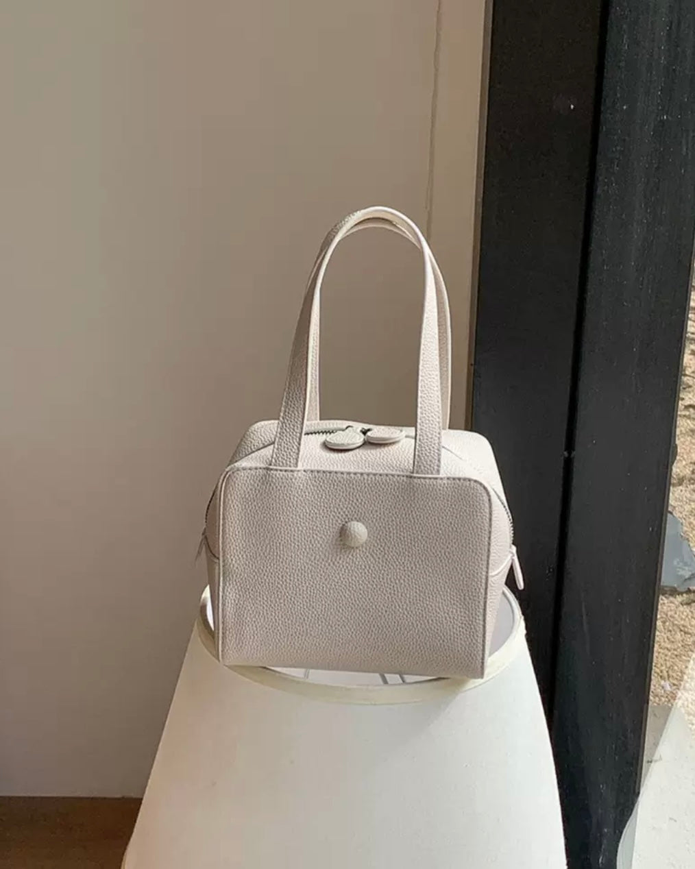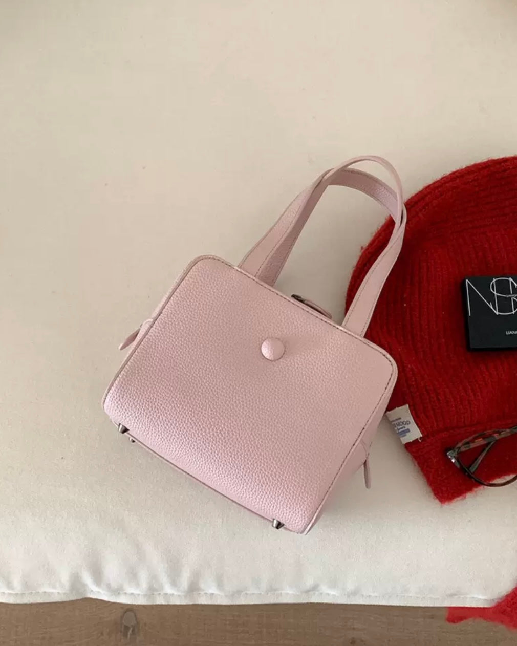 ワンカラーの上品かつ可愛らしいボックス型バッグ。