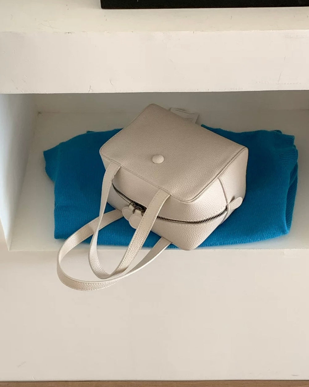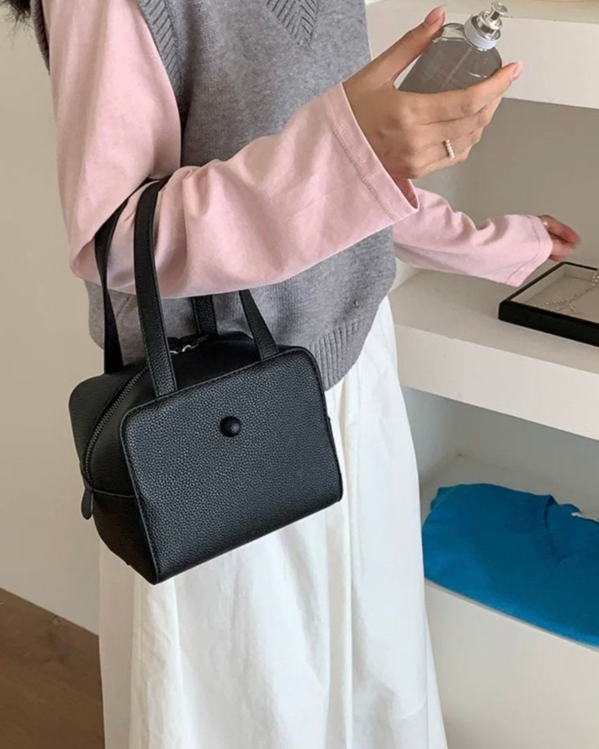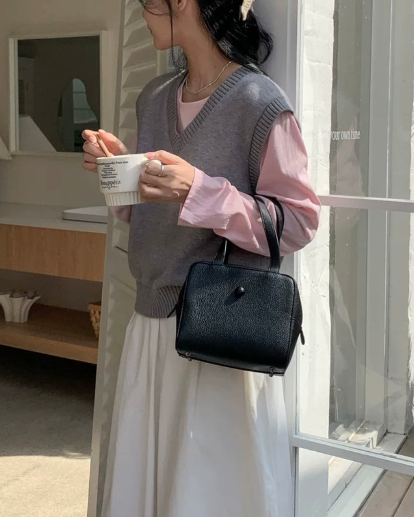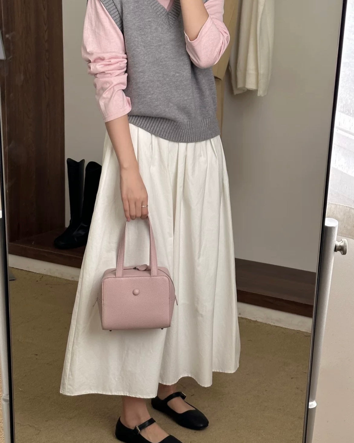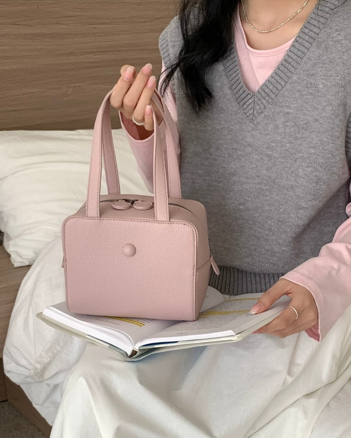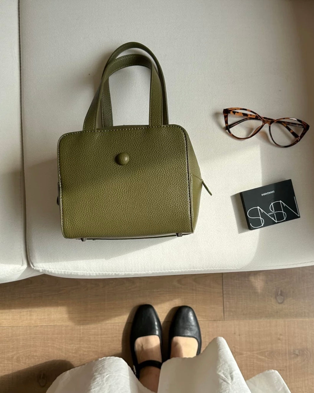 ワンカラーの上品かつ可愛らしいボックス型バッグ。
