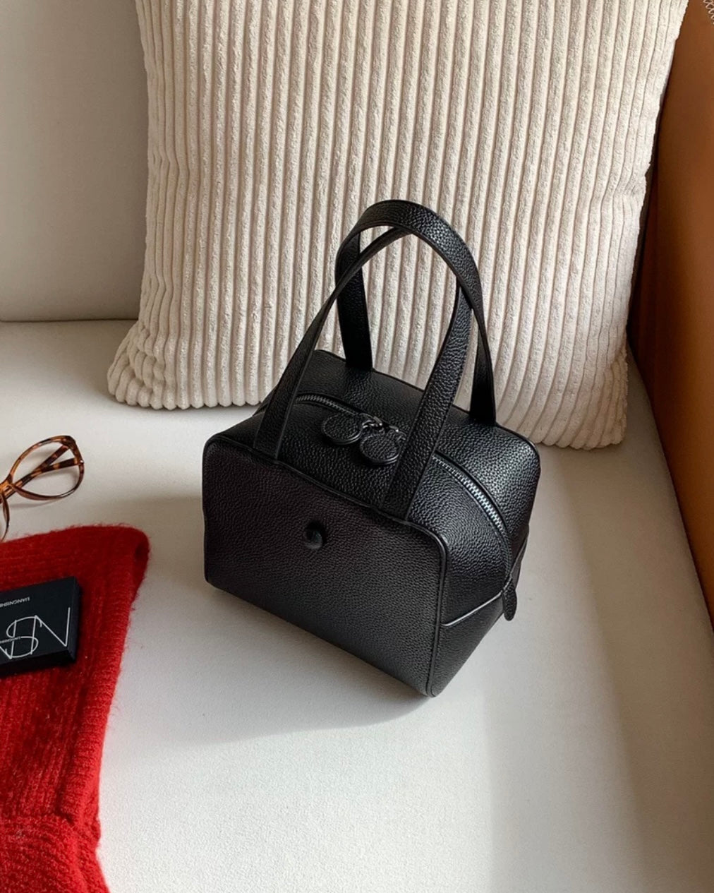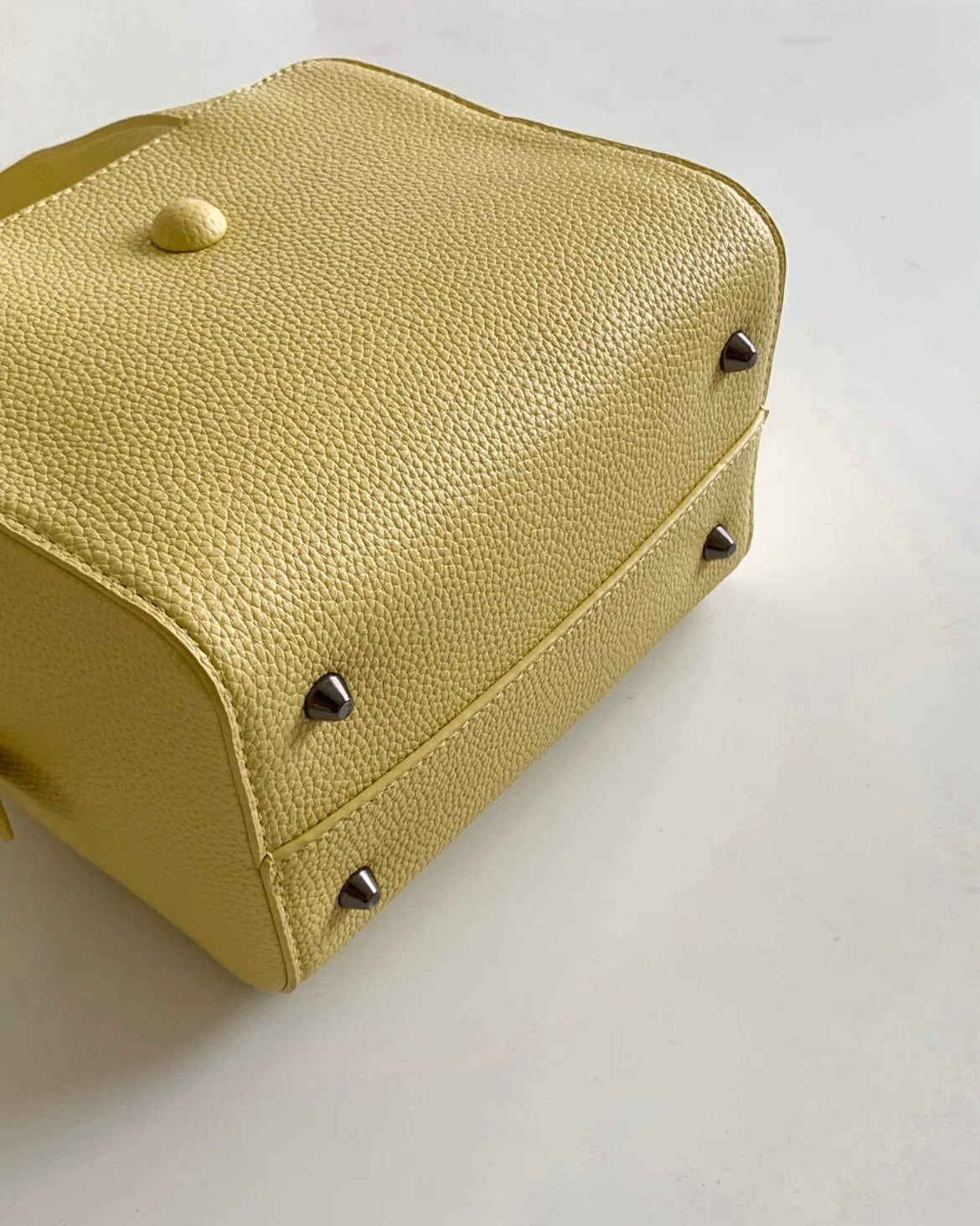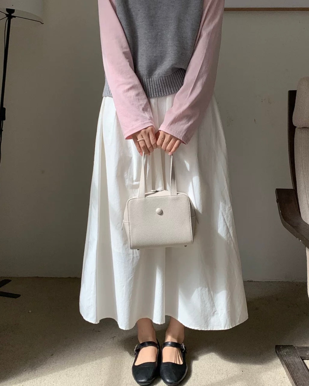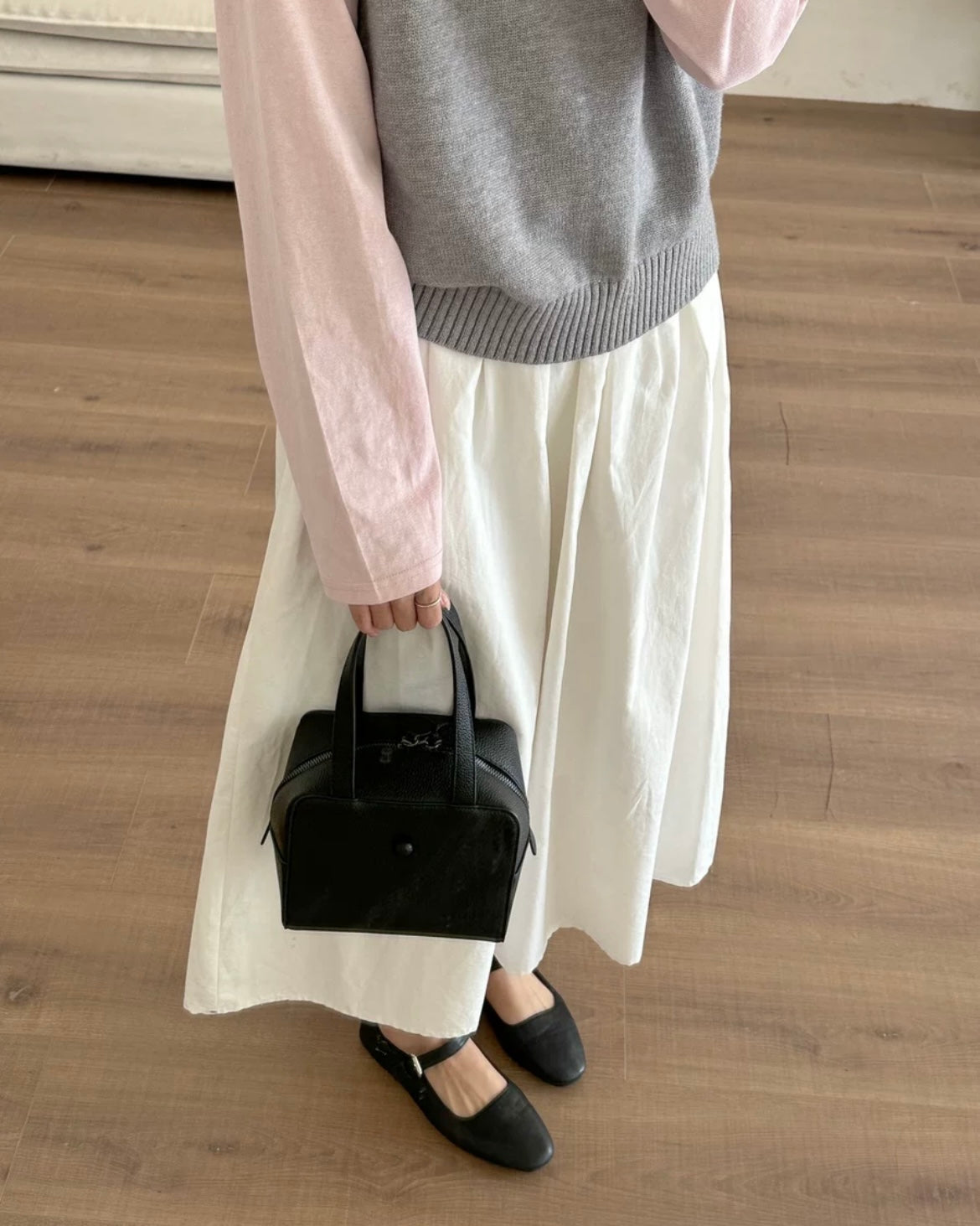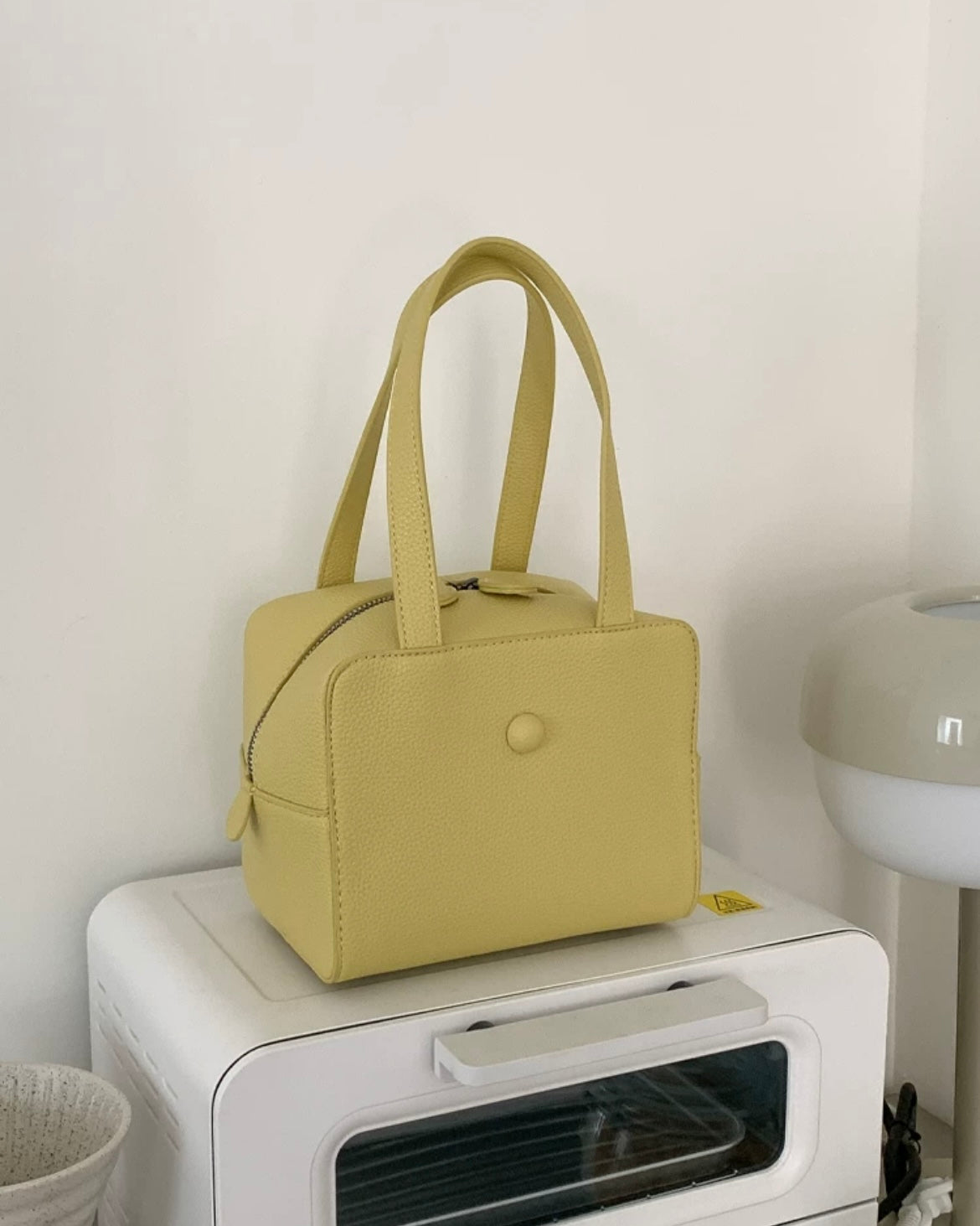 ワンカラーの上品かつ可愛らしいボックス型バッグ。