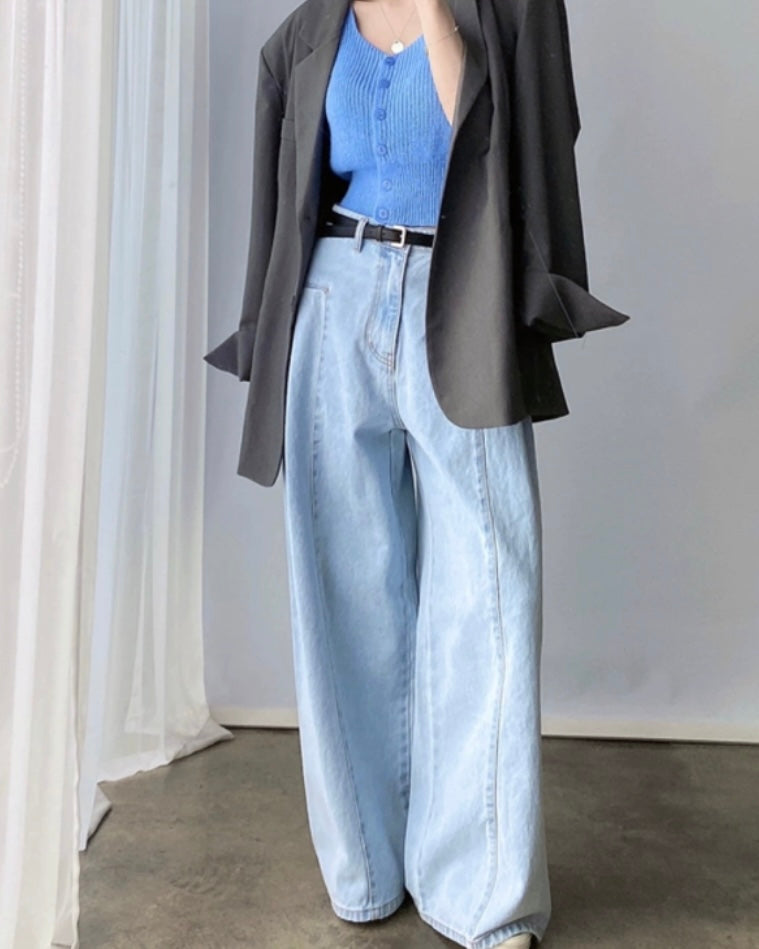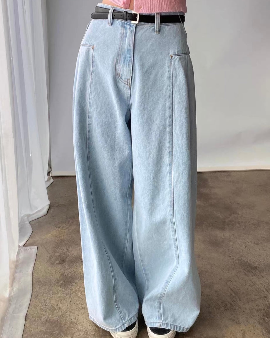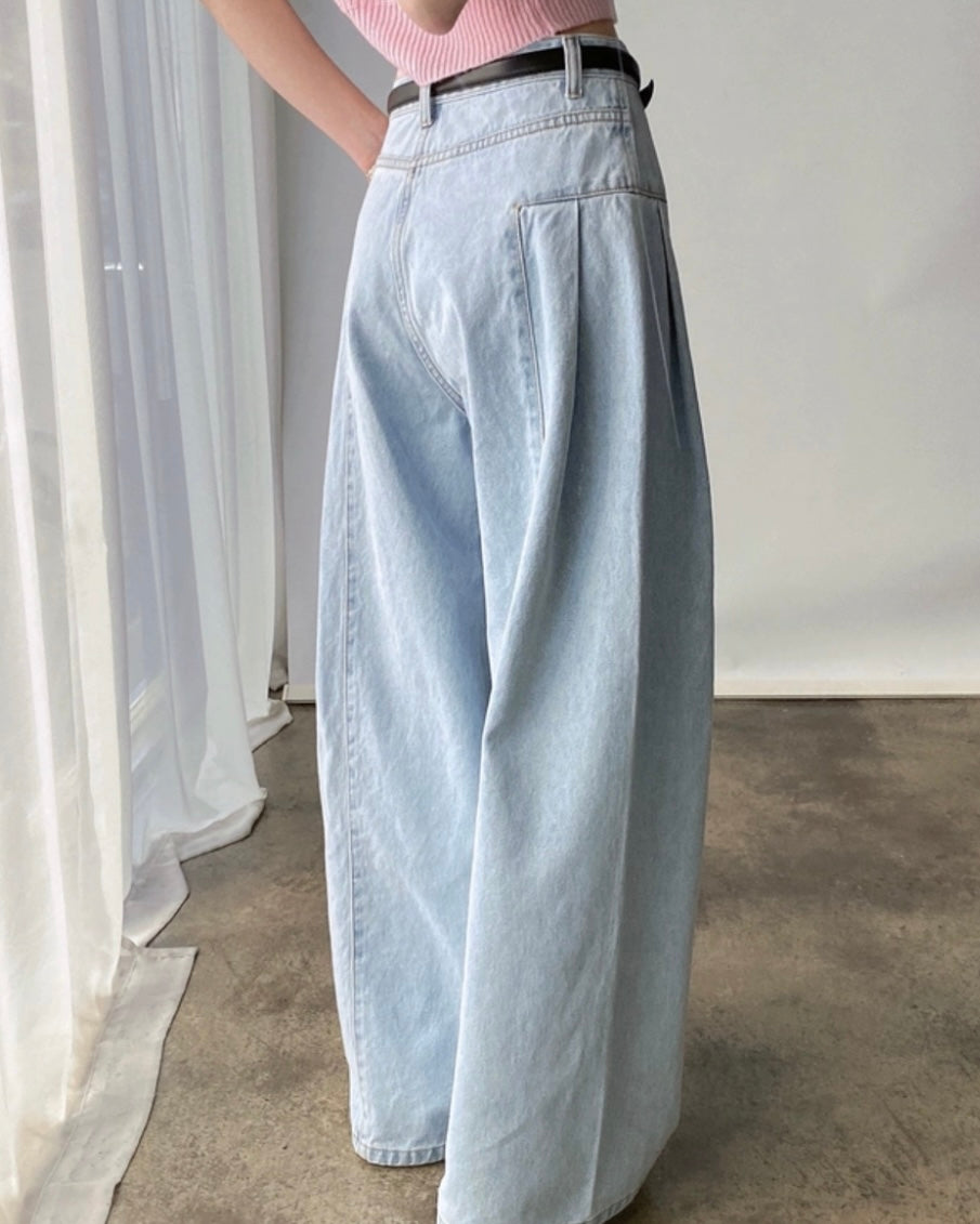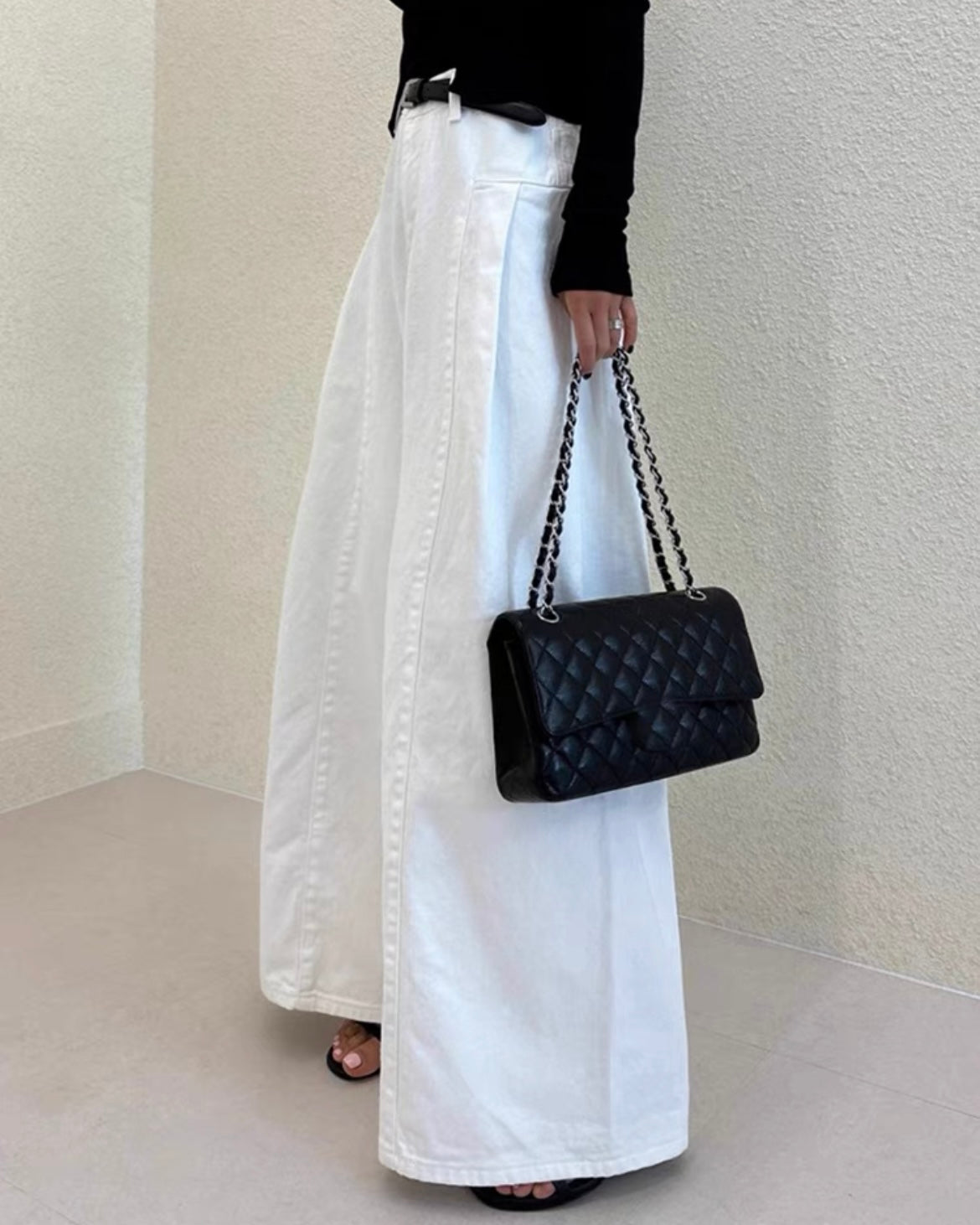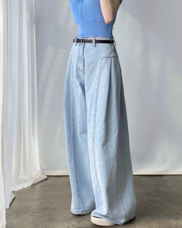 ハイウエストでワイドなシルエットなのでトップスをインさせたすっきりとしたスタイリングがおすすめです。