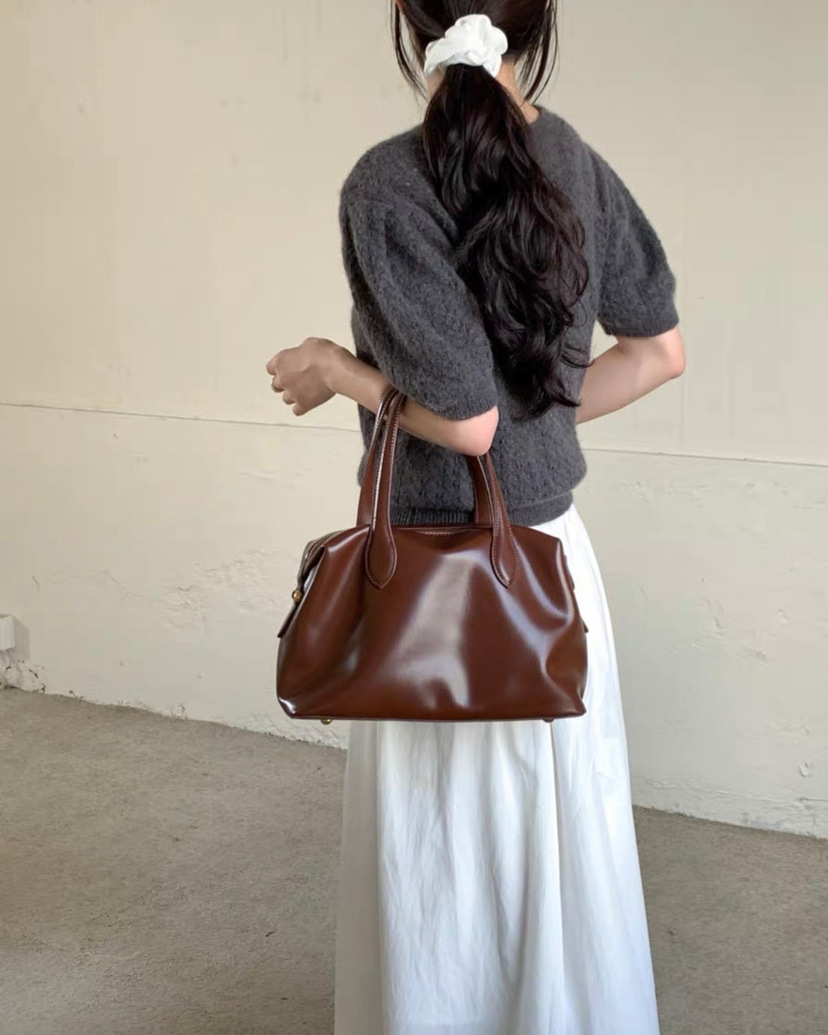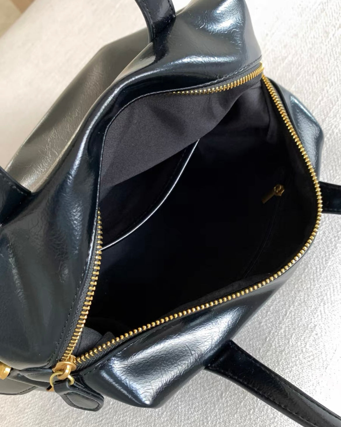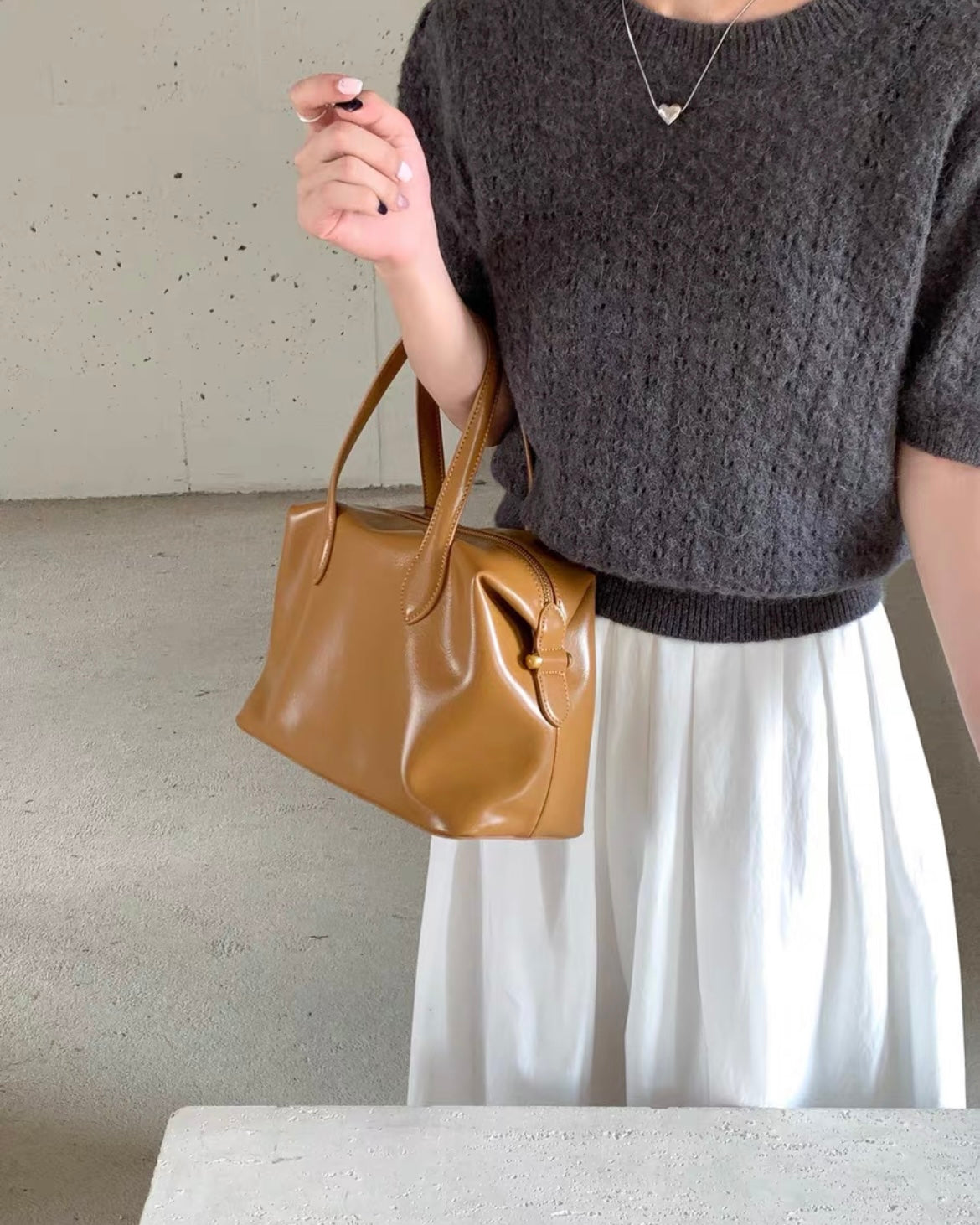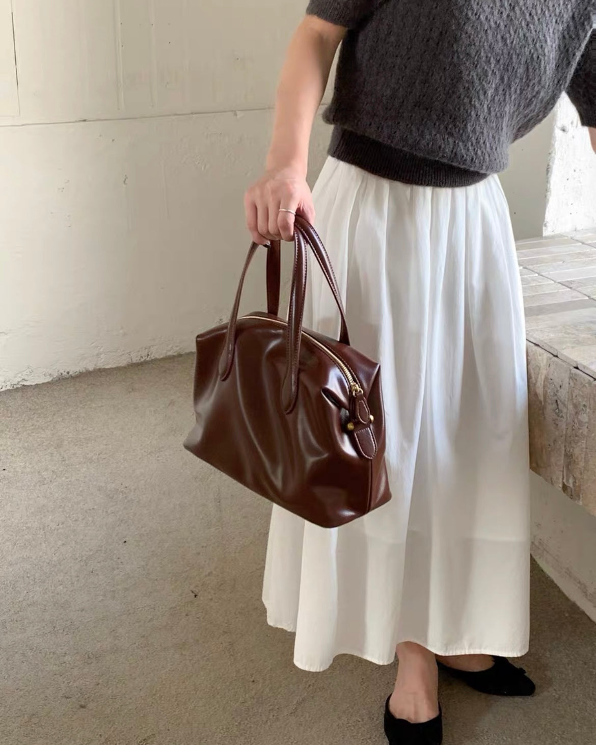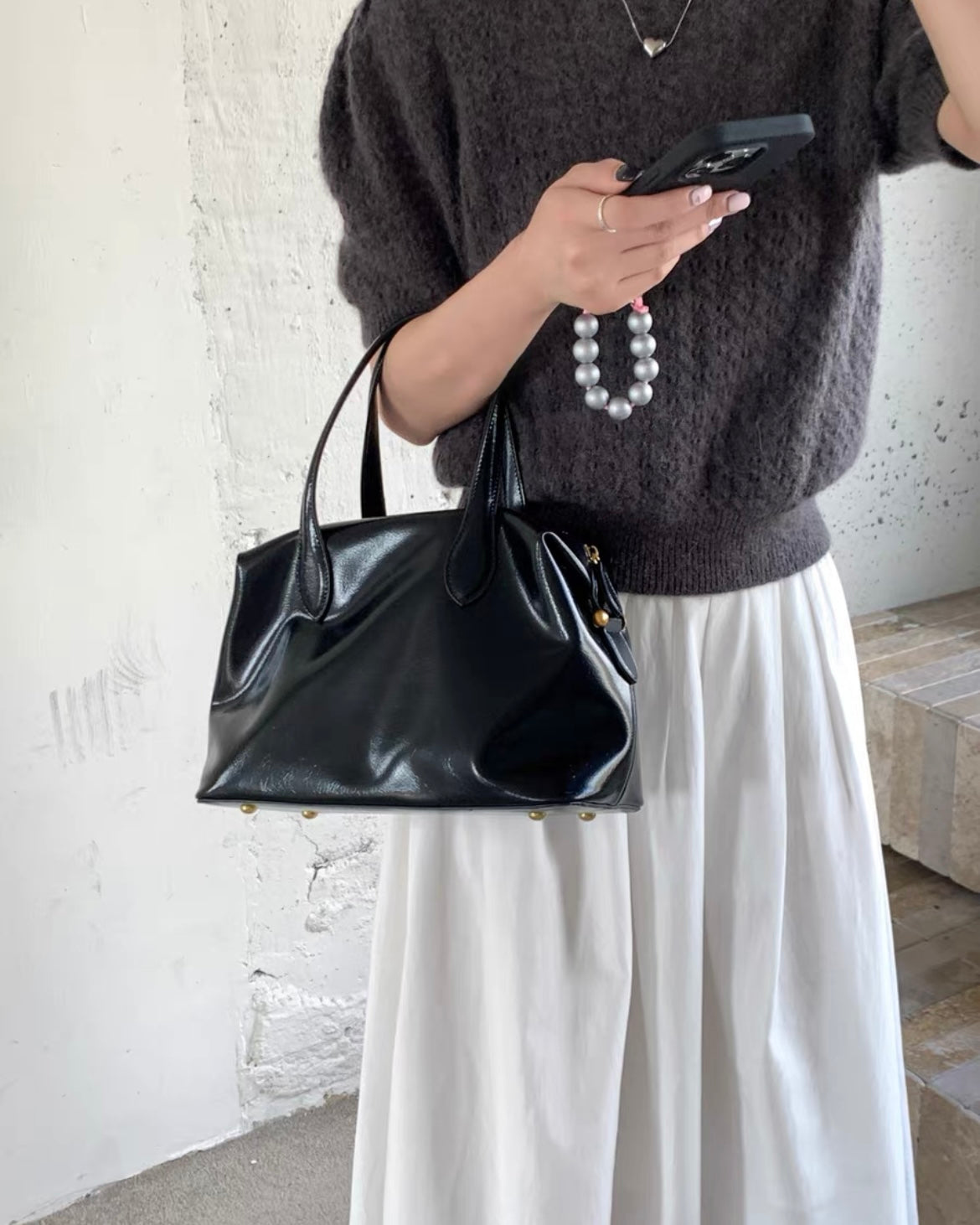 若干光沢のある硬すぎないレザーを使用しているので使い勝手も良く、収納しやすいのも嬉しいポイント◯