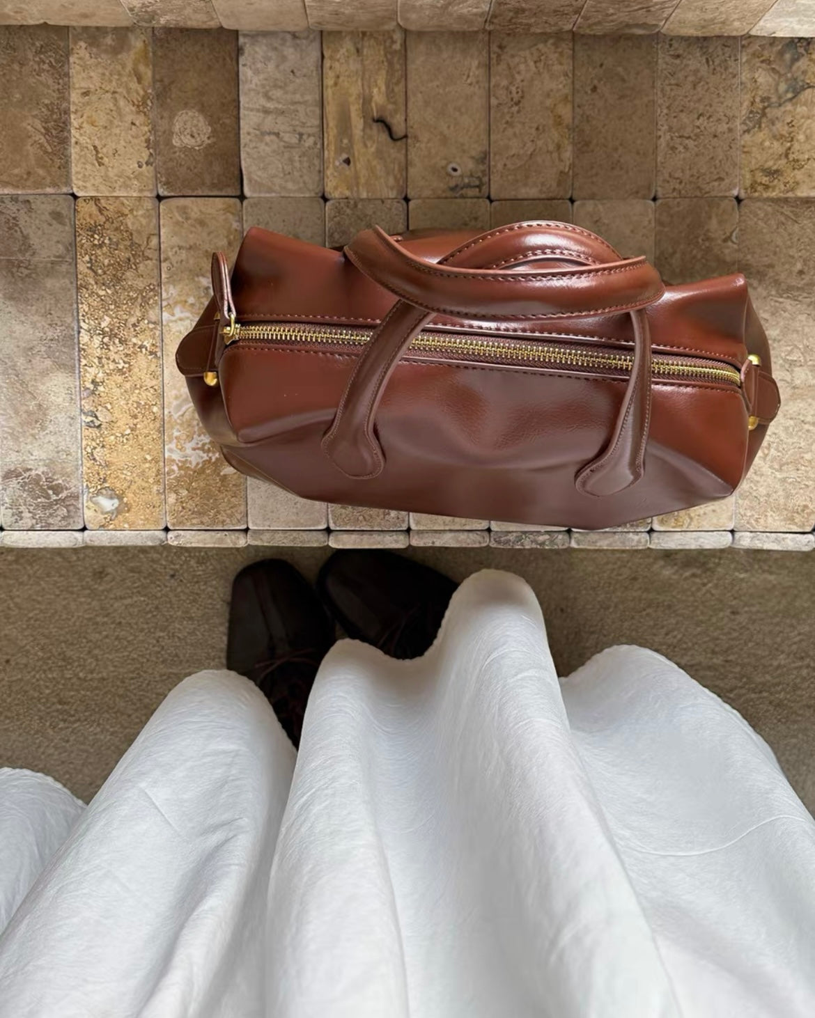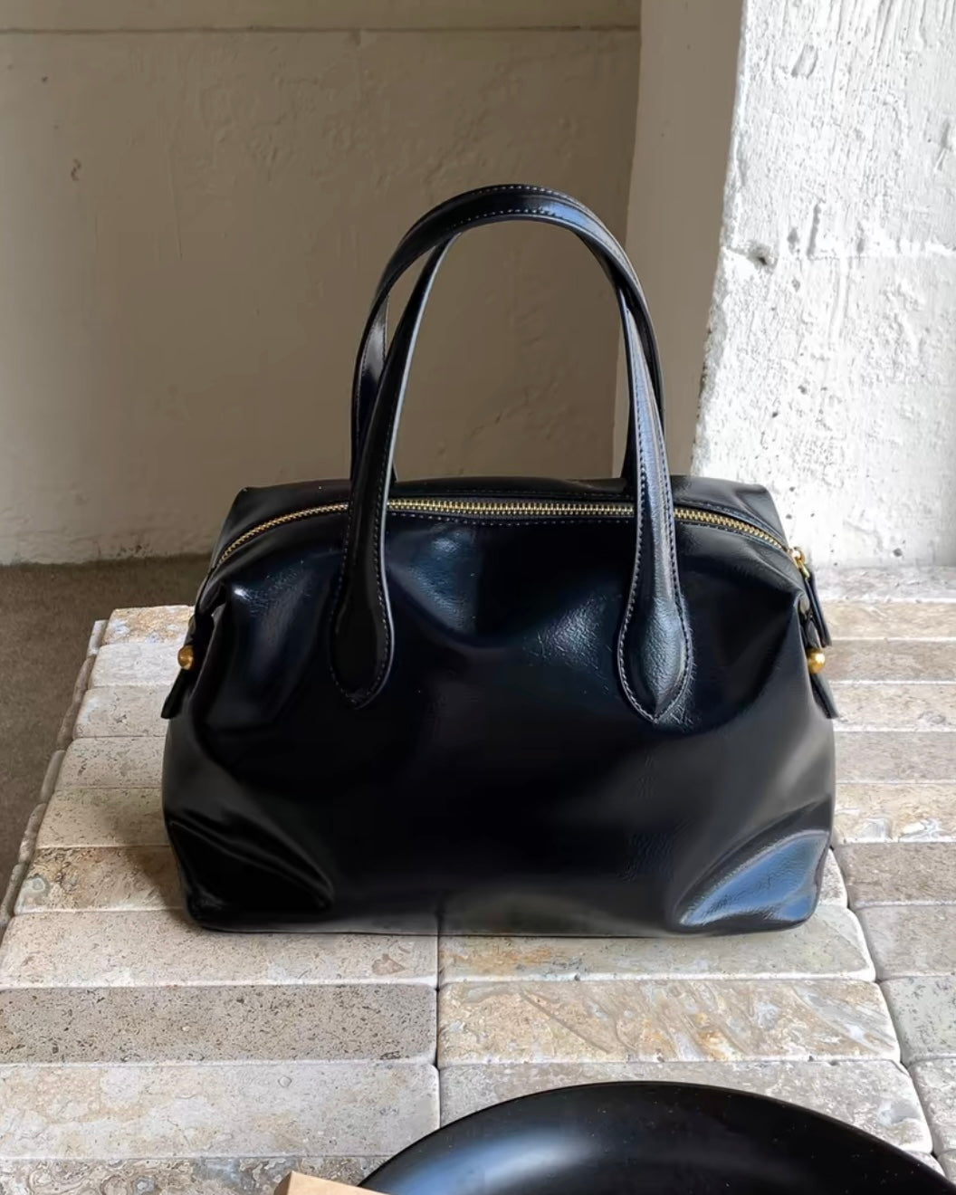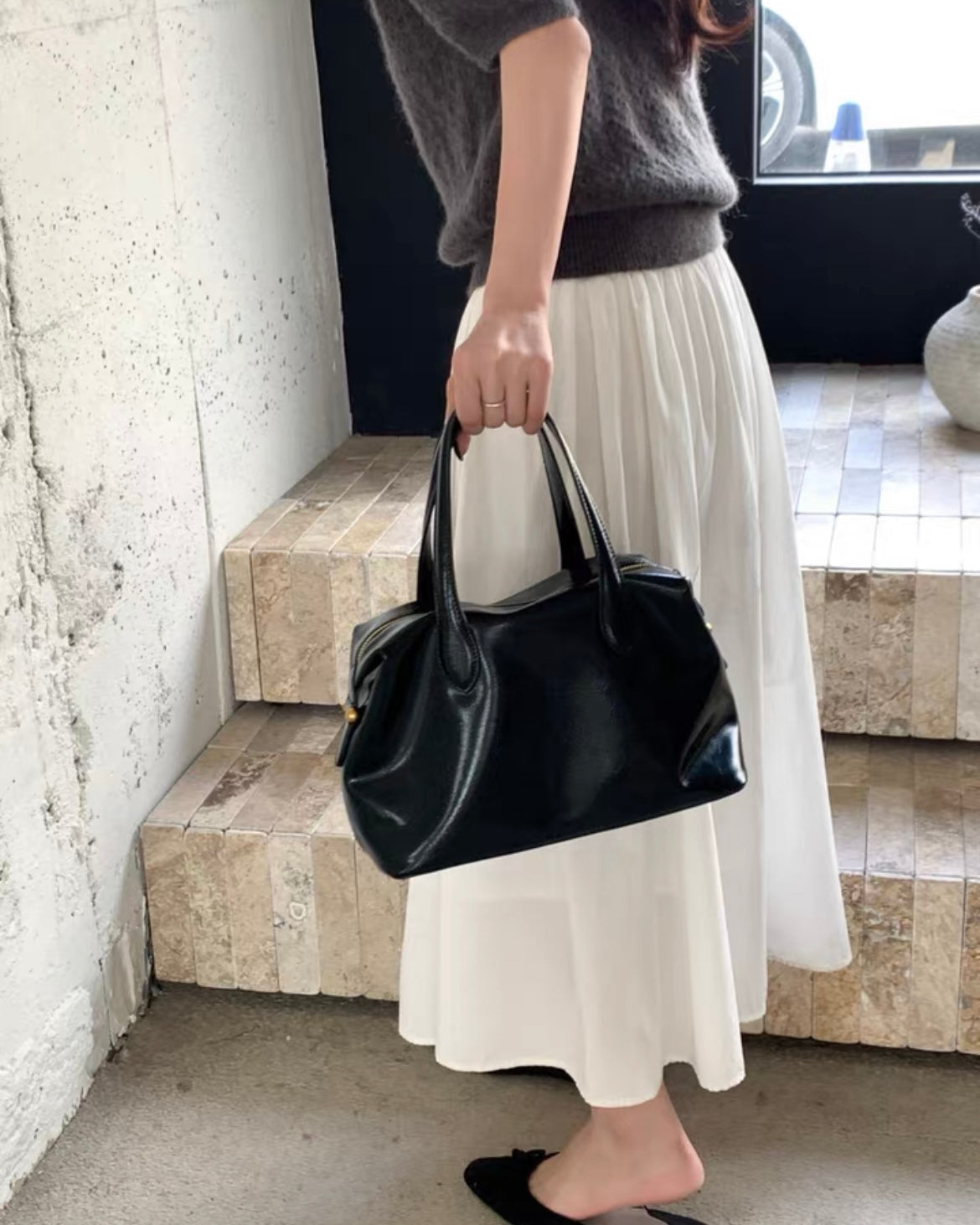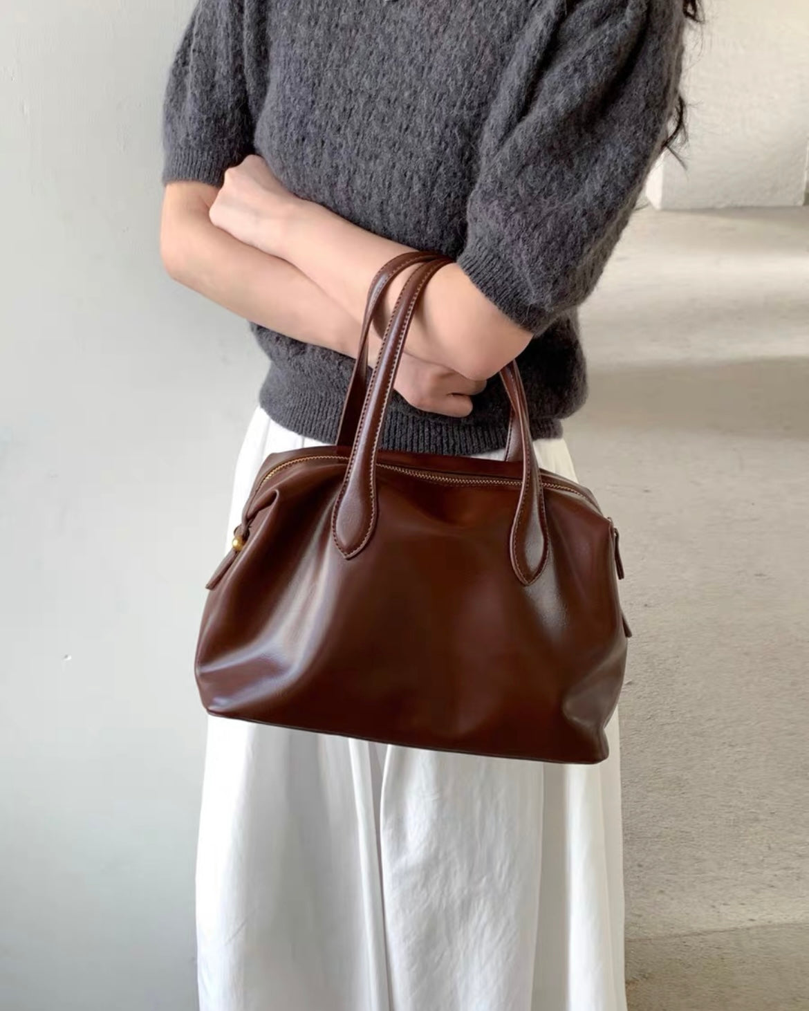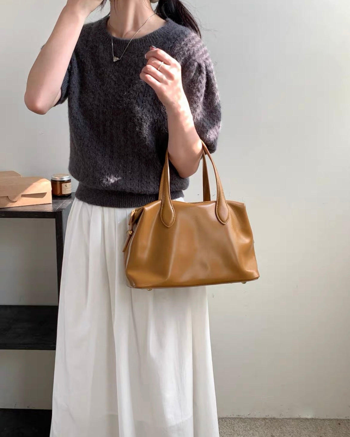 若干光沢のある硬すぎないレザーを使用しているので使い勝手も良く、収納しやすいのも嬉しいポイント◯