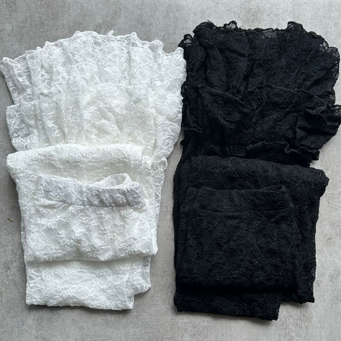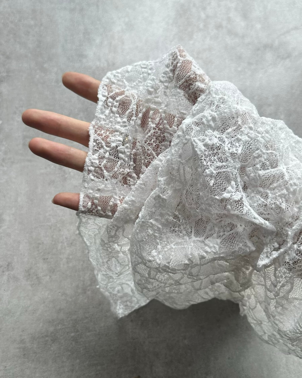 裾に向かって適度に広がる形がバランスよく、透け感あるレース素材が可憐に演出します。