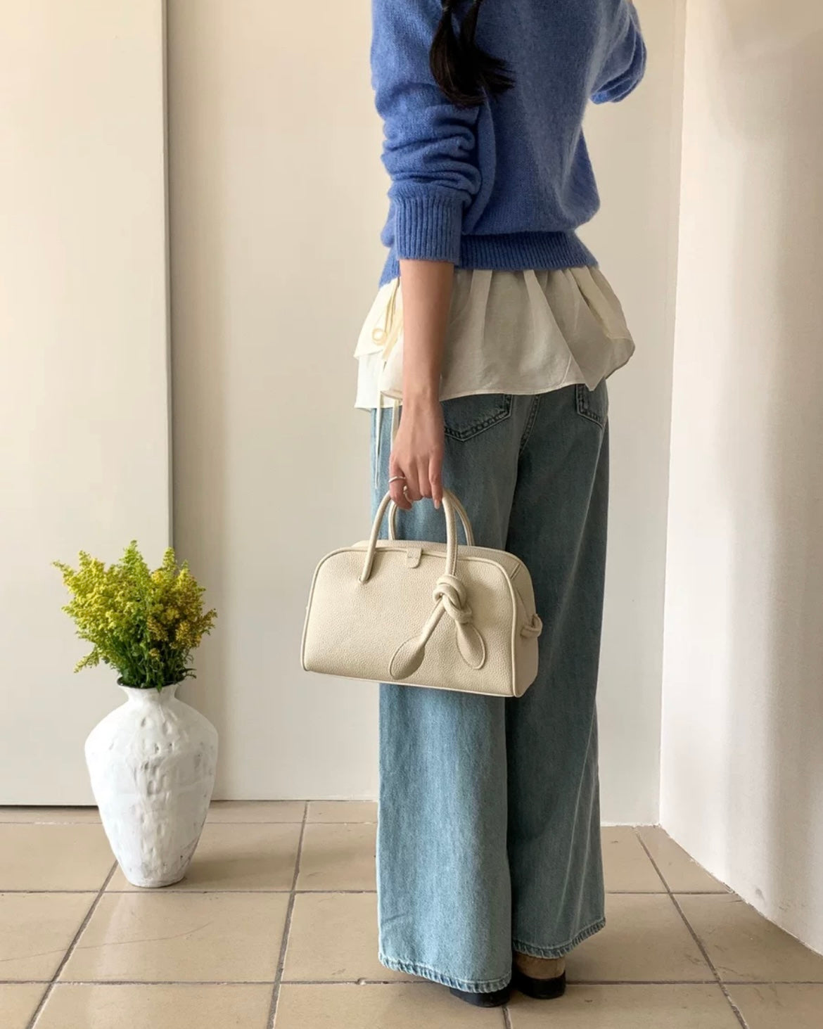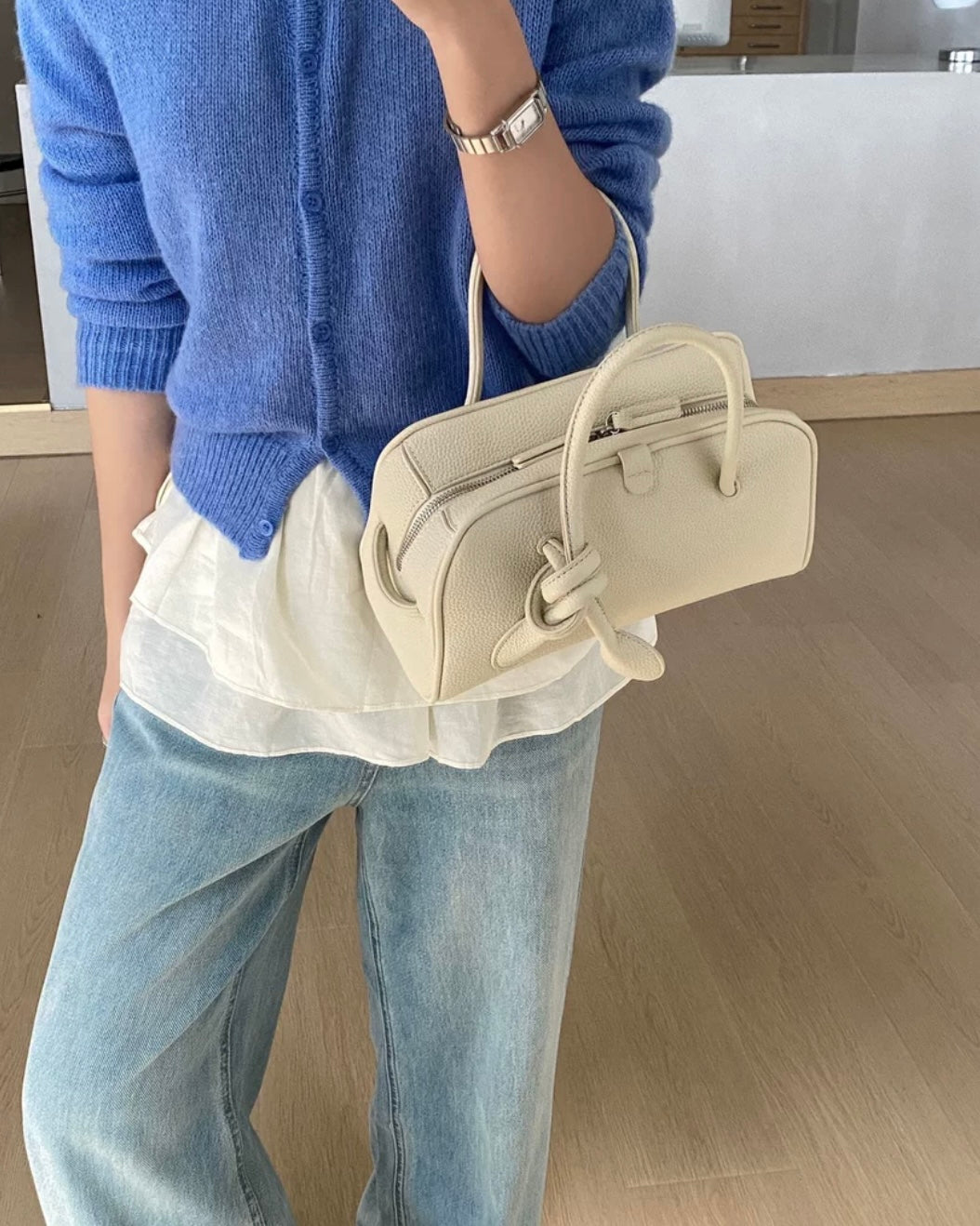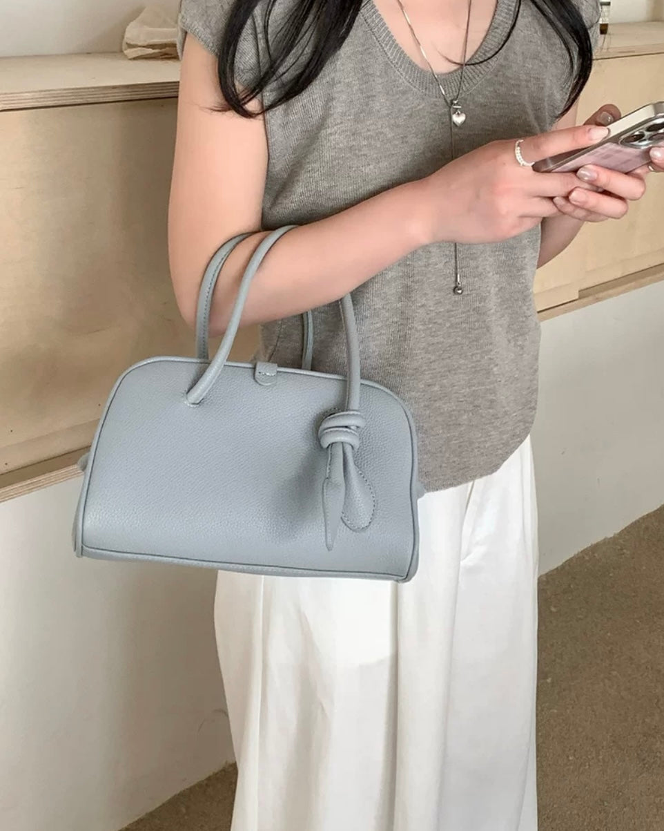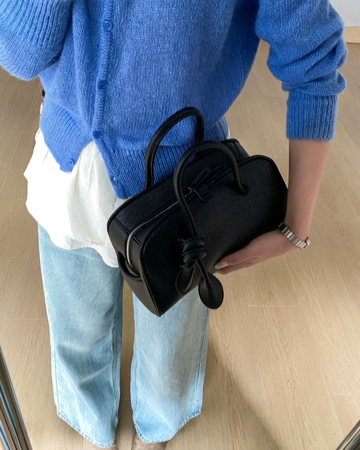 ワンカラーのデザイン性あるバッグ。一癖あるハンドルデザインは今っぽい韓国スタイルに。