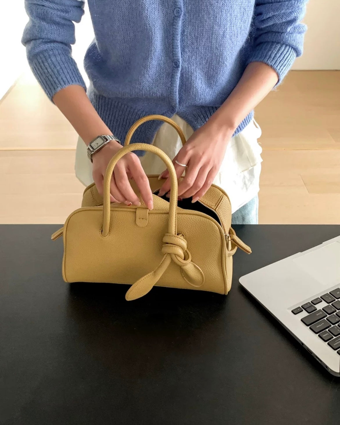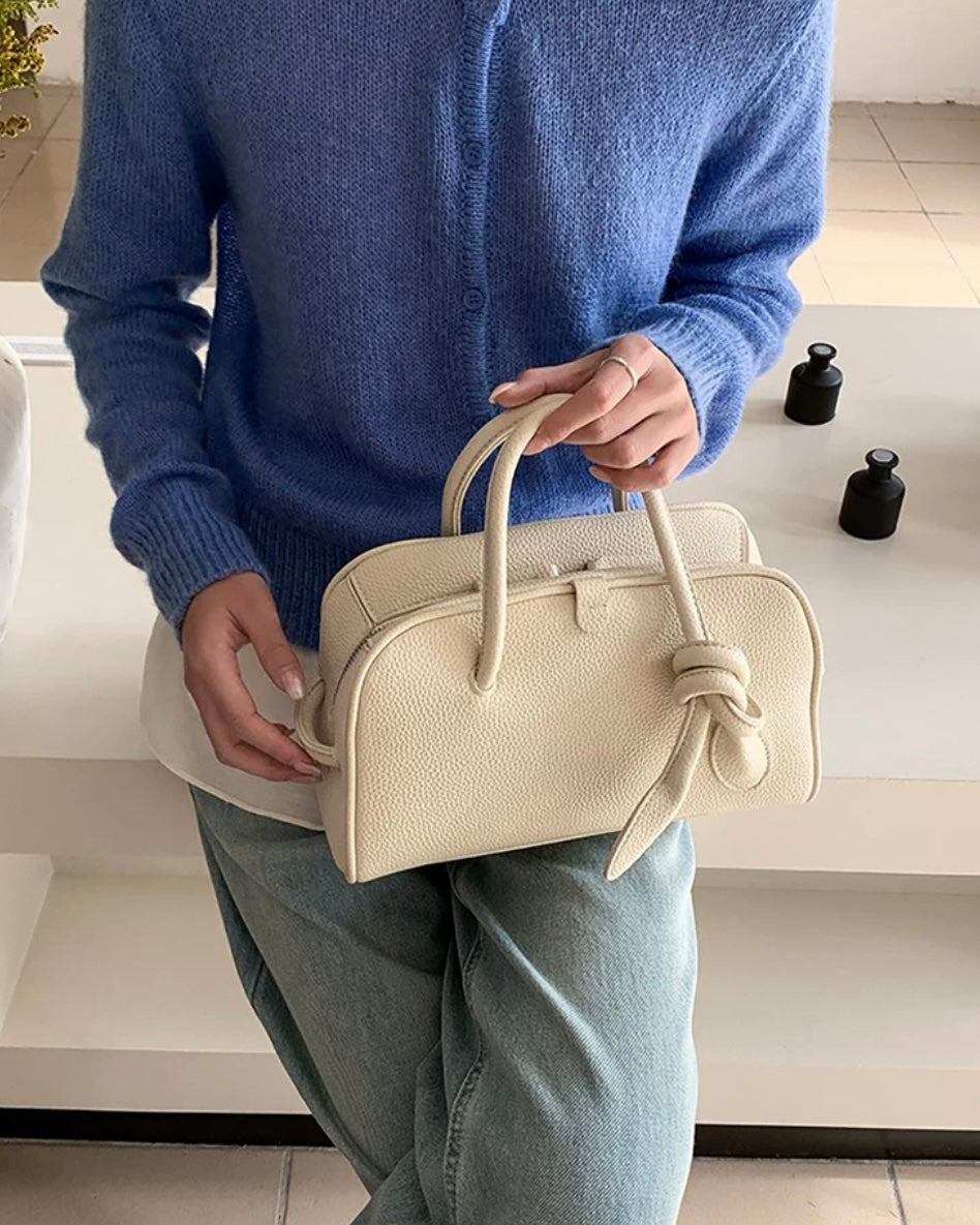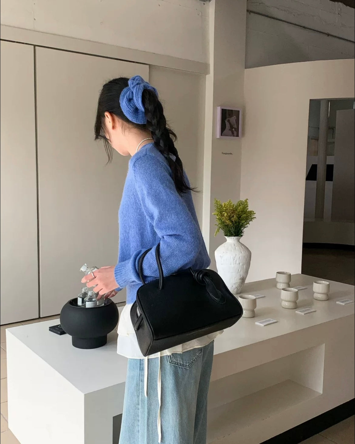 ワンカラーのデザイン性あるバッグ。一癖あるハンドルデザインは今っぽい韓国スタイルに。
