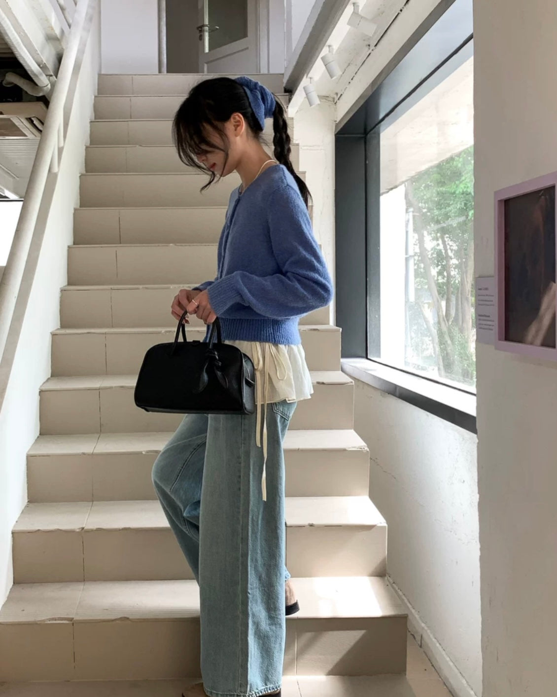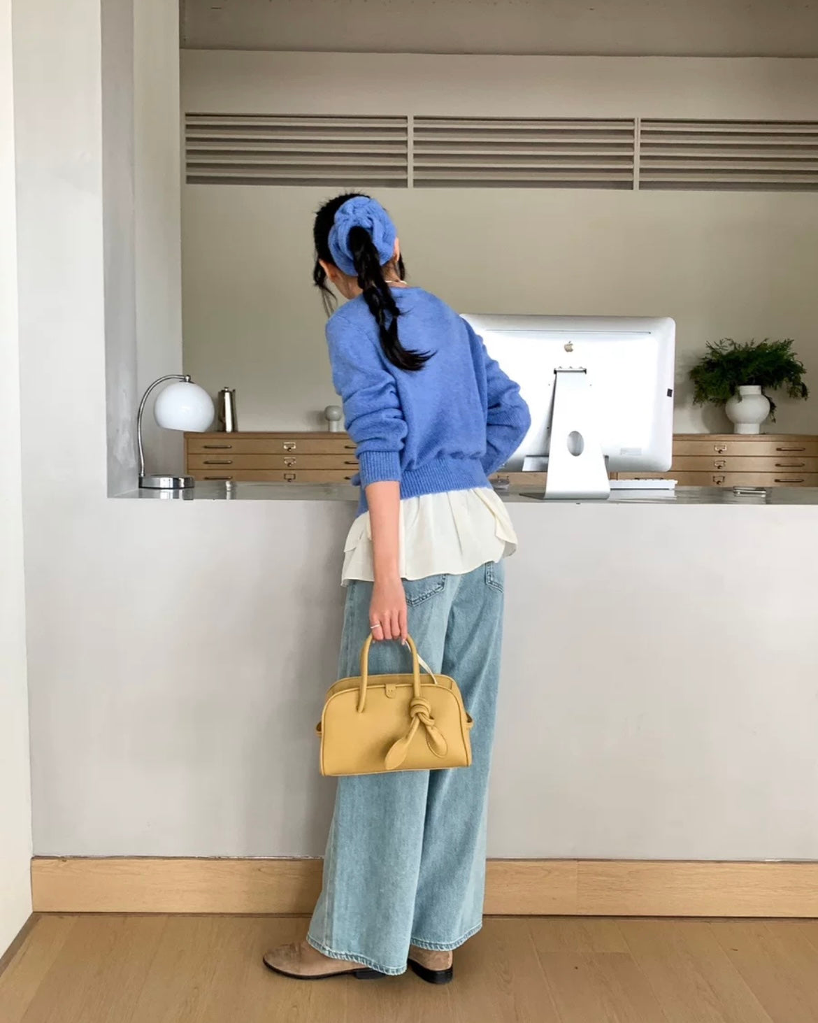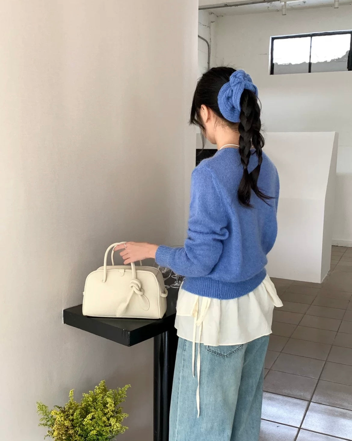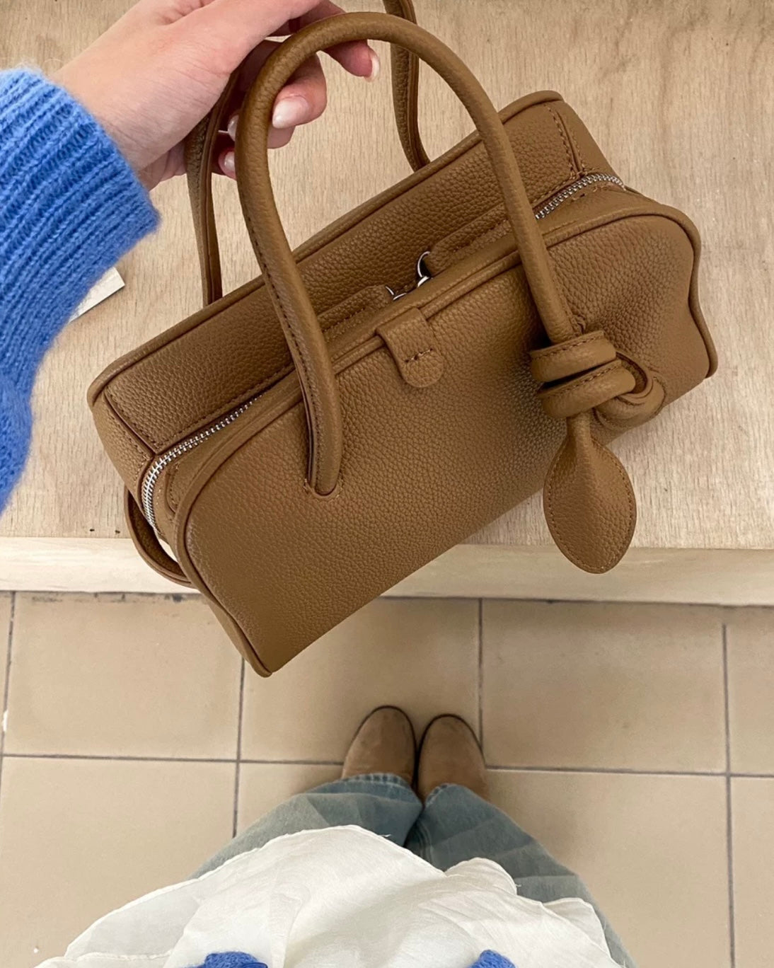 ワンカラーのデザイン性あるバッグ。一癖あるハンドルデザインは今っぽい韓国スタイルに。