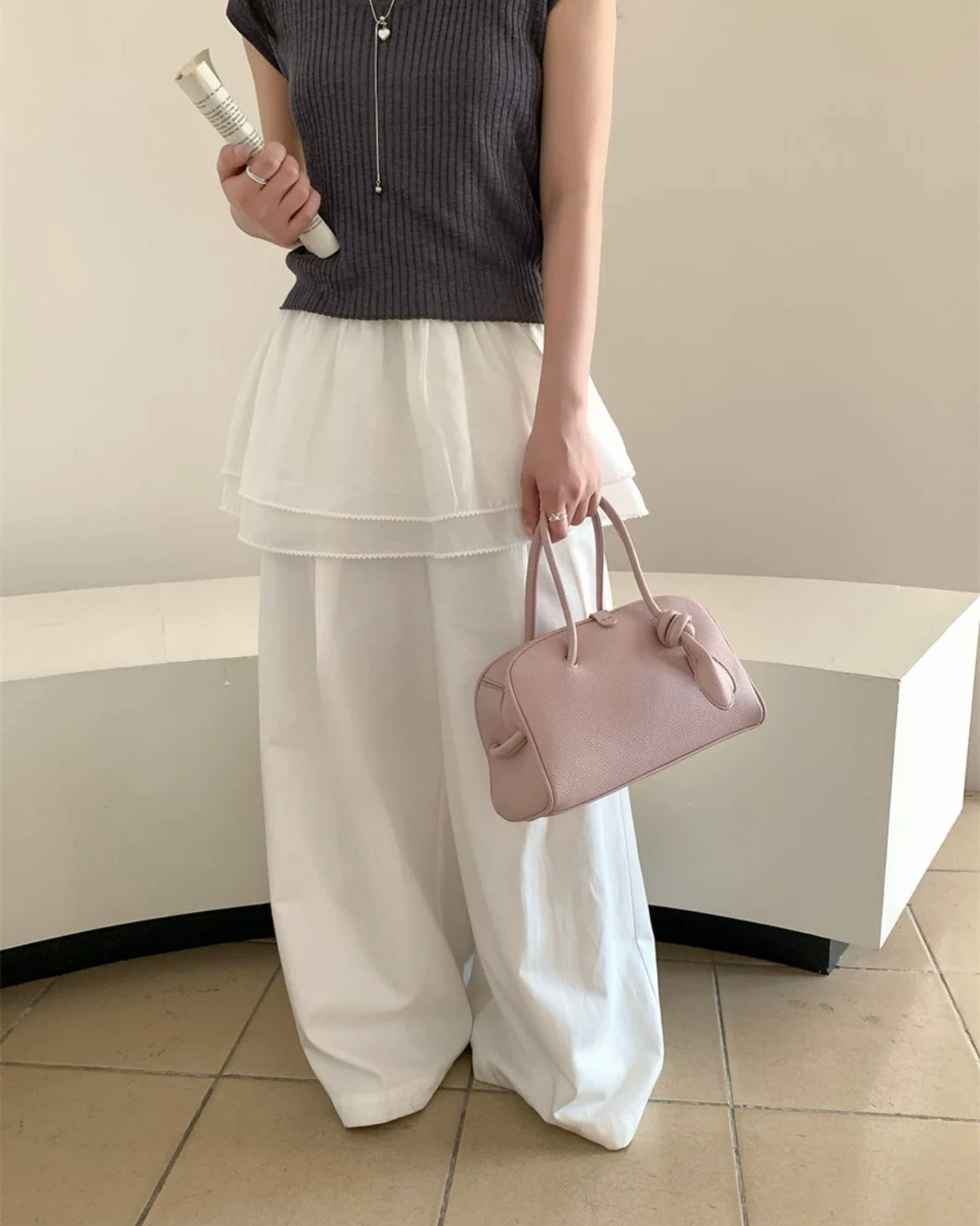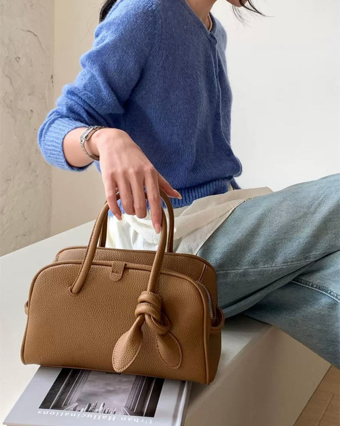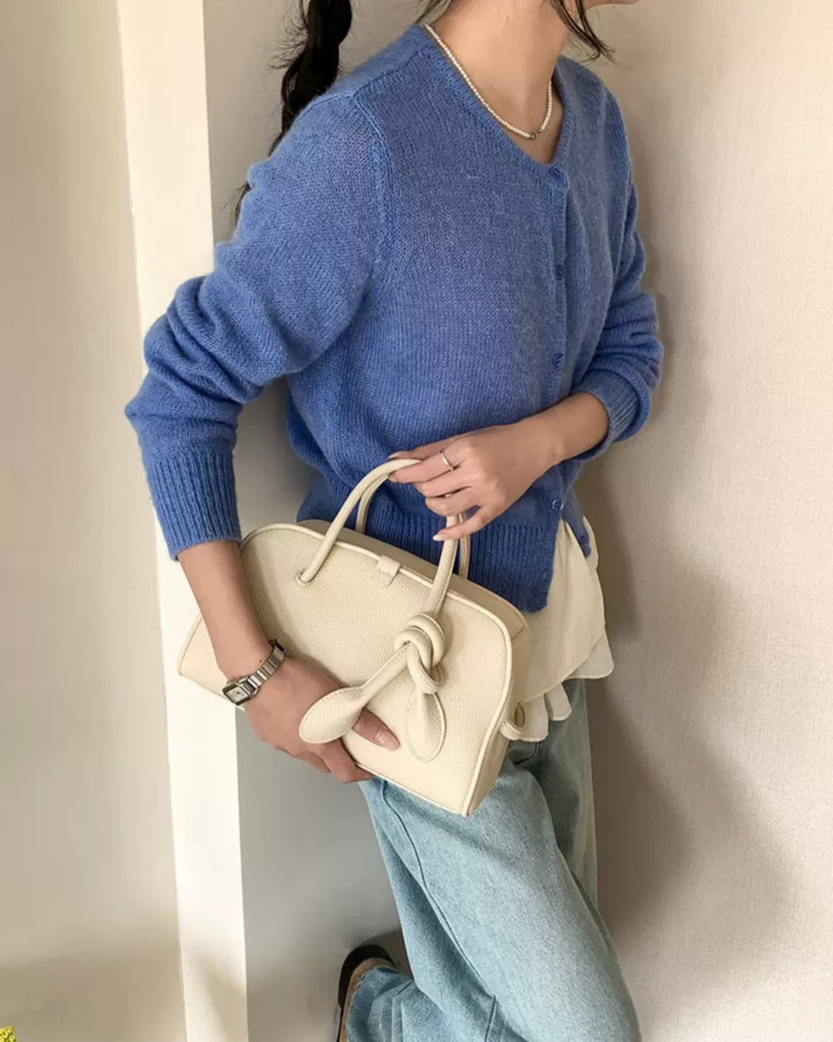 若干くすみのある色味展開が可愛らしい大人のカラーバッグ。シンプルになりすぎない絶妙デザインがスタイリングを完成させます。