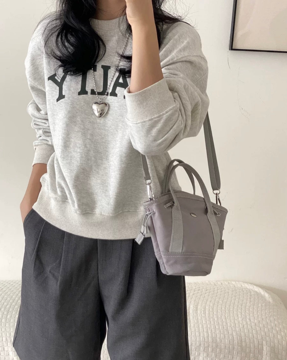 小さめのサイズ感と、柔らかく軽い質感なので斜めがけでも邪魔になりにくいアイテム。