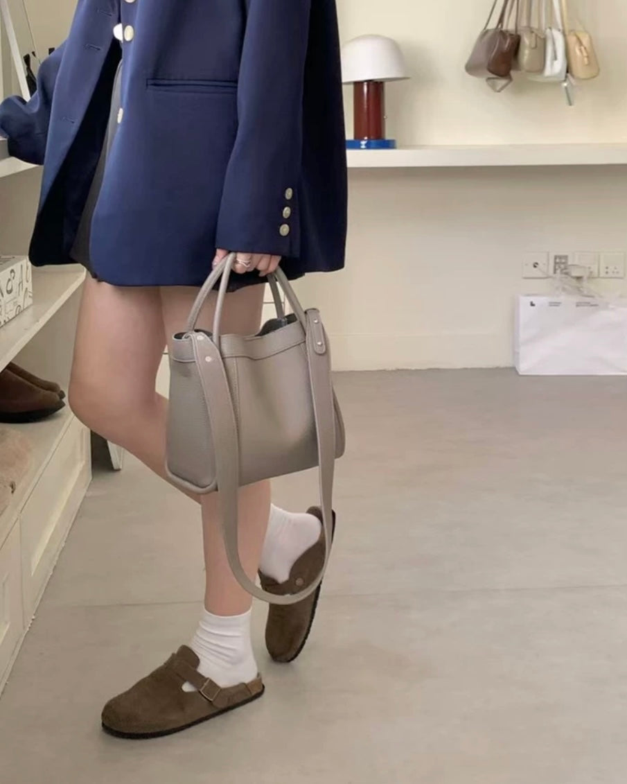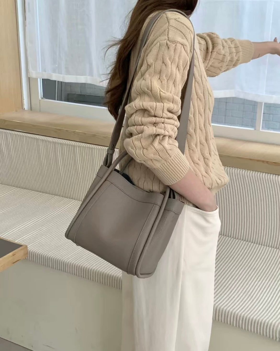 ワンカラーのシンプルなデザインと、大きすぎず小さすぎないサイズ感なので様々なスタイリングに合わせやすく、斜めがけでも邪魔になりません。