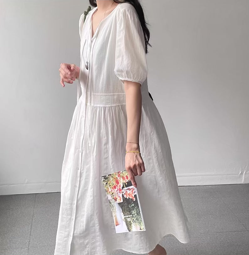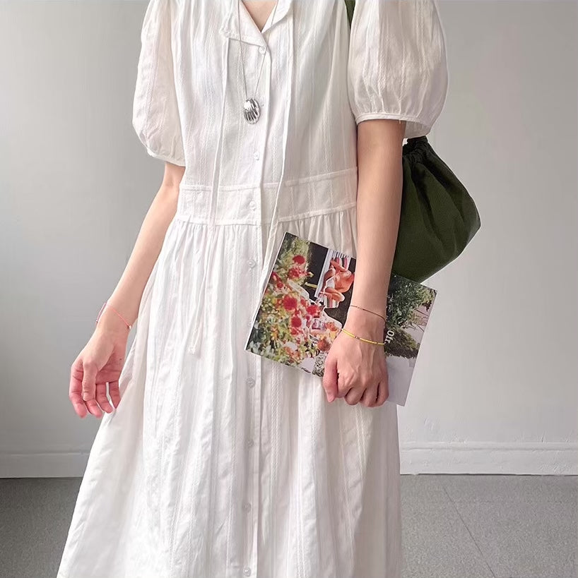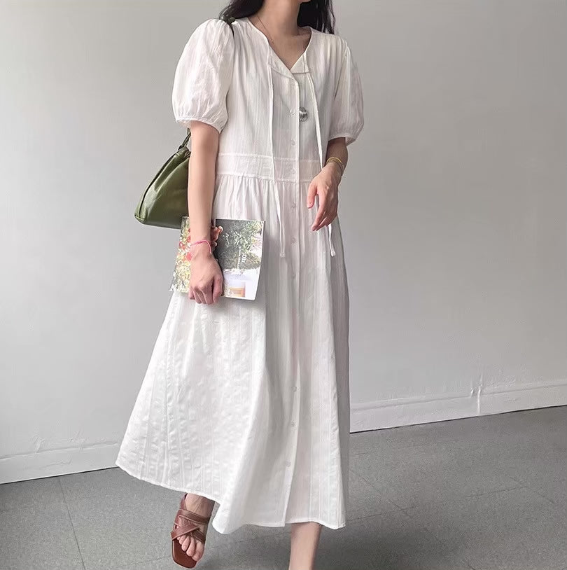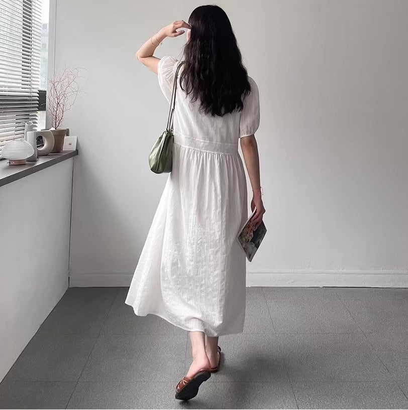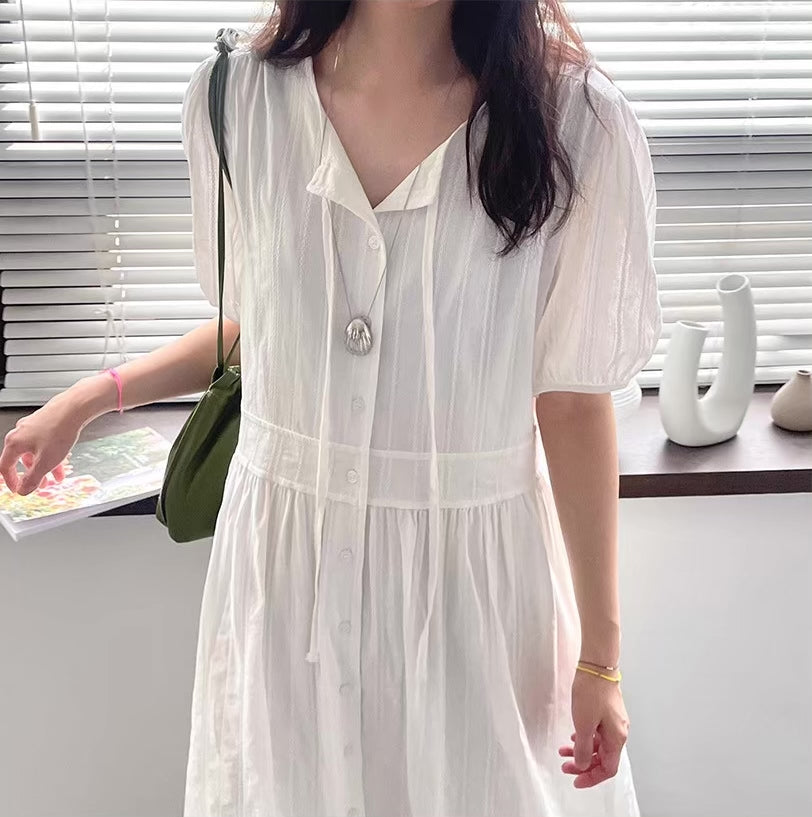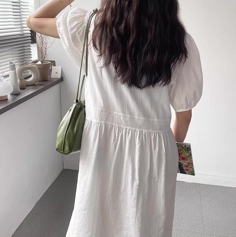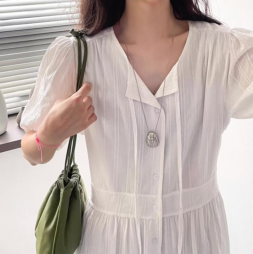 ドビー素材を使用した爽やかな雰囲気のワンピース。
