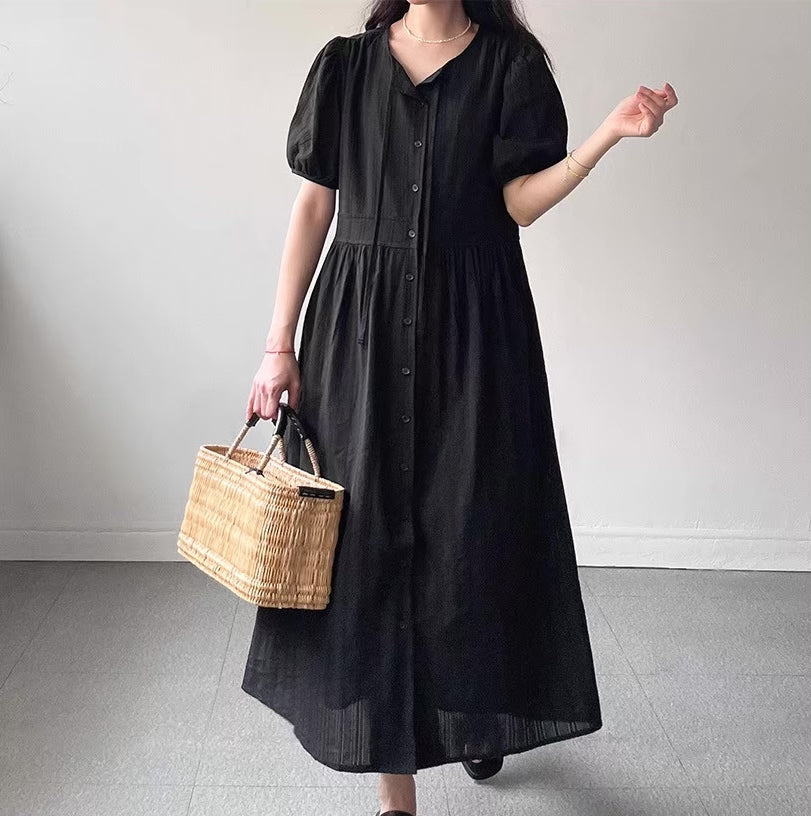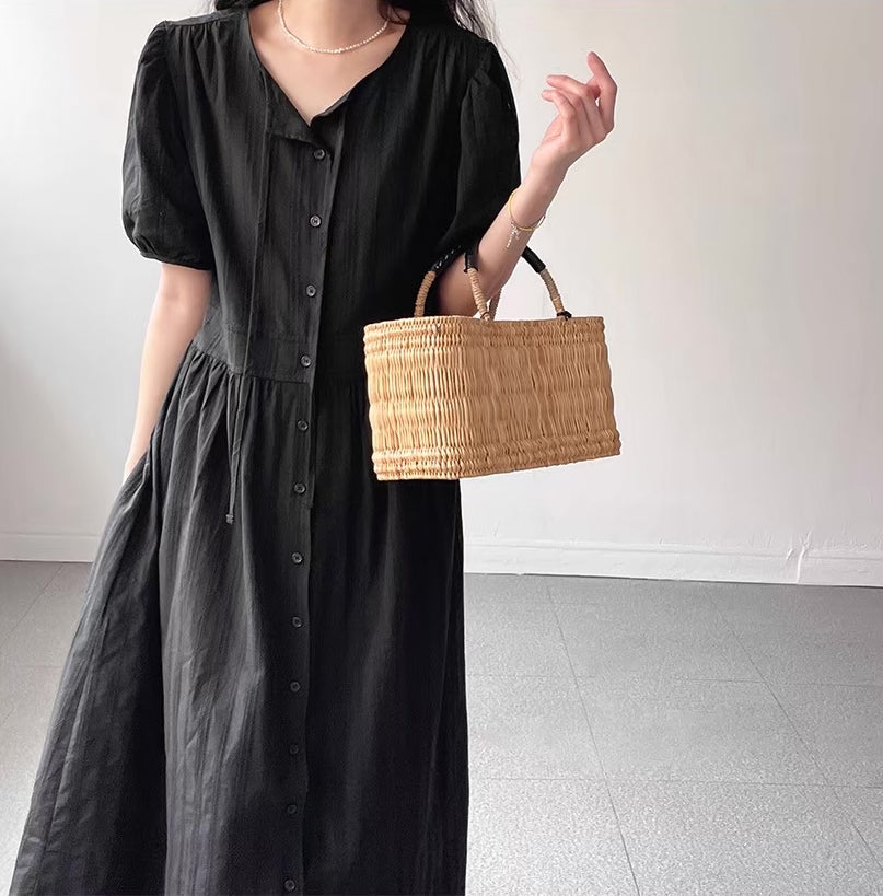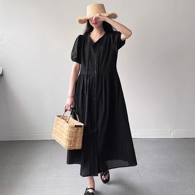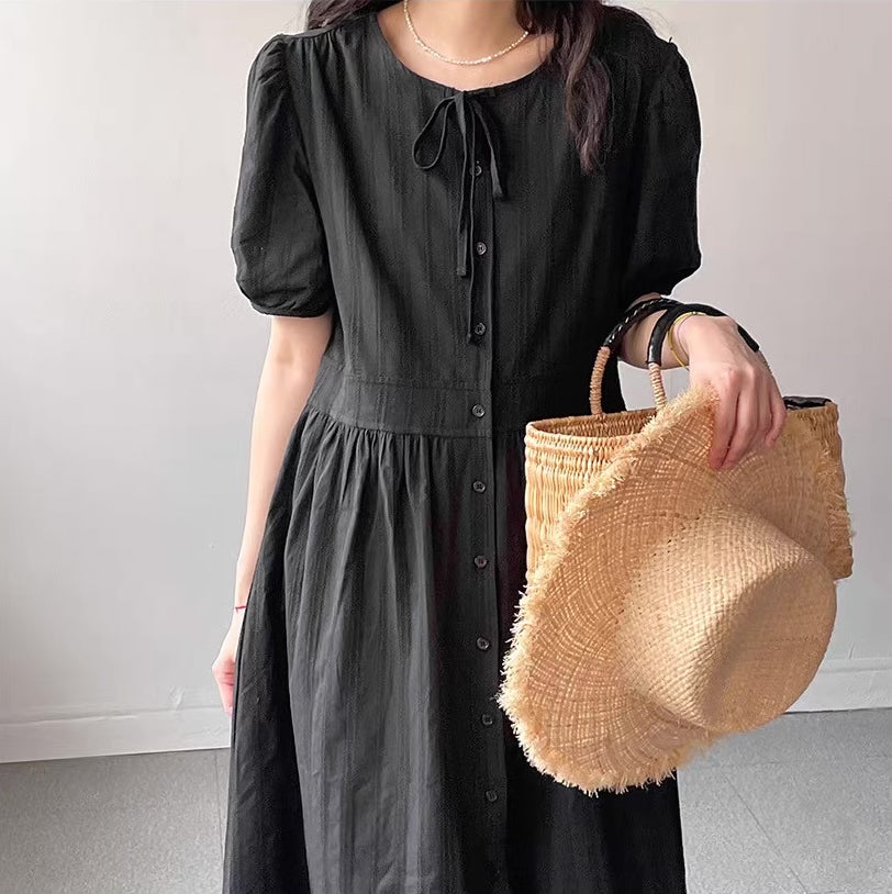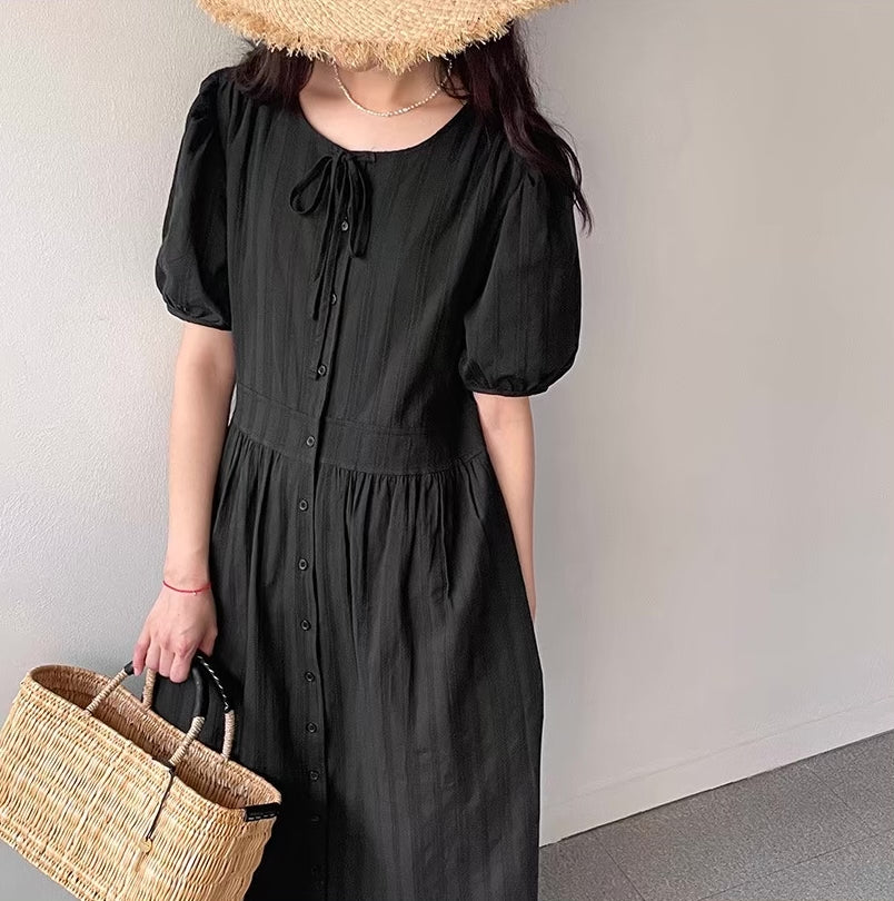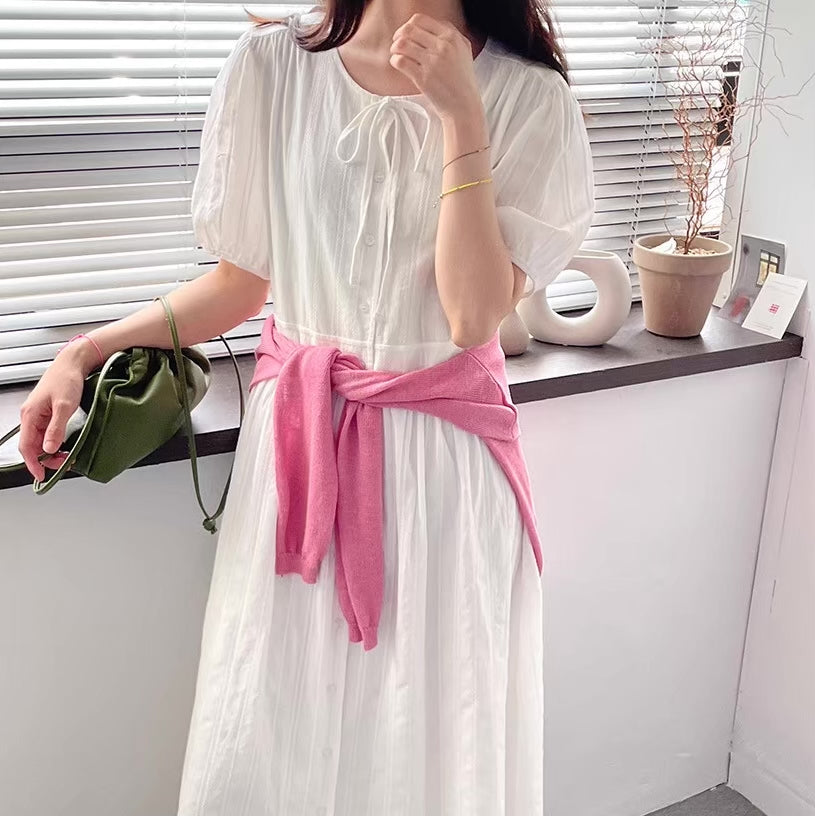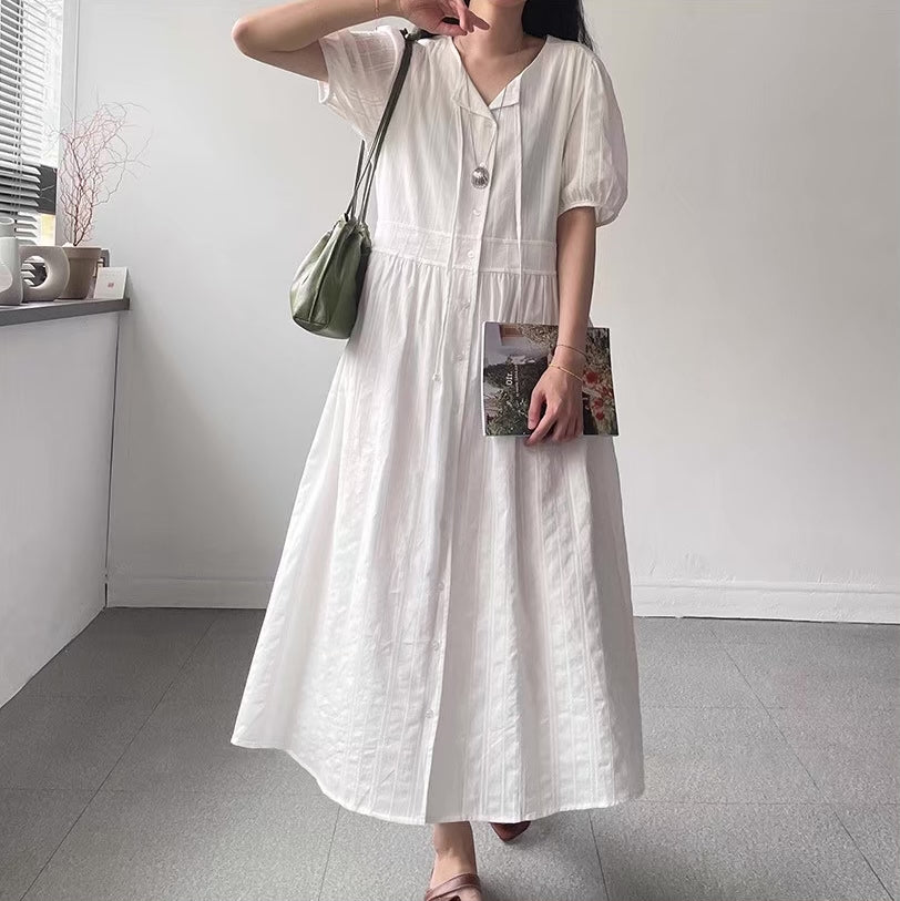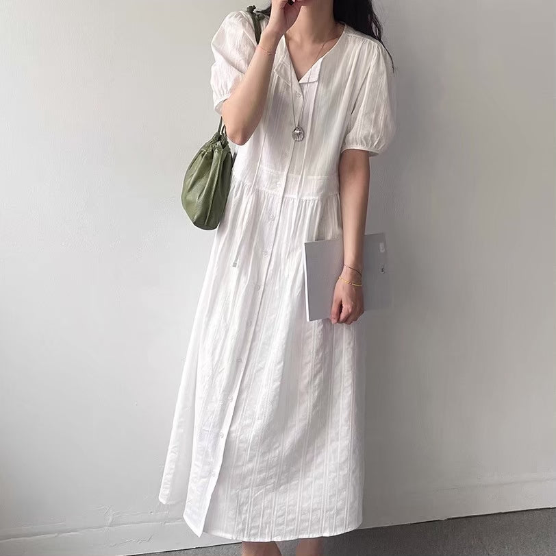 ドビー素材を使用した爽やかな雰囲気のワンピース。
