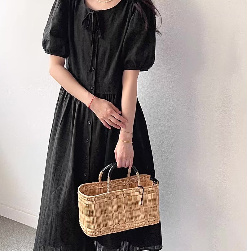 ネックのリボンを結んでも垂らしても違った雰囲気を楽しめます◎