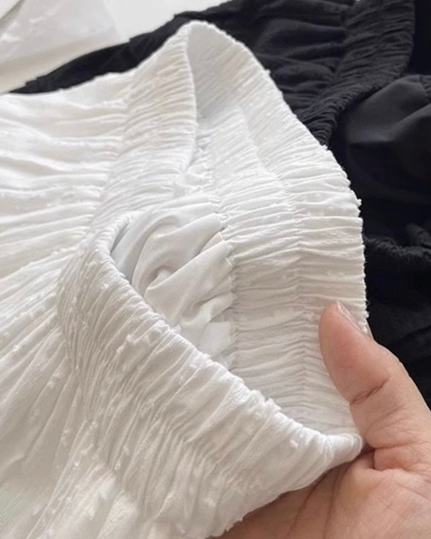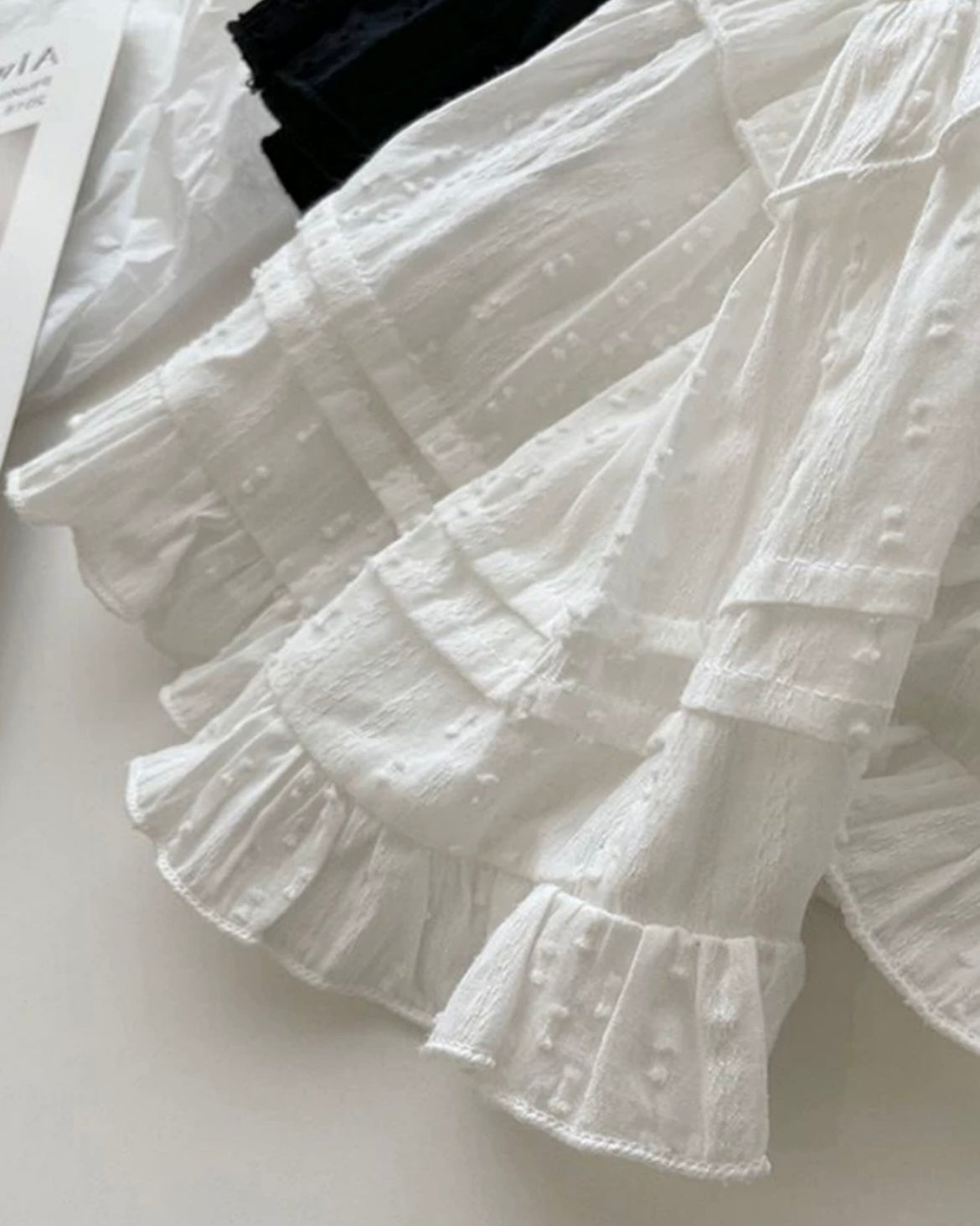 フリルデザインながらも綿ライクの生地感でカジュアルな印象も与えます。