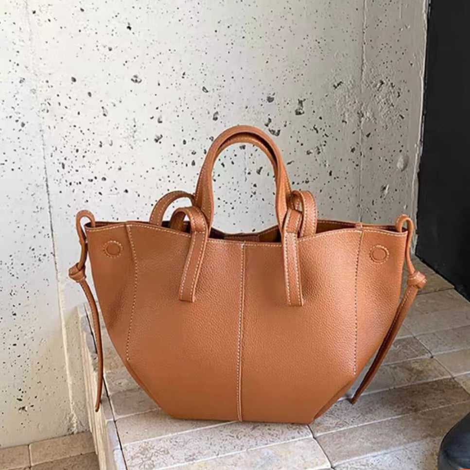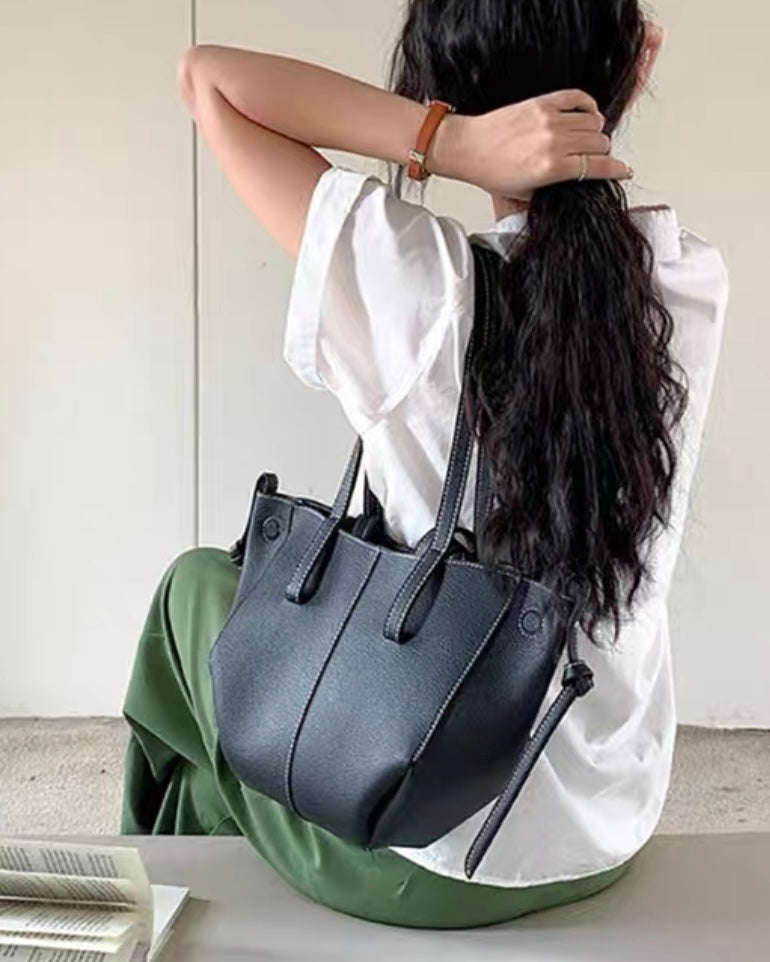 短いハンドルはハンドバッグに、長いハンドルは肩にかけやすい長さになっており使い分が楽しめます。