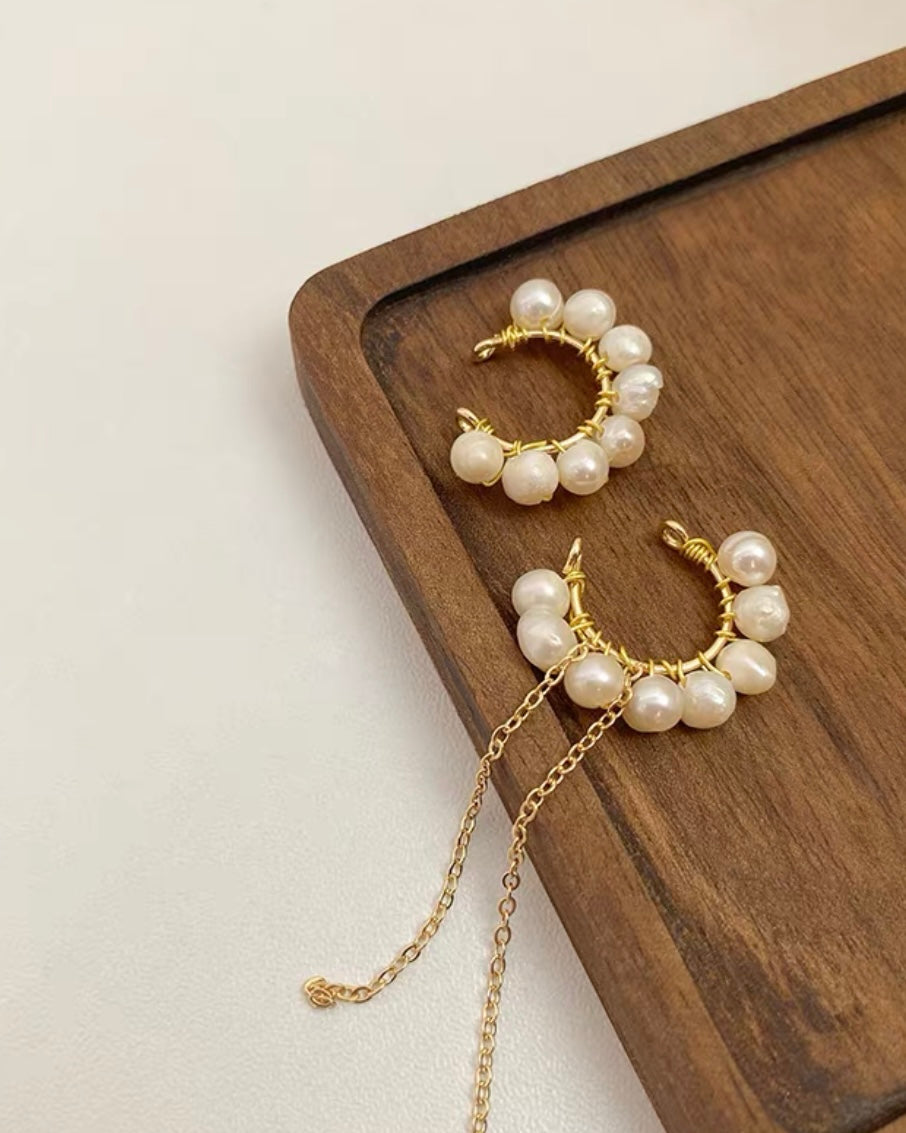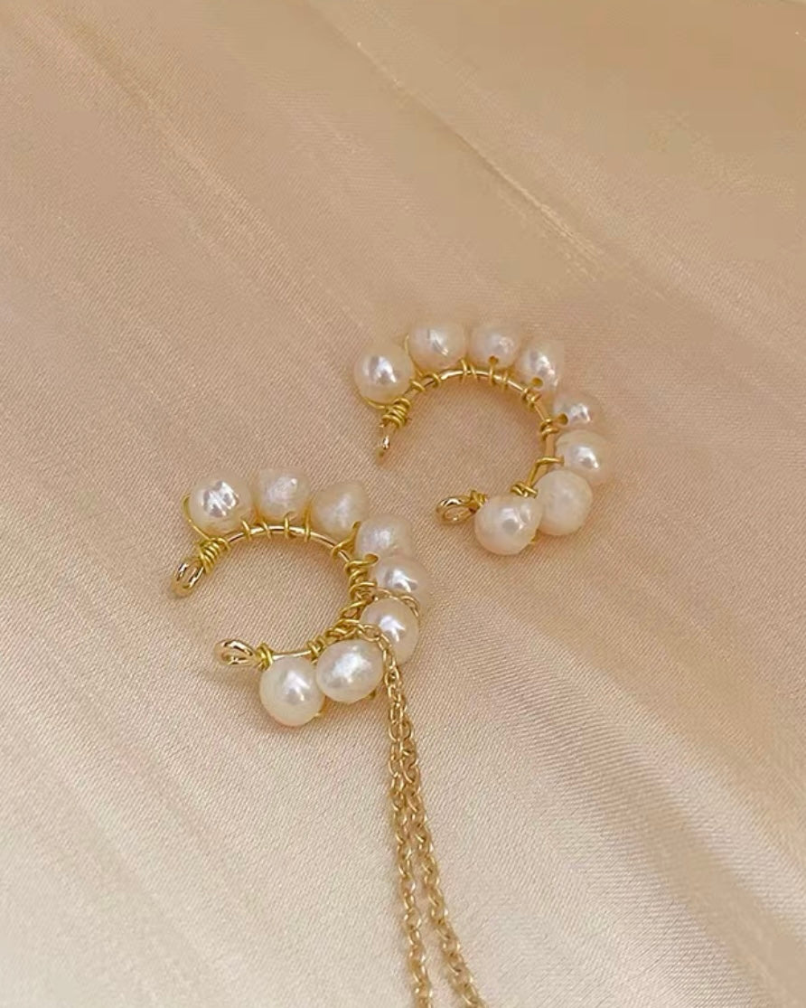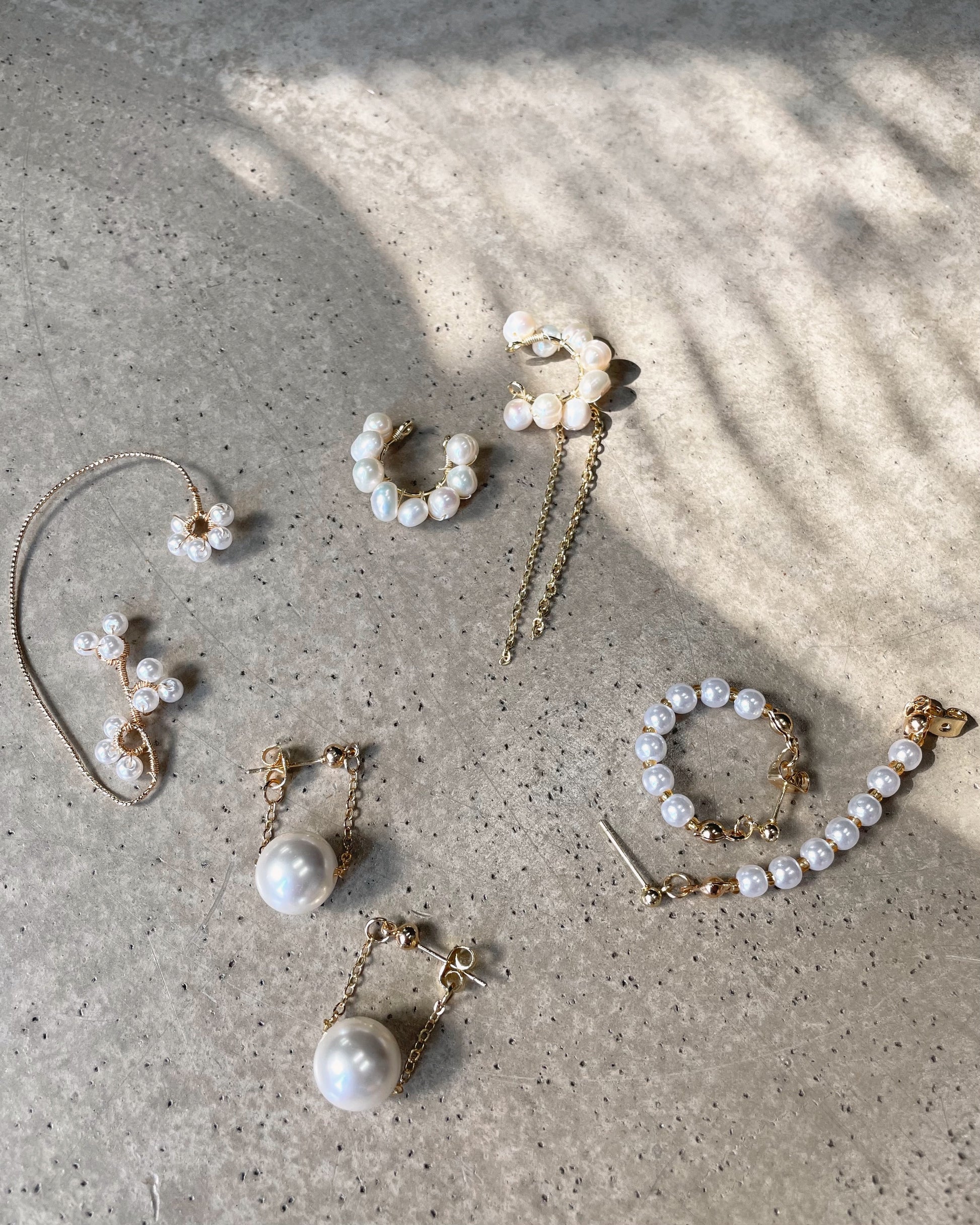 サイズ : 約6mmパール×8 (片耳チェーン5cm)