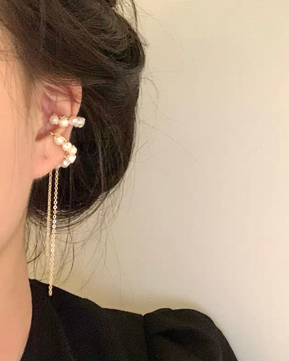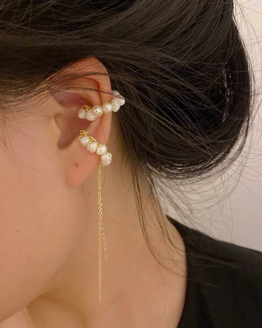 チェーン付きと無しの異なるデザインのイヤーカフは左右の耳につけたり、片耳につけたり、片方使いしたりと様々な使い方が可能!