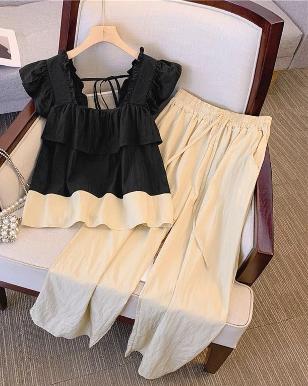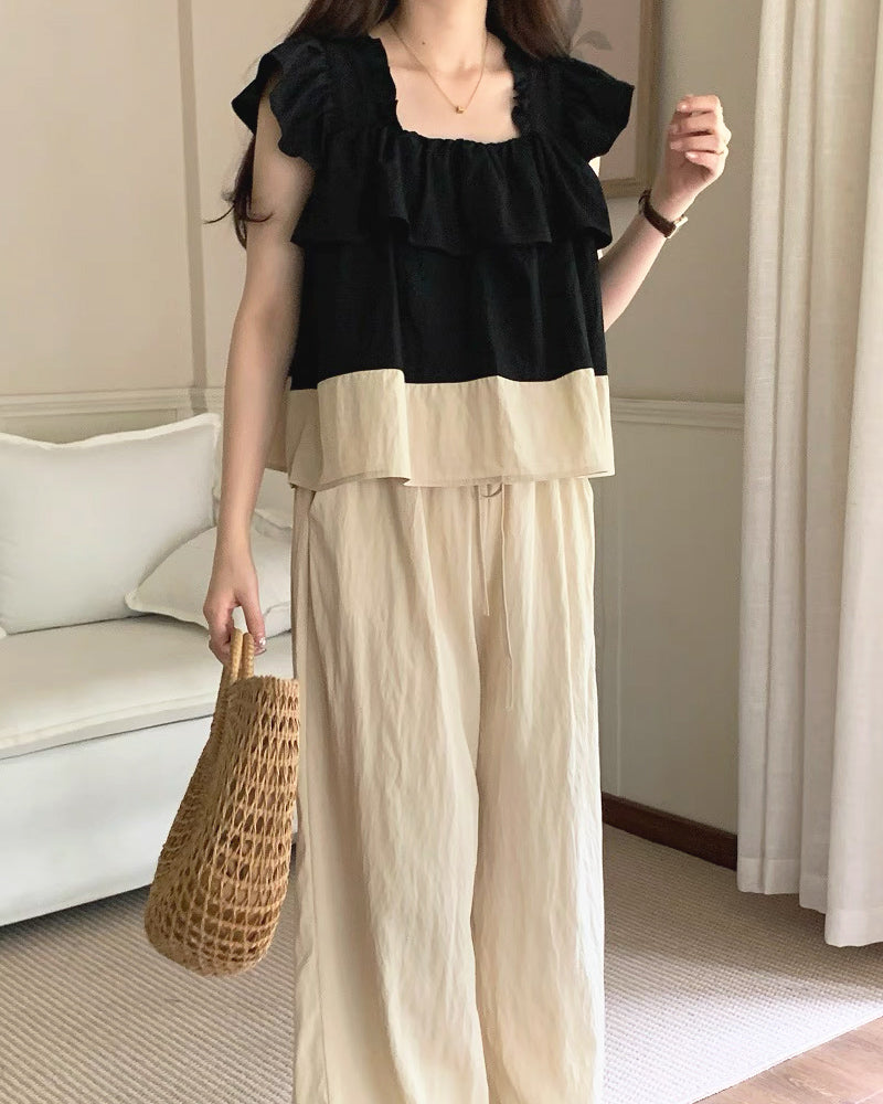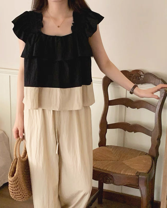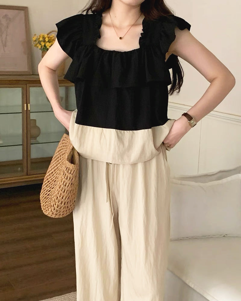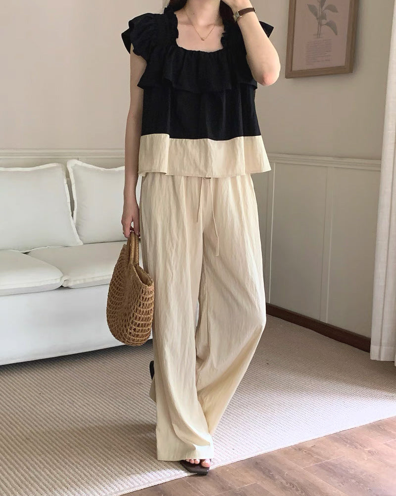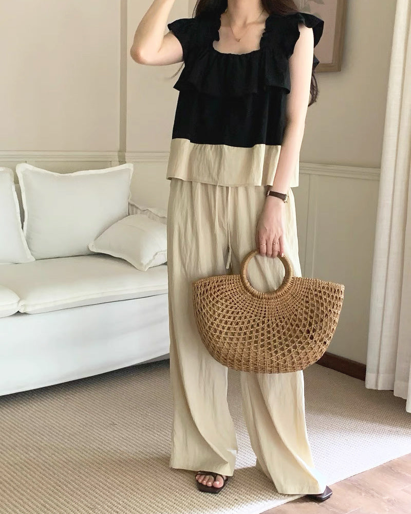 《SETアイテム》フリルトップスとパンツのセットアイテムです。