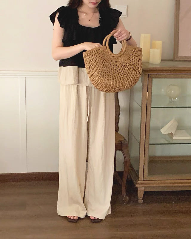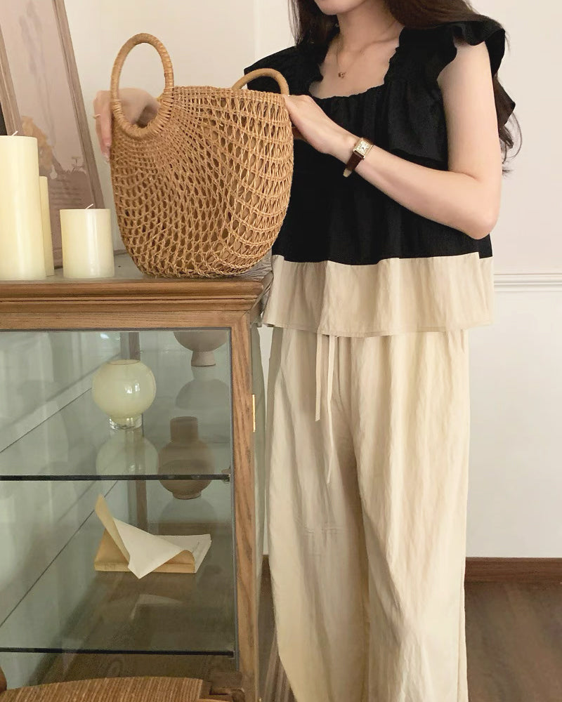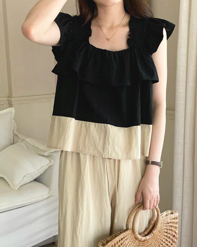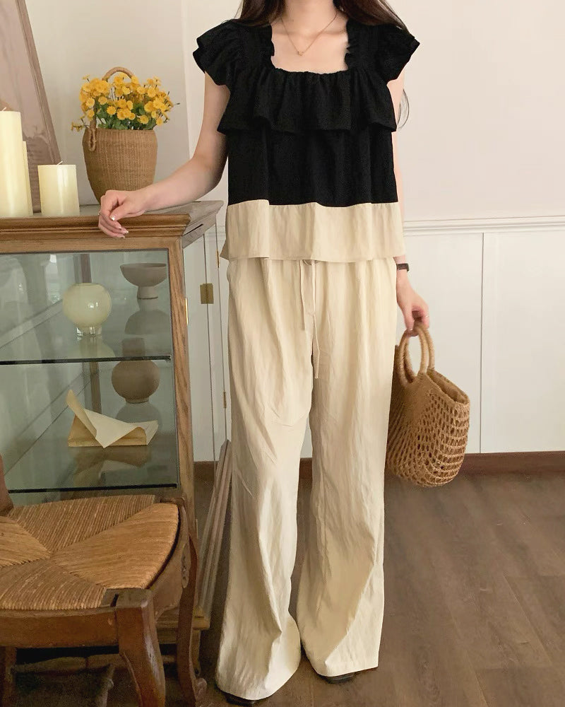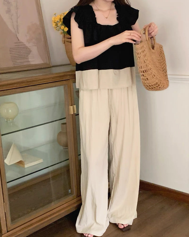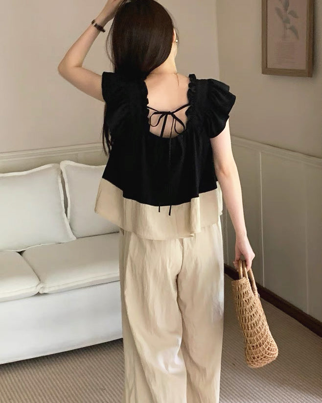 《SETアイテム》フリルトップスとパンツのセットアイテムです。