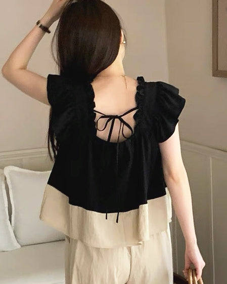 フリルトップスはトレンドのショート丈でボトムスとバランス良くスタイリングできます。