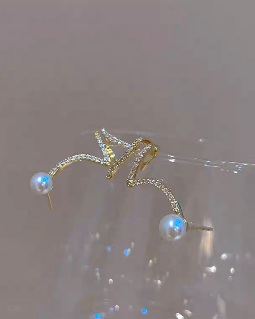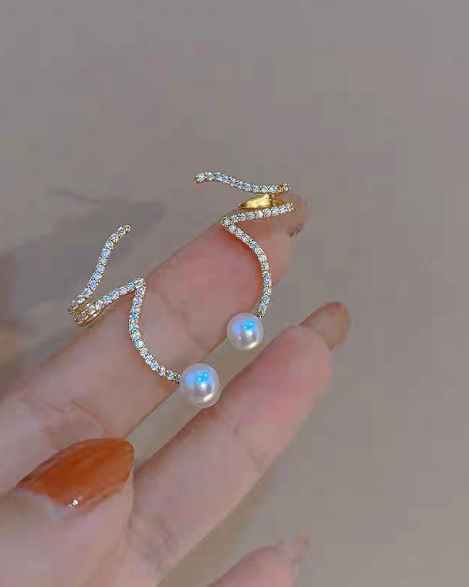 イヤーカフ部分のストーンがキラッと輝き存在感も出しつつ、ポイントパールが上品な印象に。