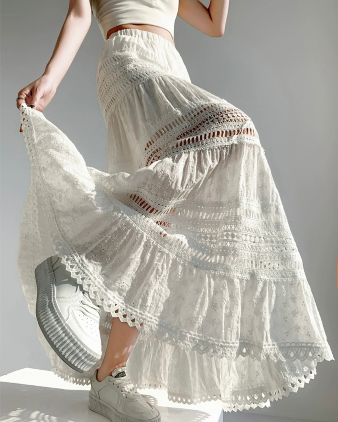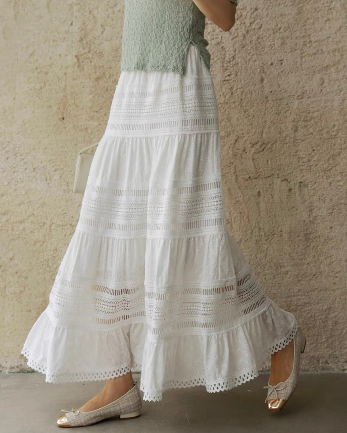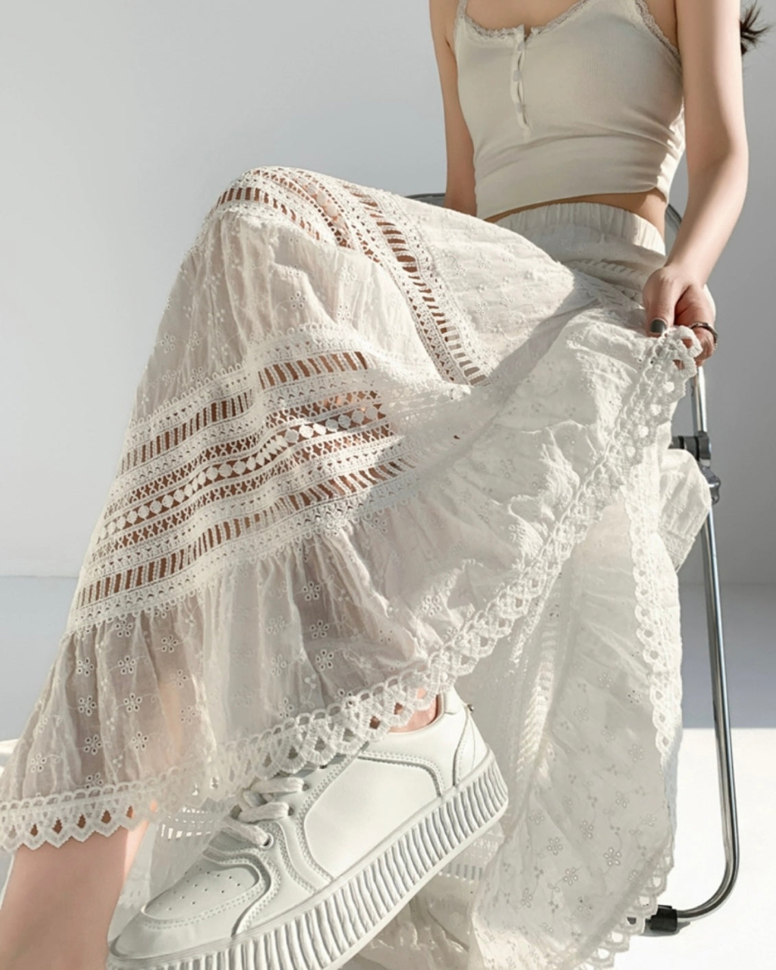 ガーリーな雰囲気を持ちながらも、コットンライクの素材感なのでカジュアルにも着こなせて、Tシャツやカットソー、スニーカーなどのアイテムとの相性も抜群です。