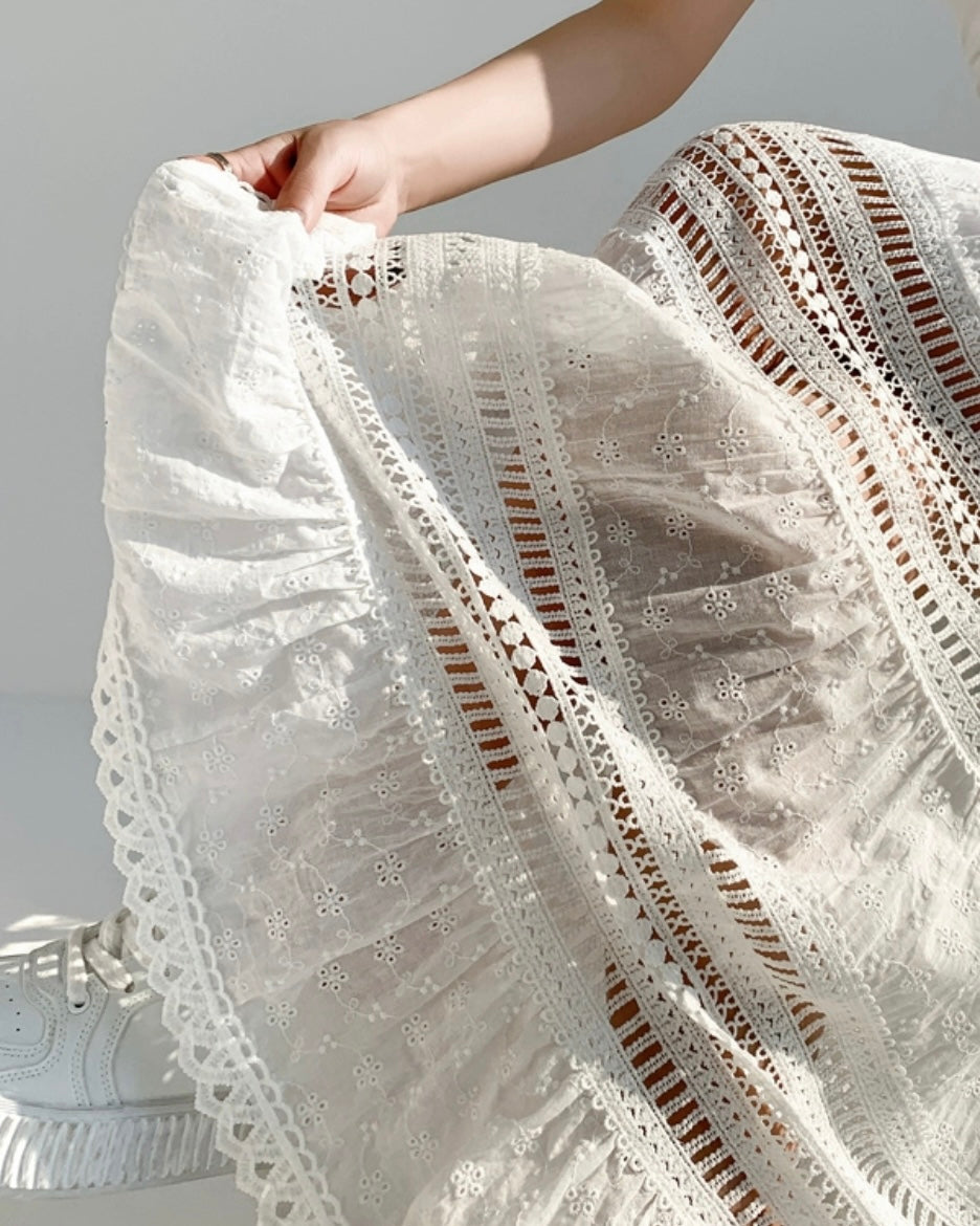 繊細な可憐なクロシェレースと、爽やかで可愛らしいボーラーレースの組み合わせが魅力。