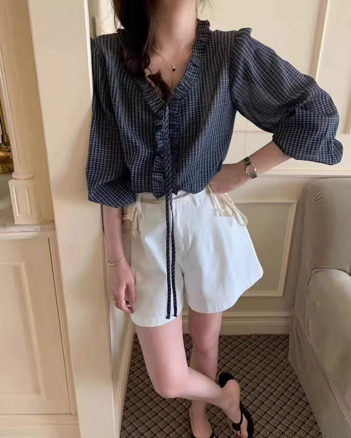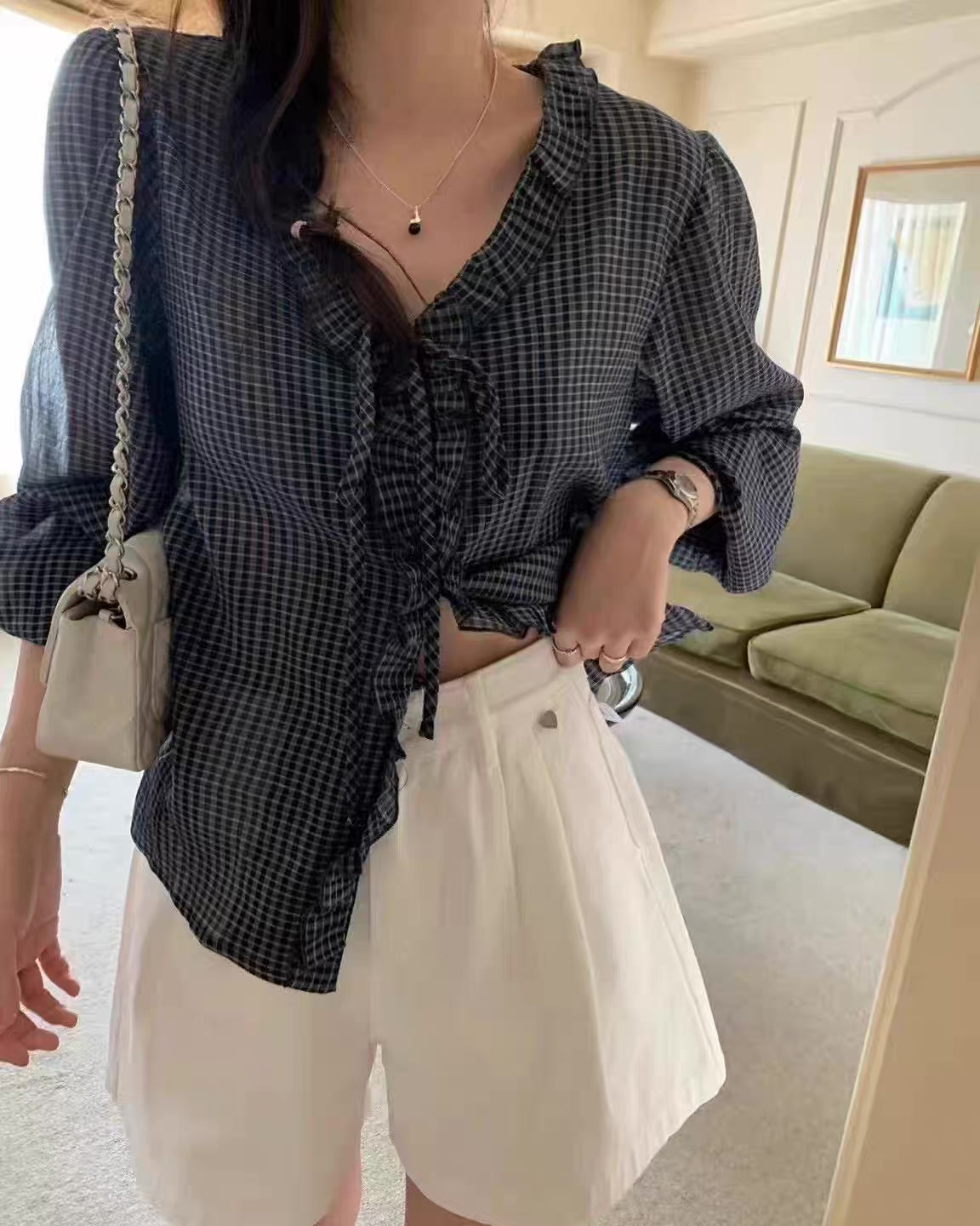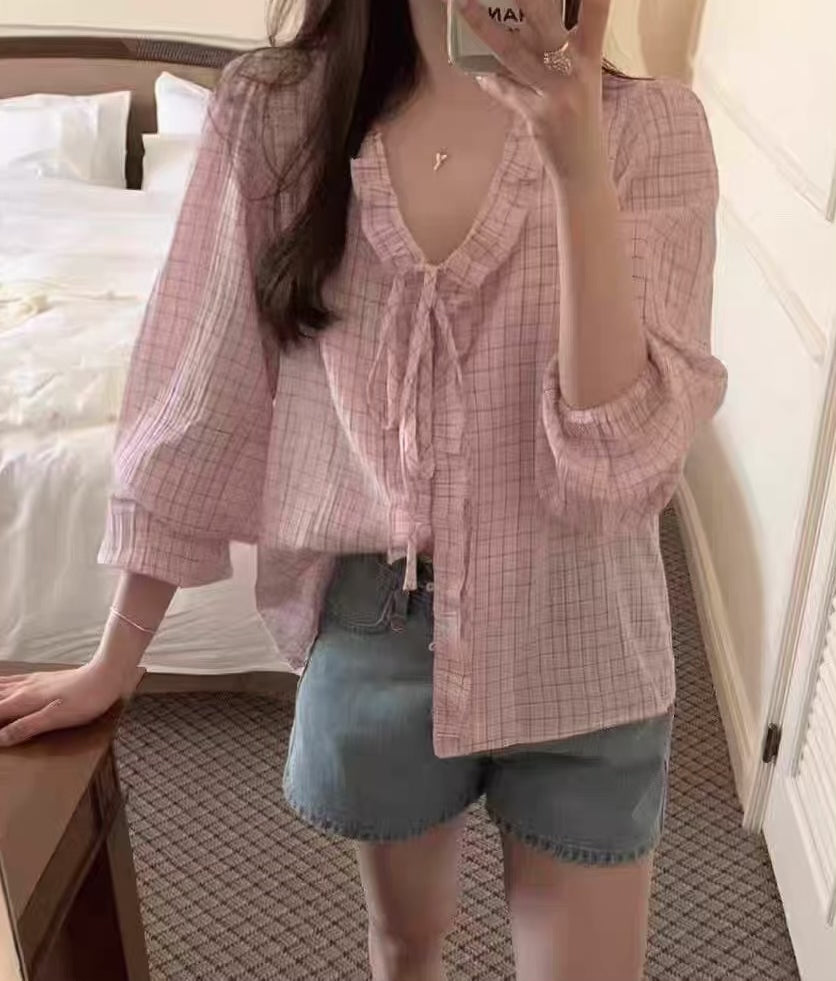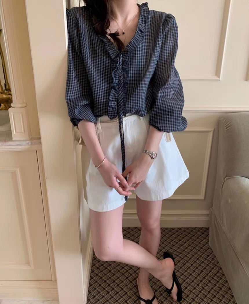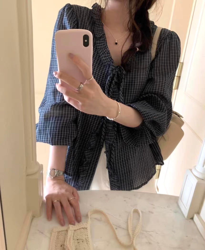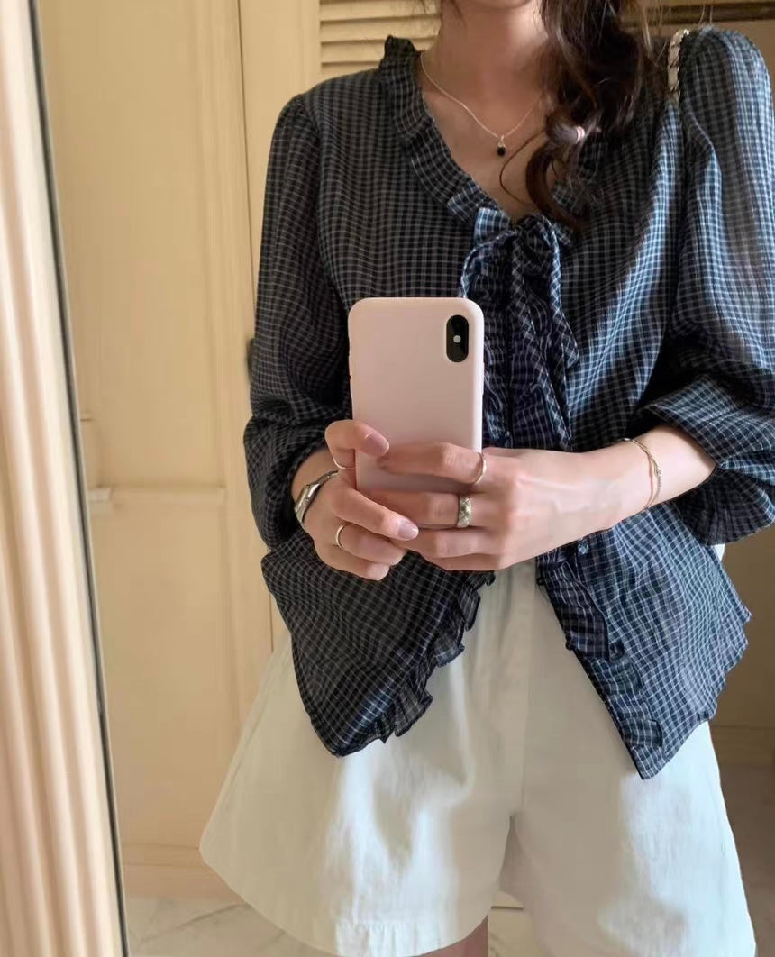 チェックフリルブラウス