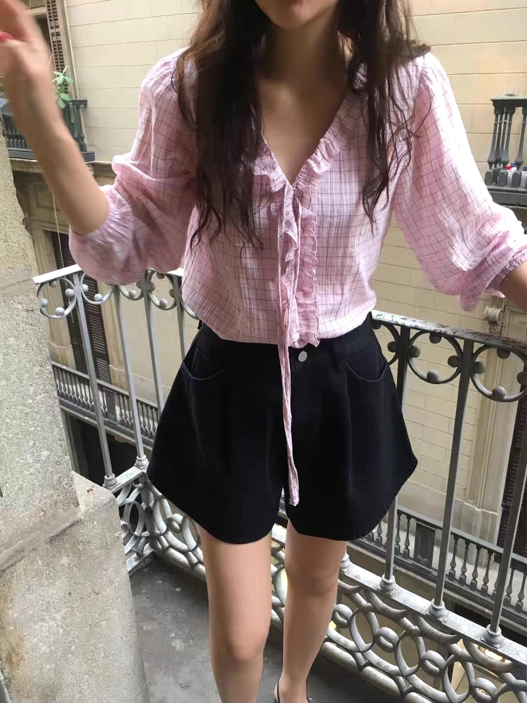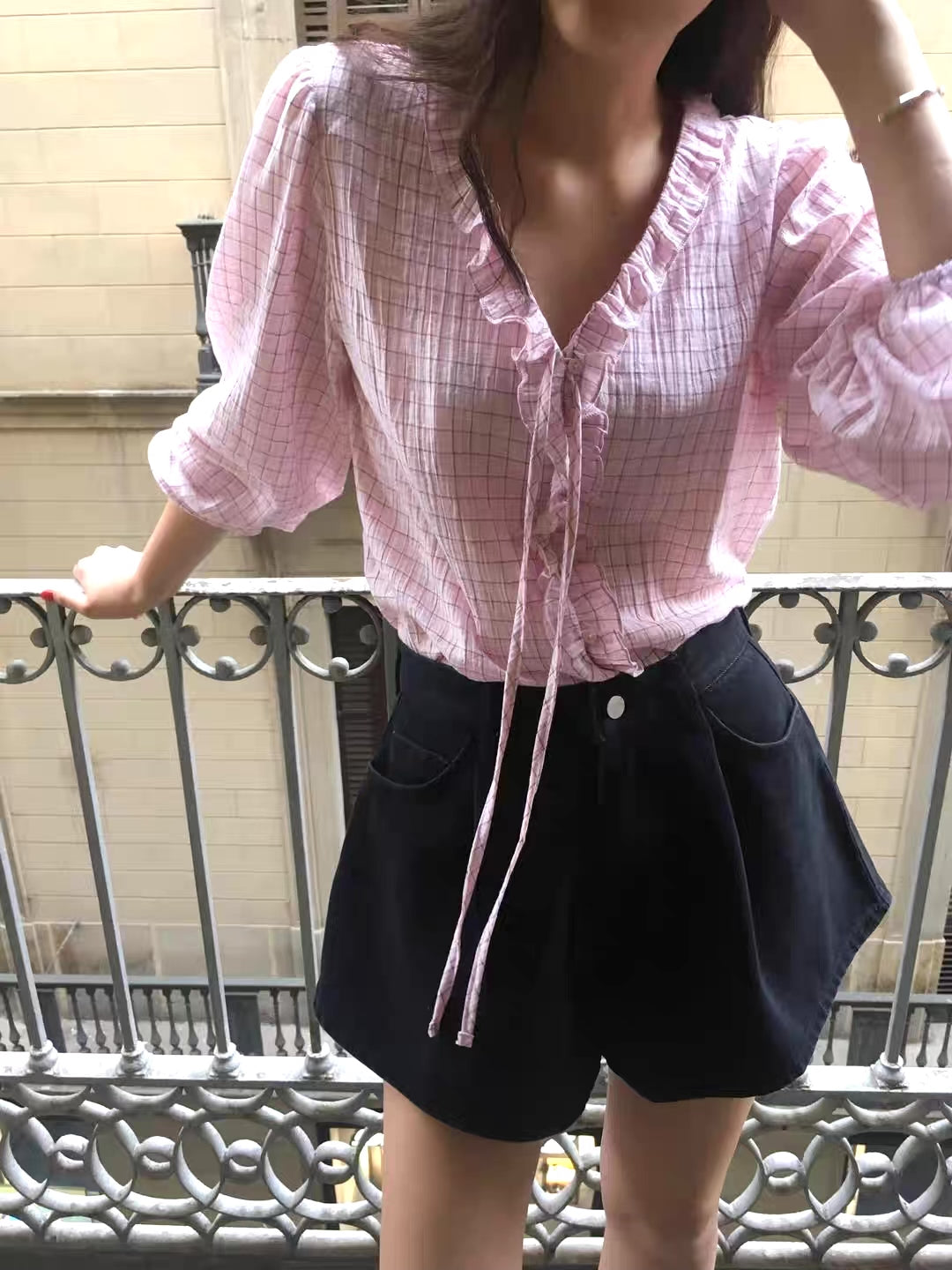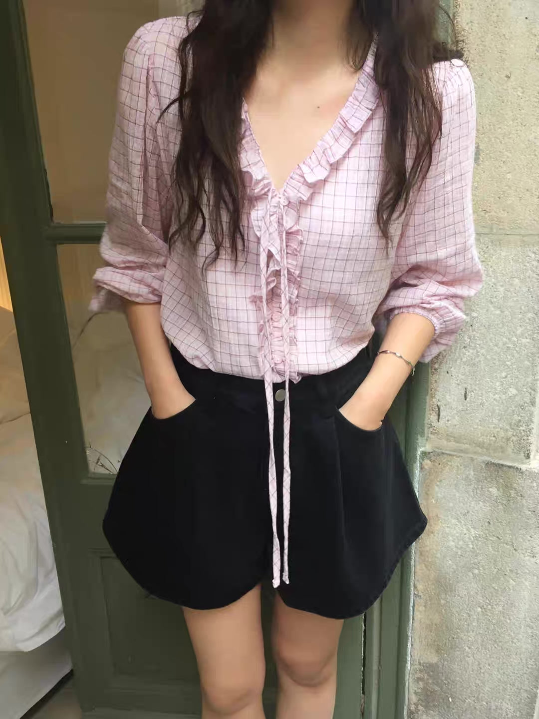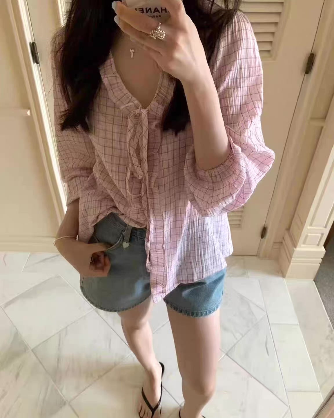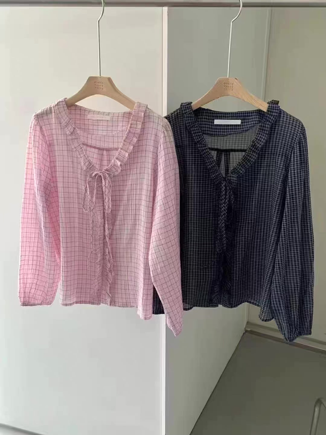 チェックフリルブラウス